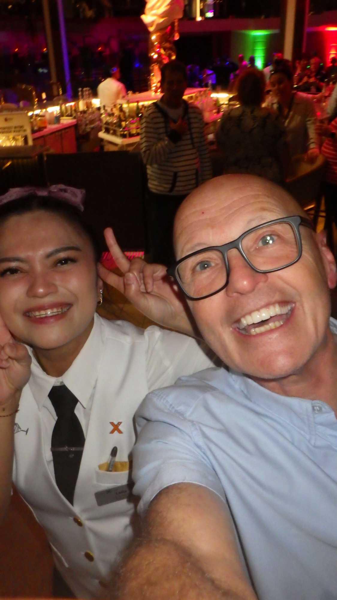 Merci, Michel et Linda, c’est un plaisir pour moi de vous compter parmi mes nouveaux voyageurs. Vous avez un sens de l’humour développé et l’avez toujours appliqué au bon moment, pour le plus grand bonheur de tout un chacun. Merci aussi de vous être ouvert à tous les autres voyageurs et de vous être si bien intégré. La croisière fut miraculeuse pour Linda.