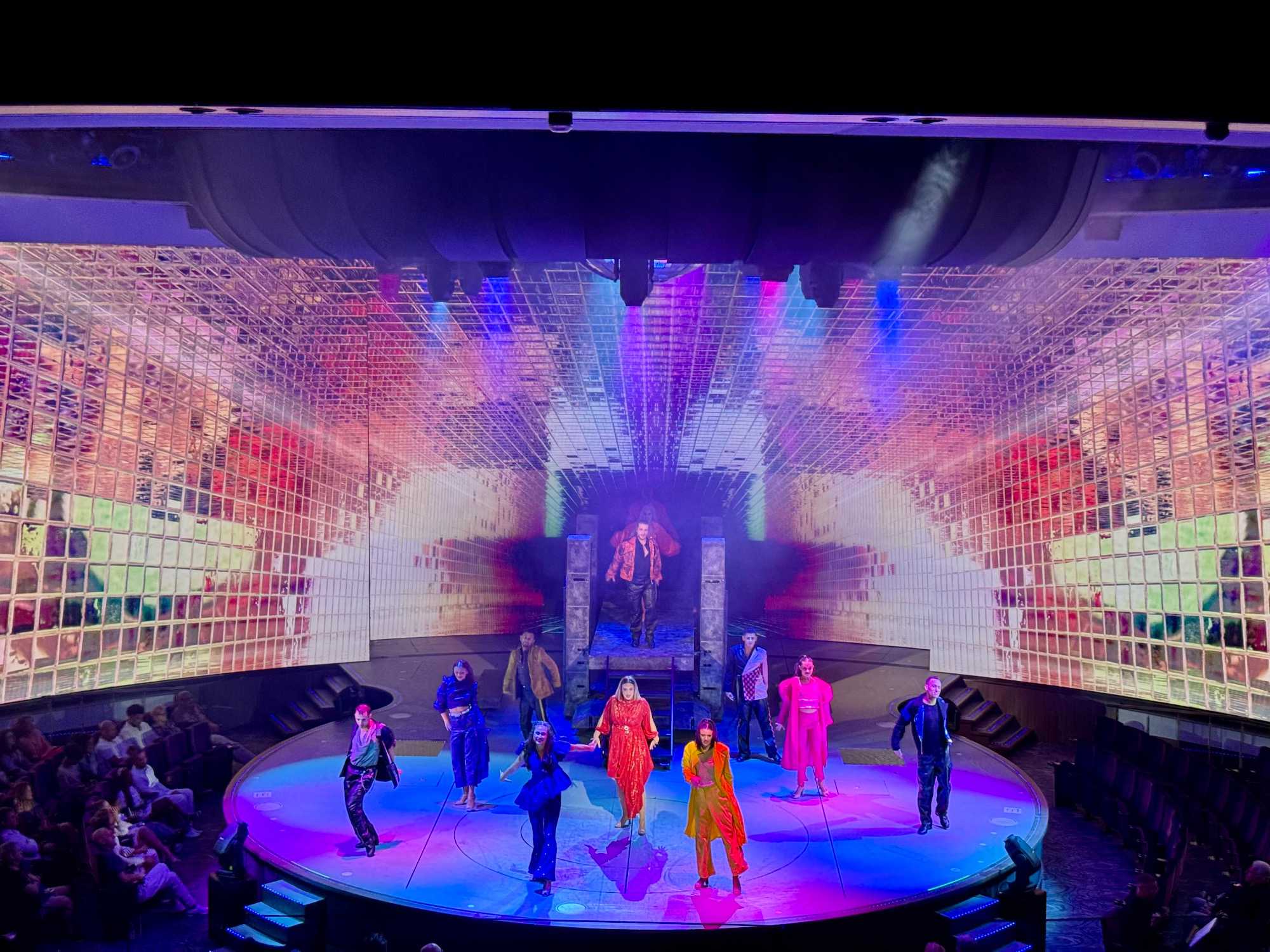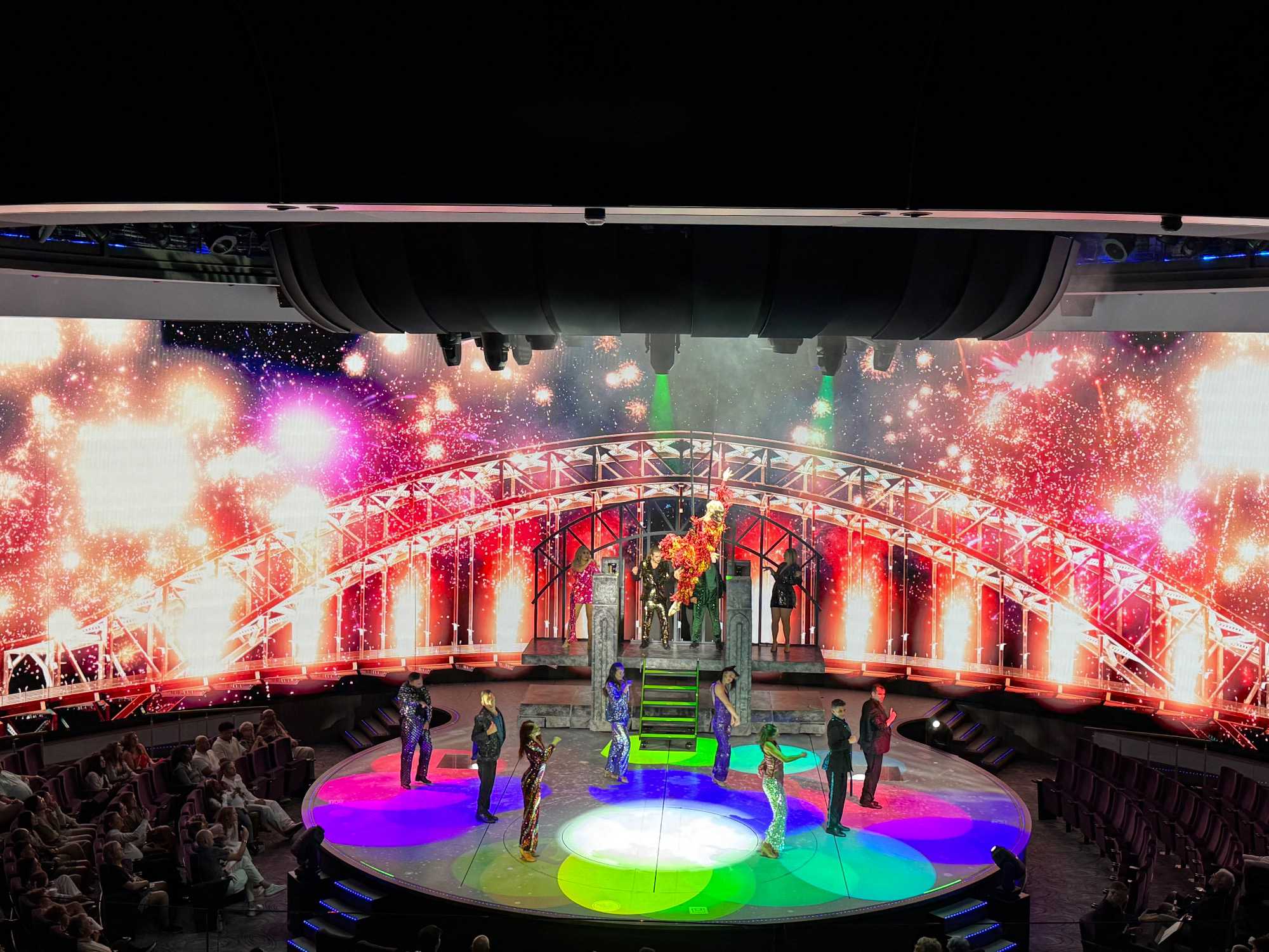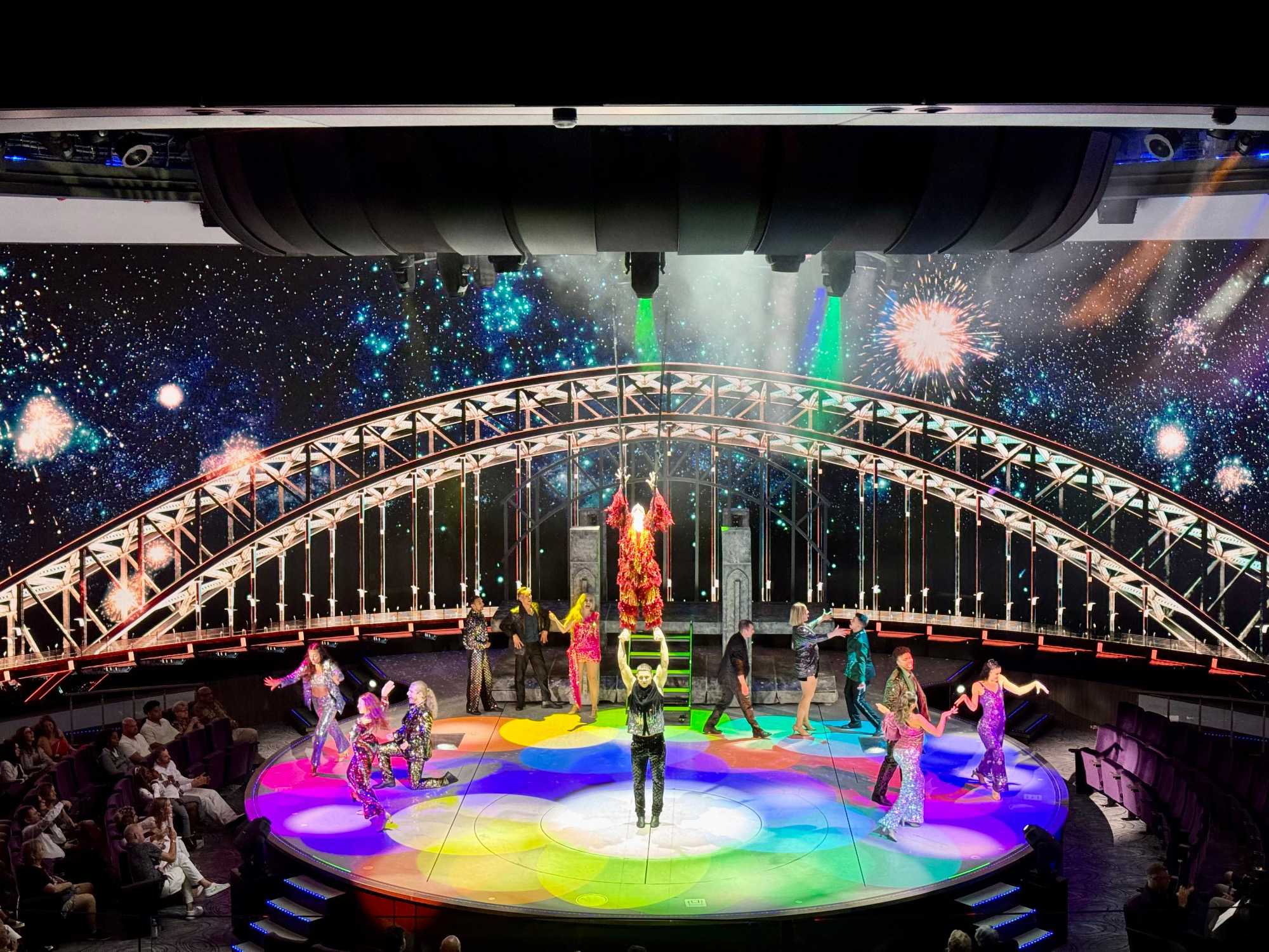 Le souper se déroule dans les différents restaurants du navire, selon les préférences de chacun. Ensuite, le Capitaine prend la parole au grand théâtre pour une allocution et la soirée se poursuit avec le spectacle « Bridges » offert par les chanteurs, danseurs et acrobates de Celebrity. Nous avons droit à un spectacle haut en couleurs avec des performances incroyables.