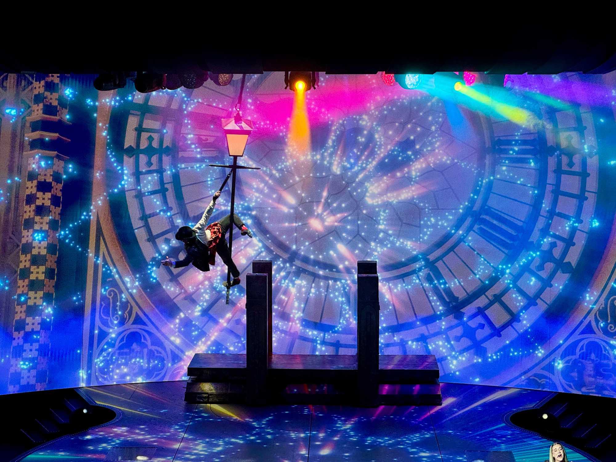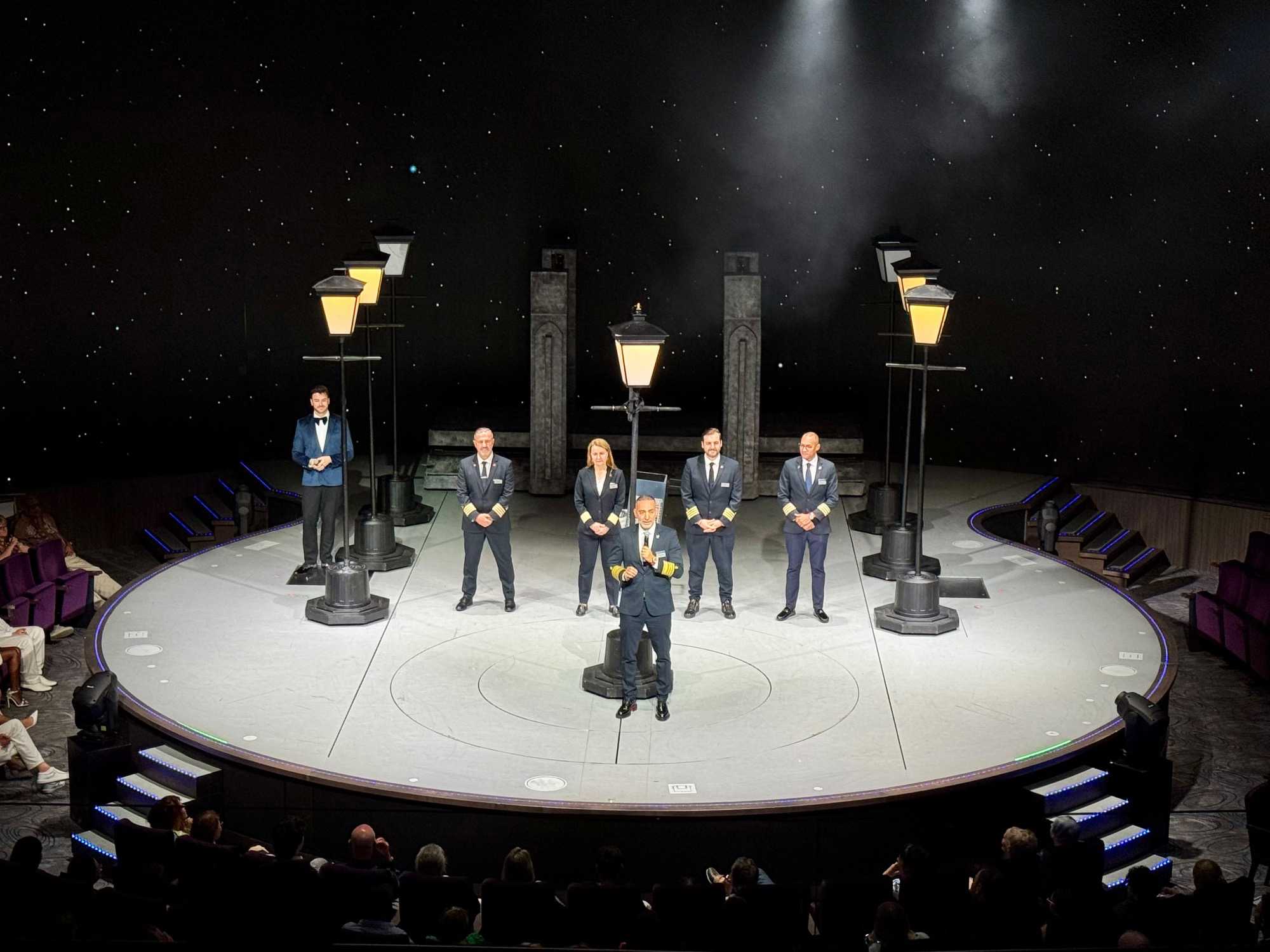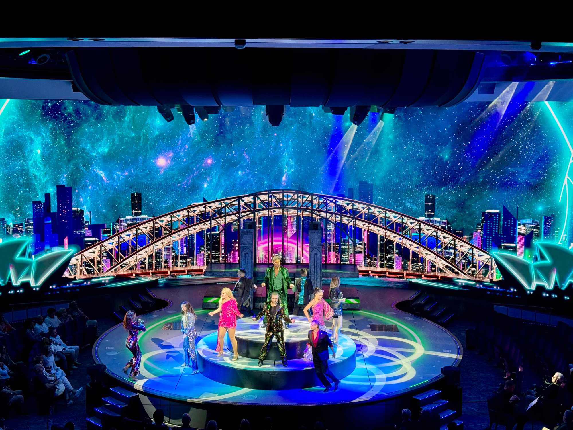 Le souper se déroule dans les différents restaurants du navire, selon les préférences de chacun. Ensuite, le Capitaine prend la parole au grand théâtre pour une allocution et la soirée se poursuit avec le spectacle « Bridges » offert par les chanteurs, danseurs et acrobates de Celebrity. Nous avons droit à un spectacle haut en couleurs avec des performances incroyables.