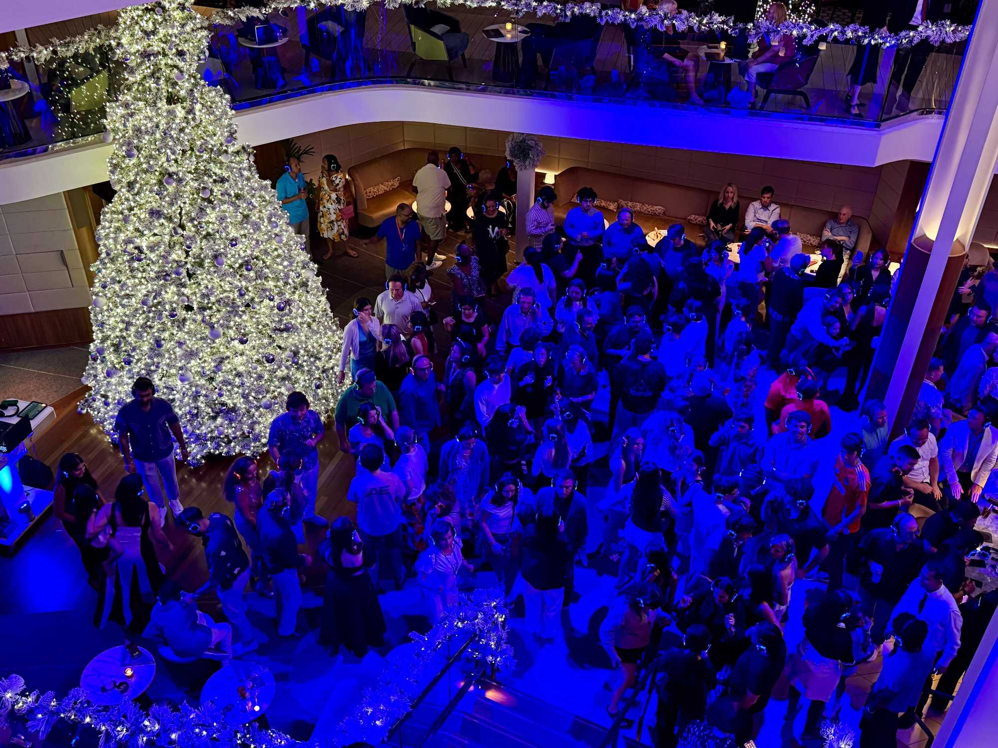 Aujourd’hui, nous profitons d’une belle journée en mer, en direction de la Colombie. Les décorations de Noël à bord et la musique du Temps des Fêtes ajoutent une touche festive à notre navigation.