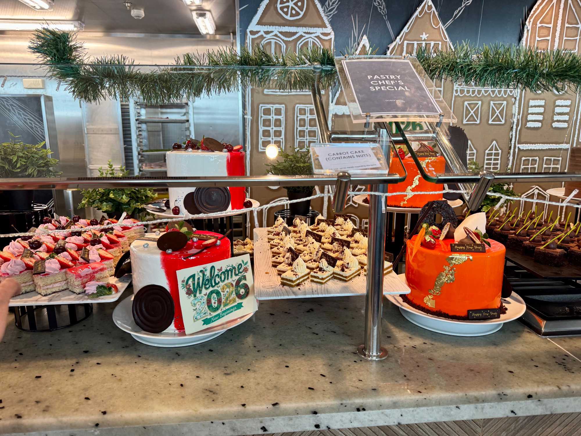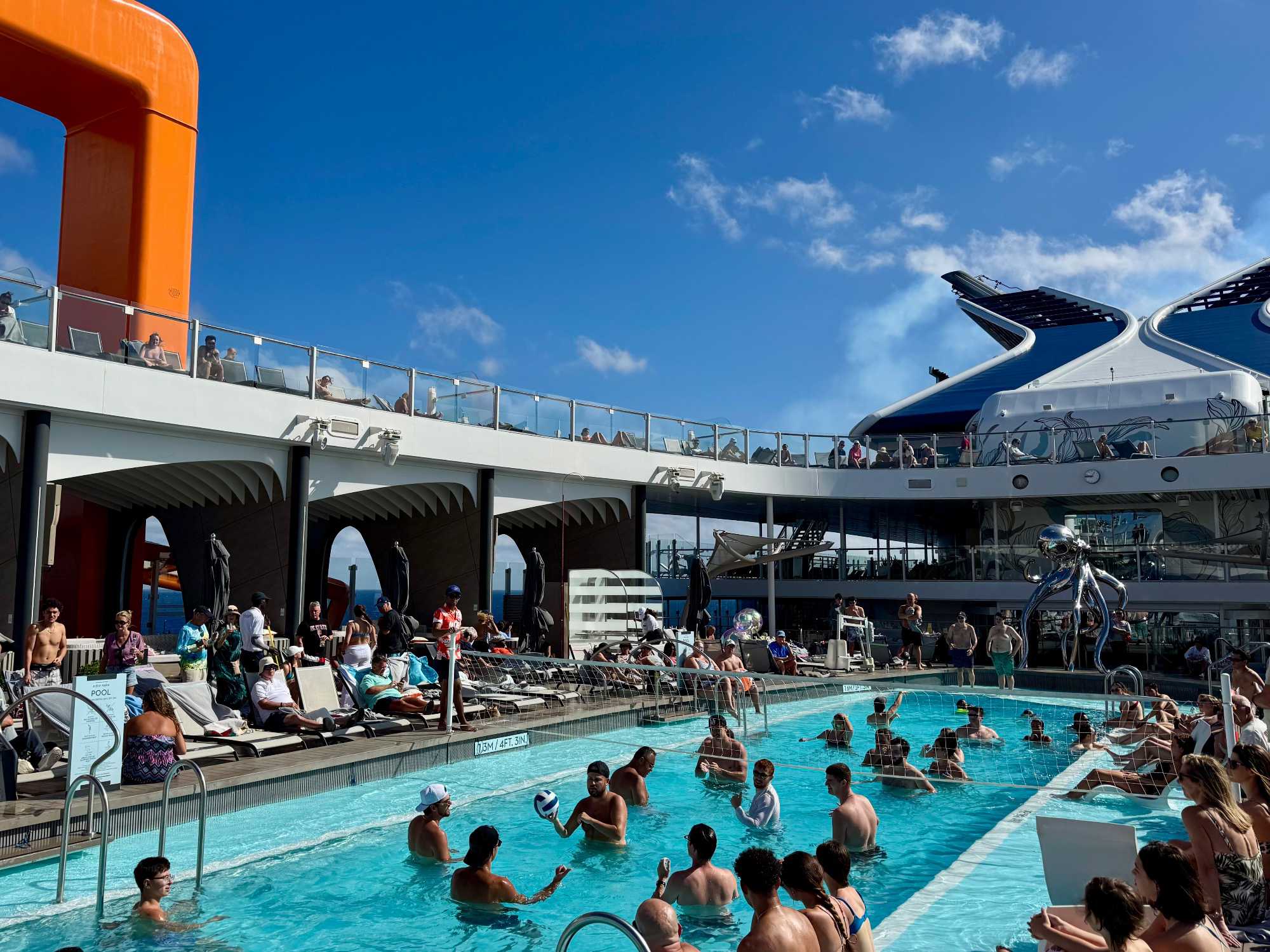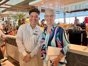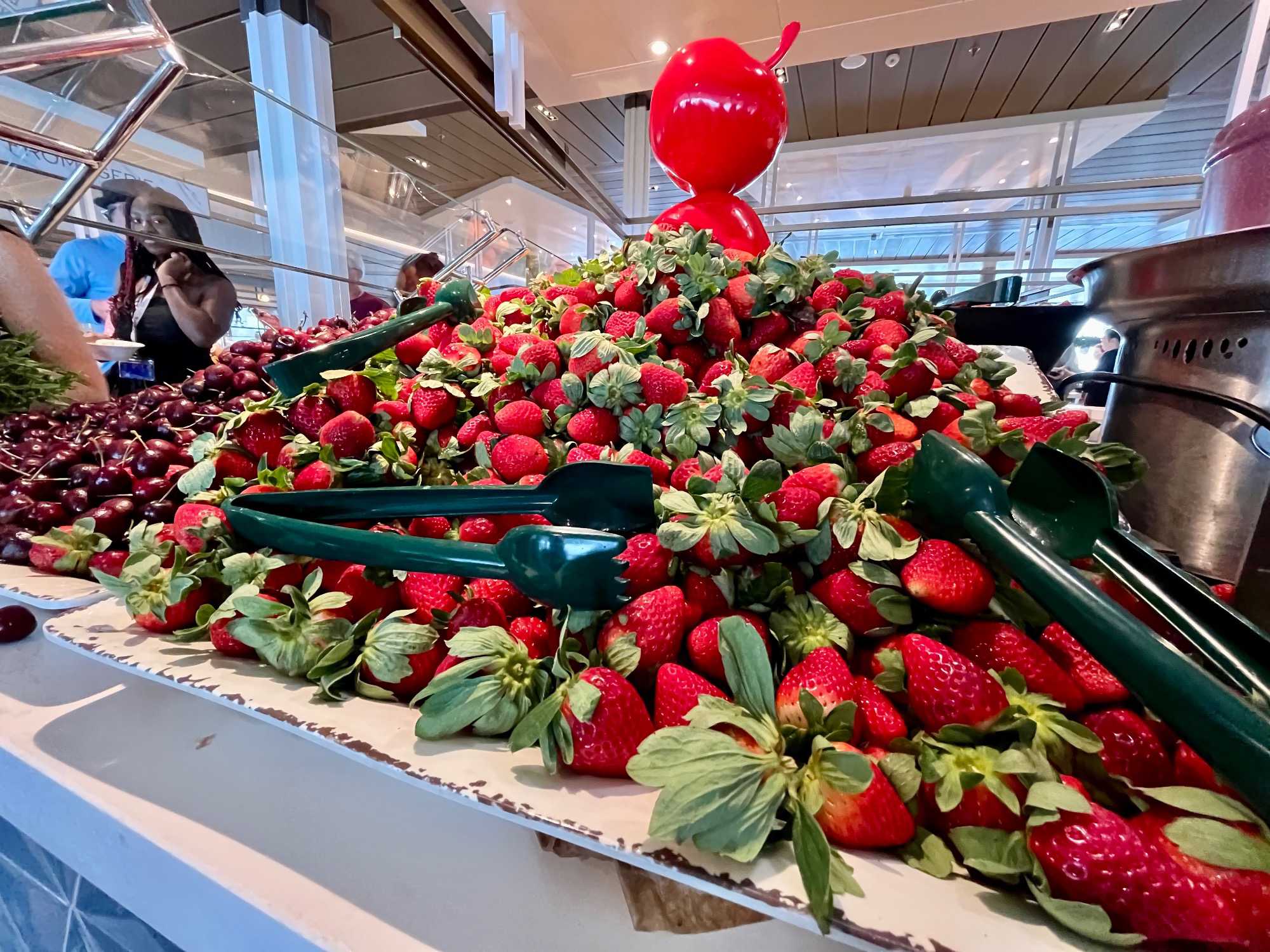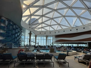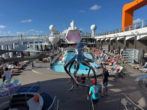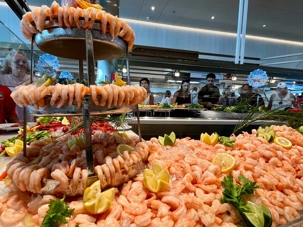 À l’heure du midi, direction l’Oceanview Café pour le fameux Buffet Extravaganza. Une véritable explosion de saveurs nous attend : poissons grillés, crevettes, salades colorées, fromages fins, fruits tropicaux et desserts absolument irrésistibles. Installés près des grandes baies vitrées, nous savourons le repas tout en admirant l’océan scintillant sous le soleil.