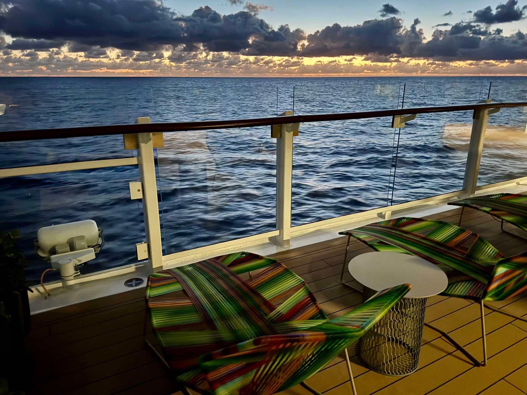 Ce matin, le soleil se lève doucement sur l’horizon alors que notre Celebrity Ascent poursuit sa route paisible sur la mer des Caraïbes. L’air marin est doux, la lumière dorée enveloppe le navire, et la mer d’un bleu profond s’étend à perte de vue. Une sensation de calme et de privilège nous habite : quelle chance d’être ici, à bord de ce magnifique navire, pour terminer l’année.