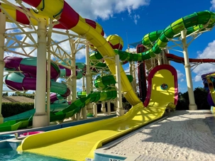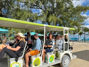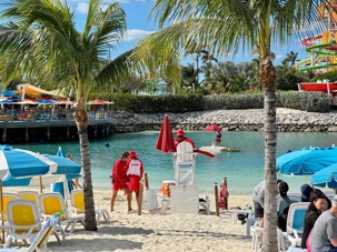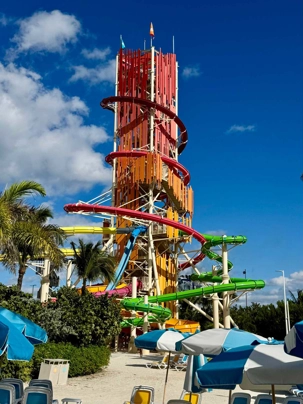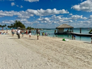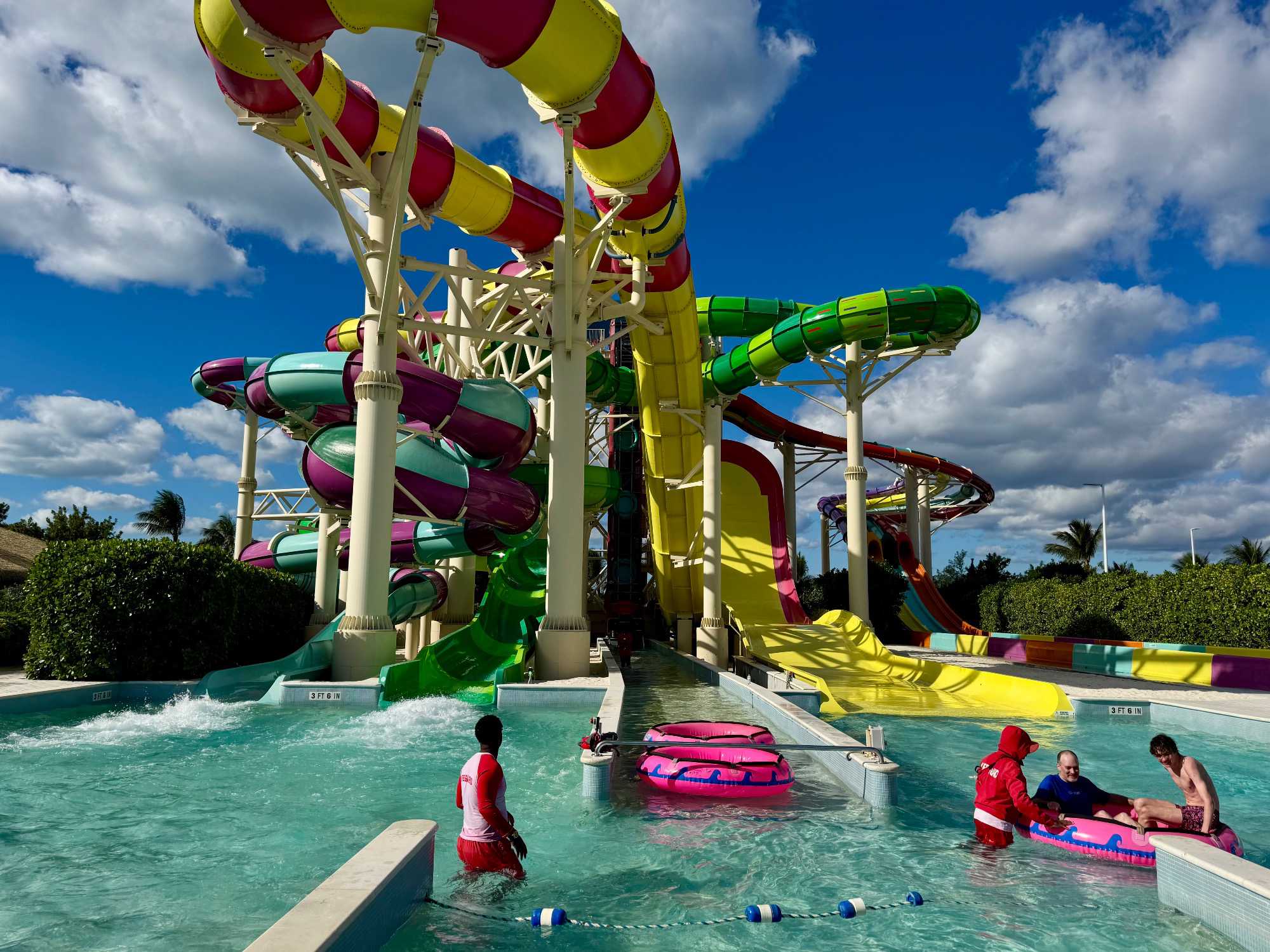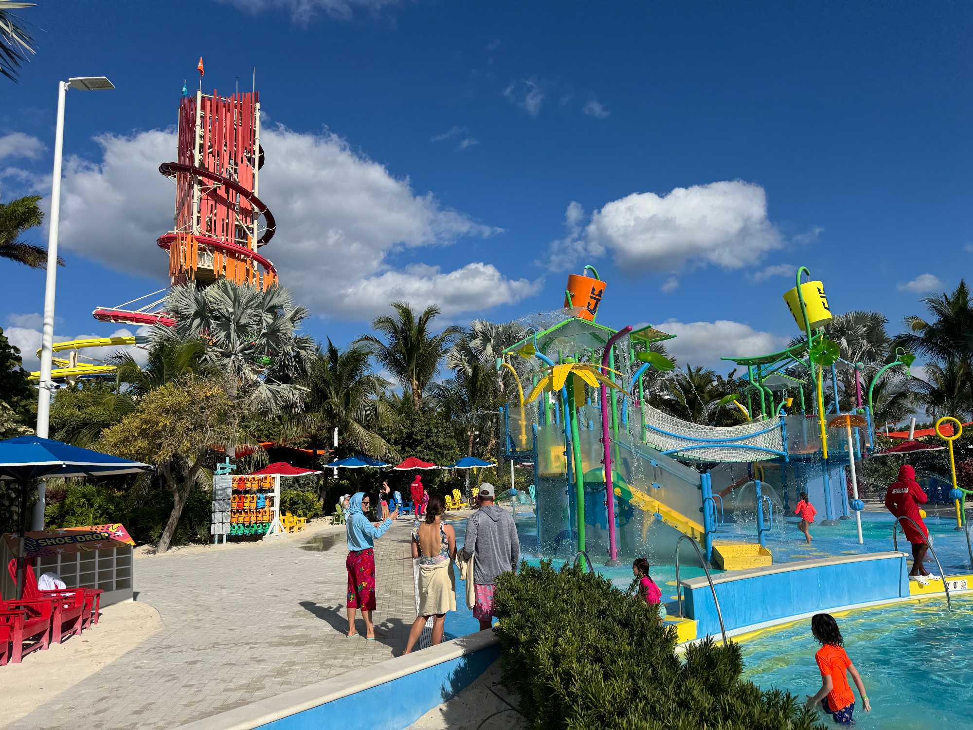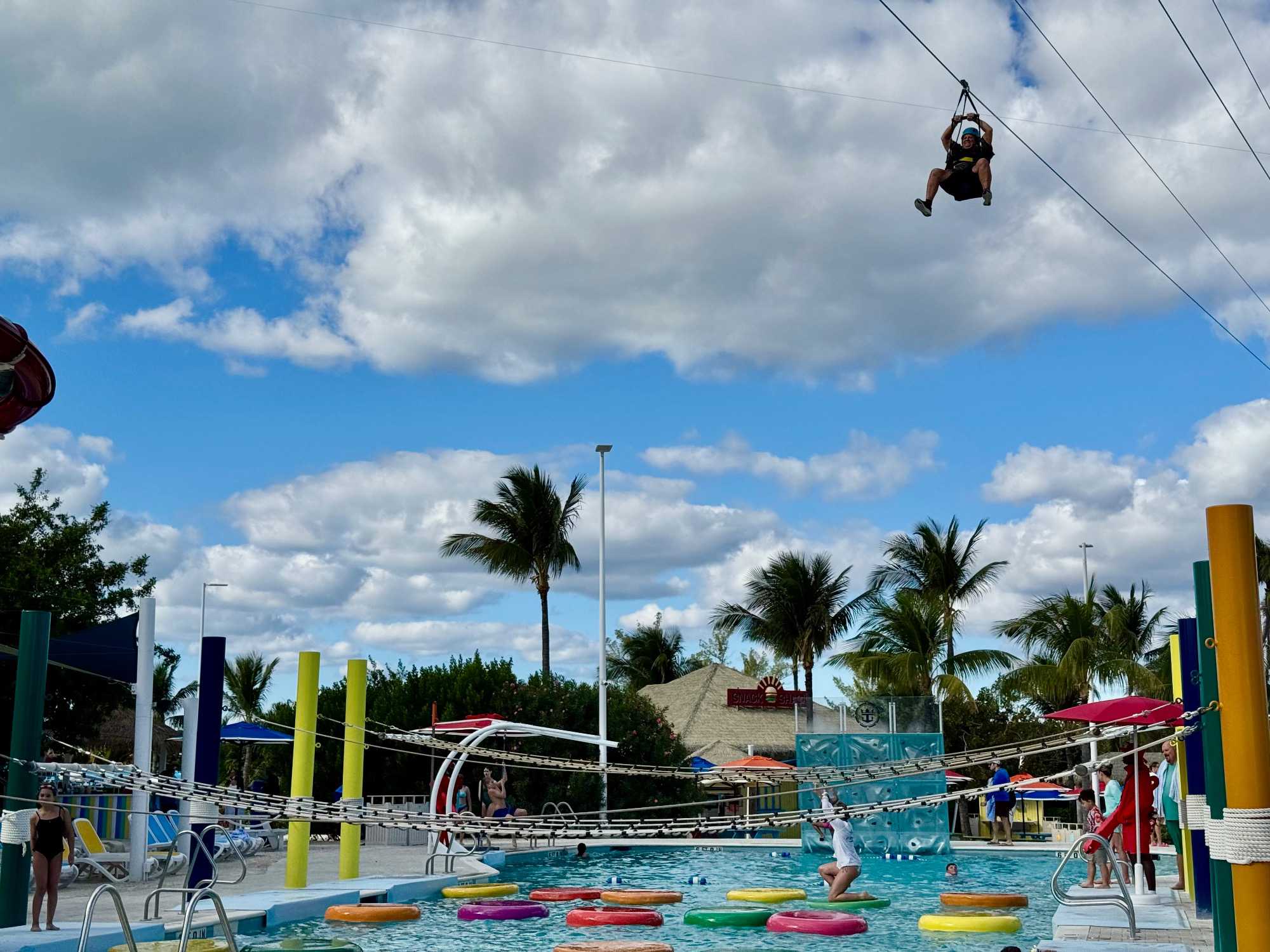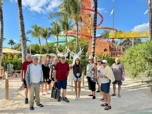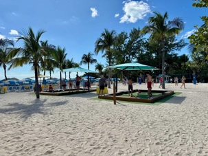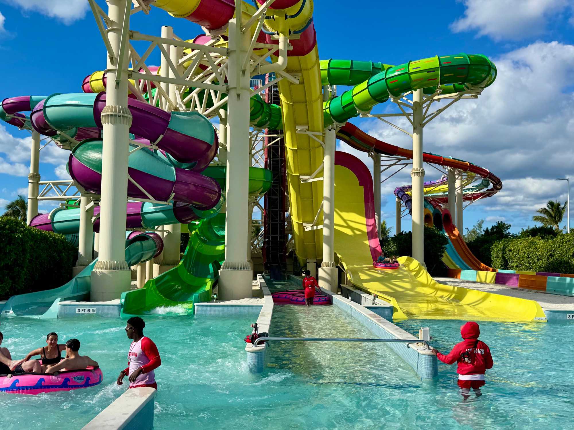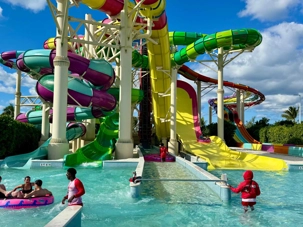 Dès notre arrivée sur l’île, l’ambiance est à la fois festive et décontractée. Les rythmes caribéens résonnent doucement, les palmiers ondulent sous la brise chaude et les sourires illuminent les visages. Chacun choisit son bonheur : se détendre sur la plage, à l’ombre d’un parasol ou les pieds dans l’eau, ou encore partir à l’aventure. Glissades d’eau spectaculaires, kayak, paddleboard, plongée en apnée dans le lagon translucide… les options ne manquent pas pour savourer pleinement cette journée fantastique.