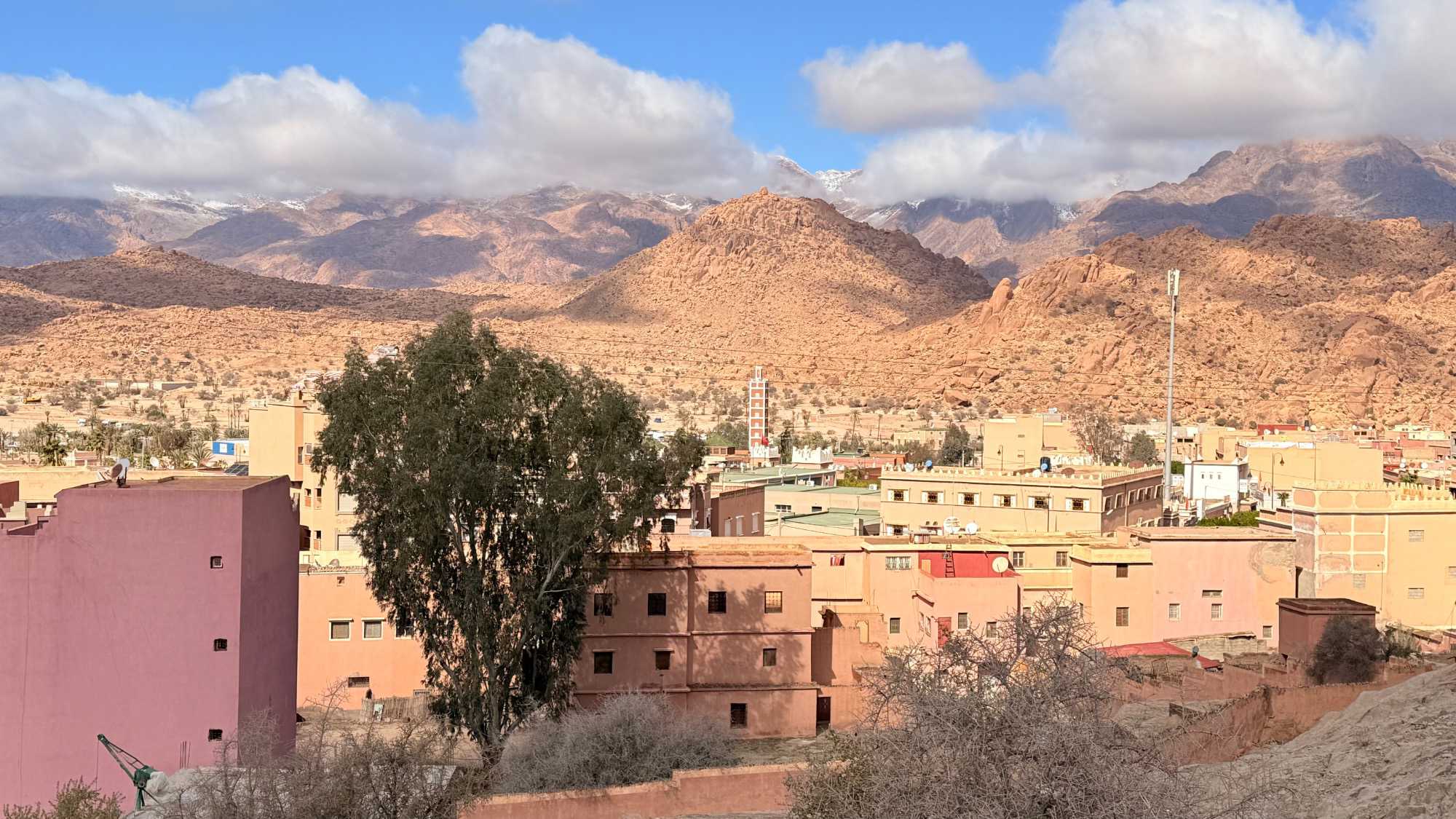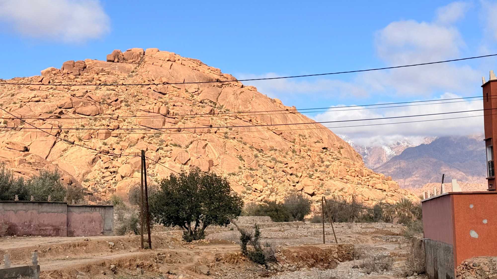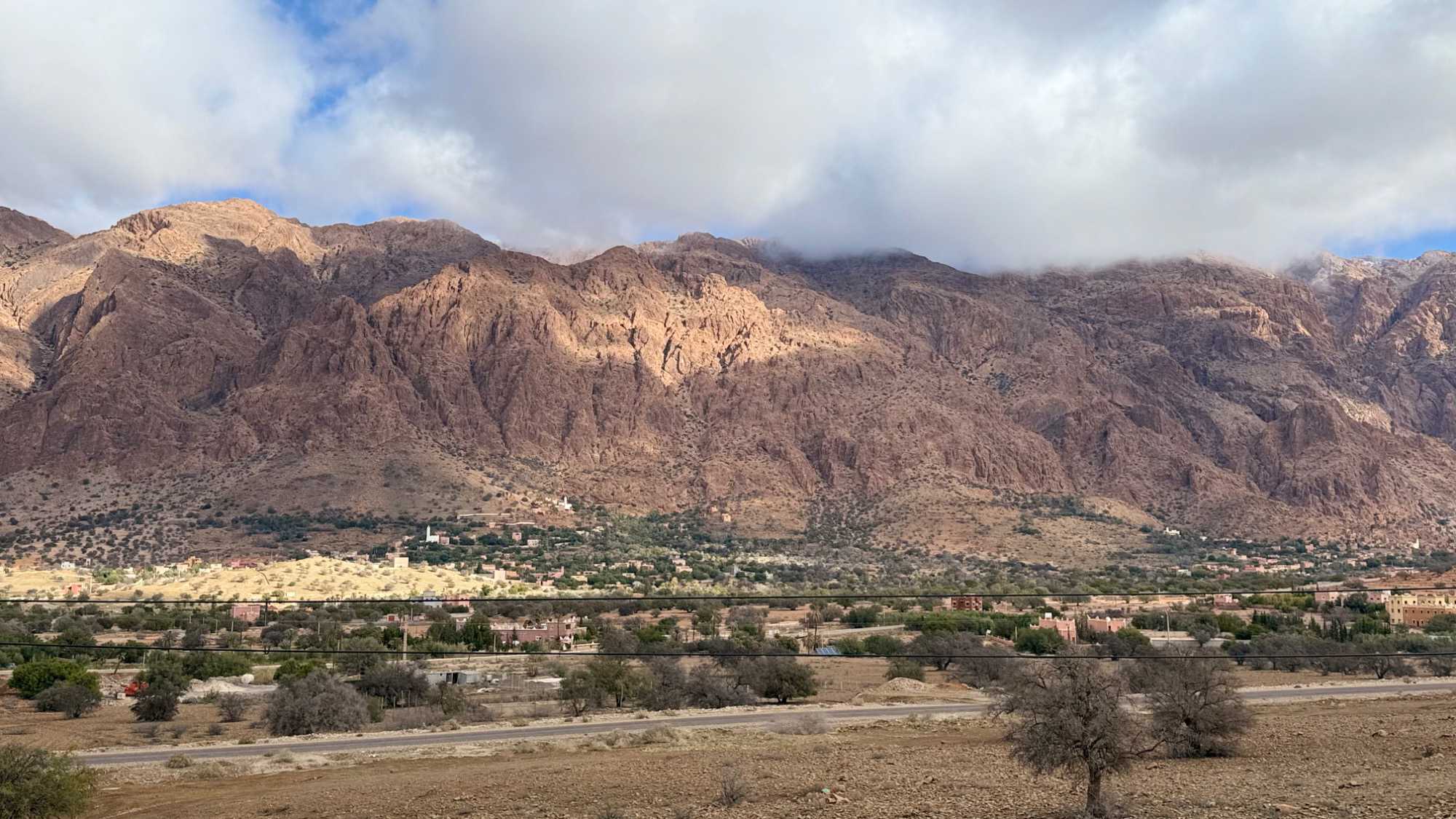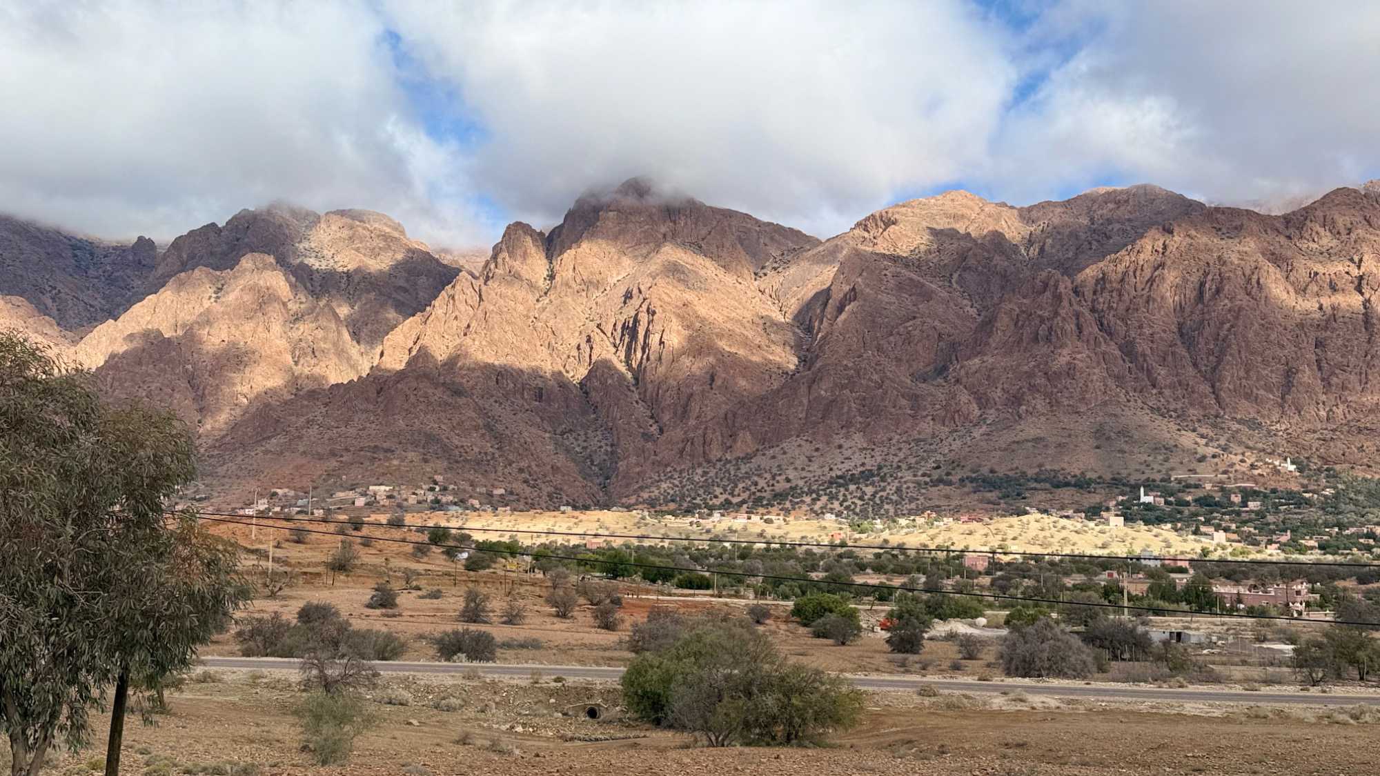 Puis, l’appel de la route s’est fait sentir. Frais et dispos, levés dès l’aube et réchauffés par un petit déjeuner, nous avons pris la direction de Tafraoute et Tiout. Les 165 kilomètres à parcourir se sont vite effacés devant la beauté des paysages. Routes sinueuses, montagnes arides, horizons à perte de vue… Le Maroc se dévoile lentement, majestueux, rappelant par son immensité le Québec, mais avec une âme et des couleurs bien à lui.