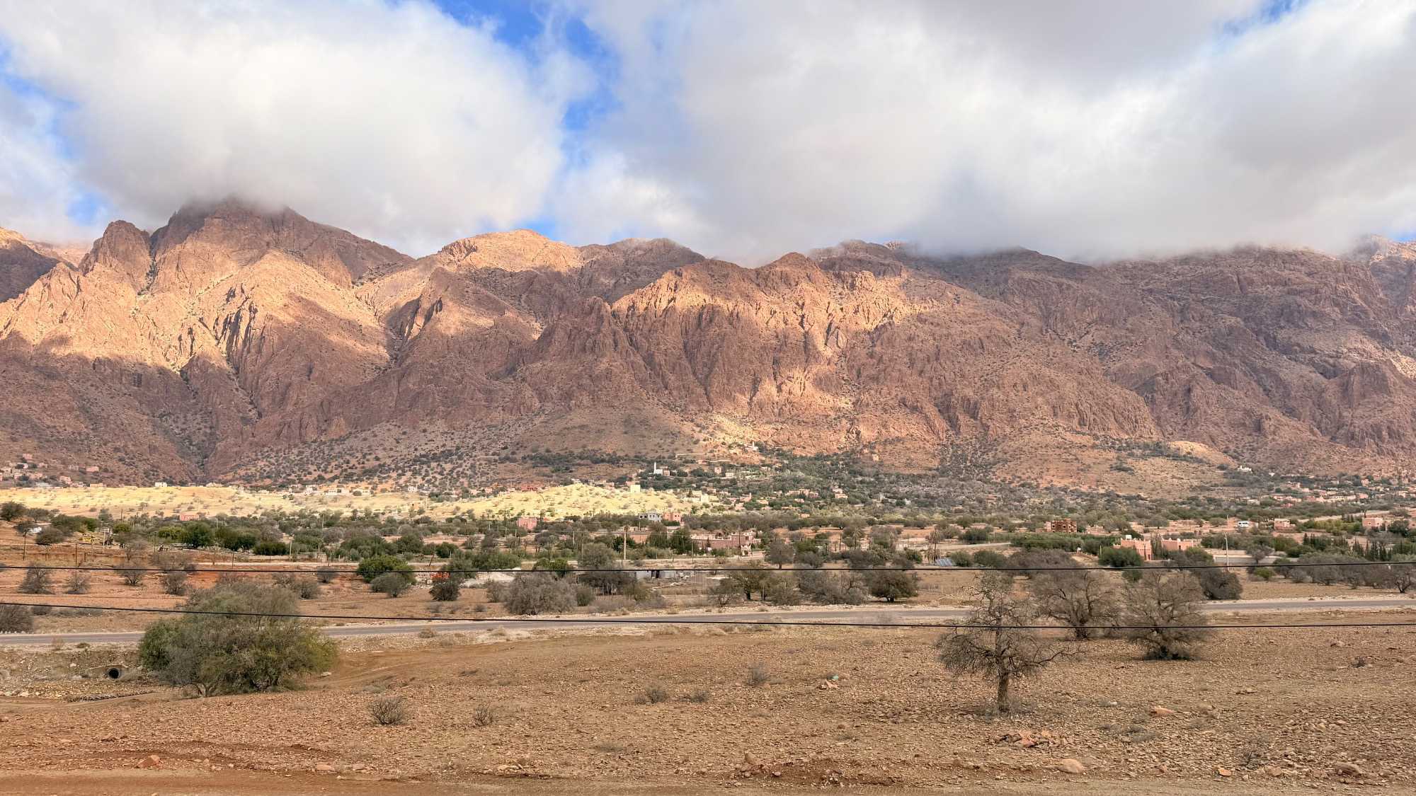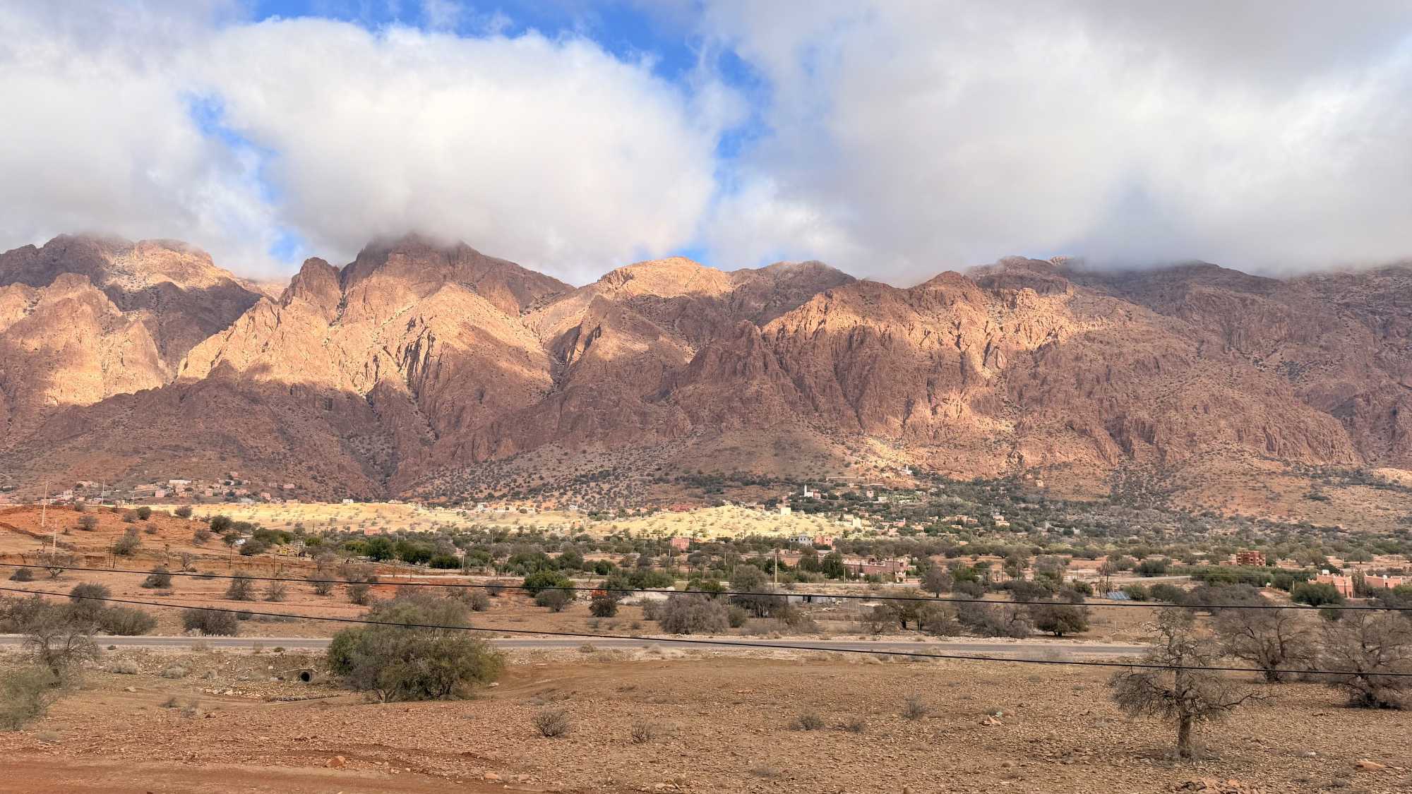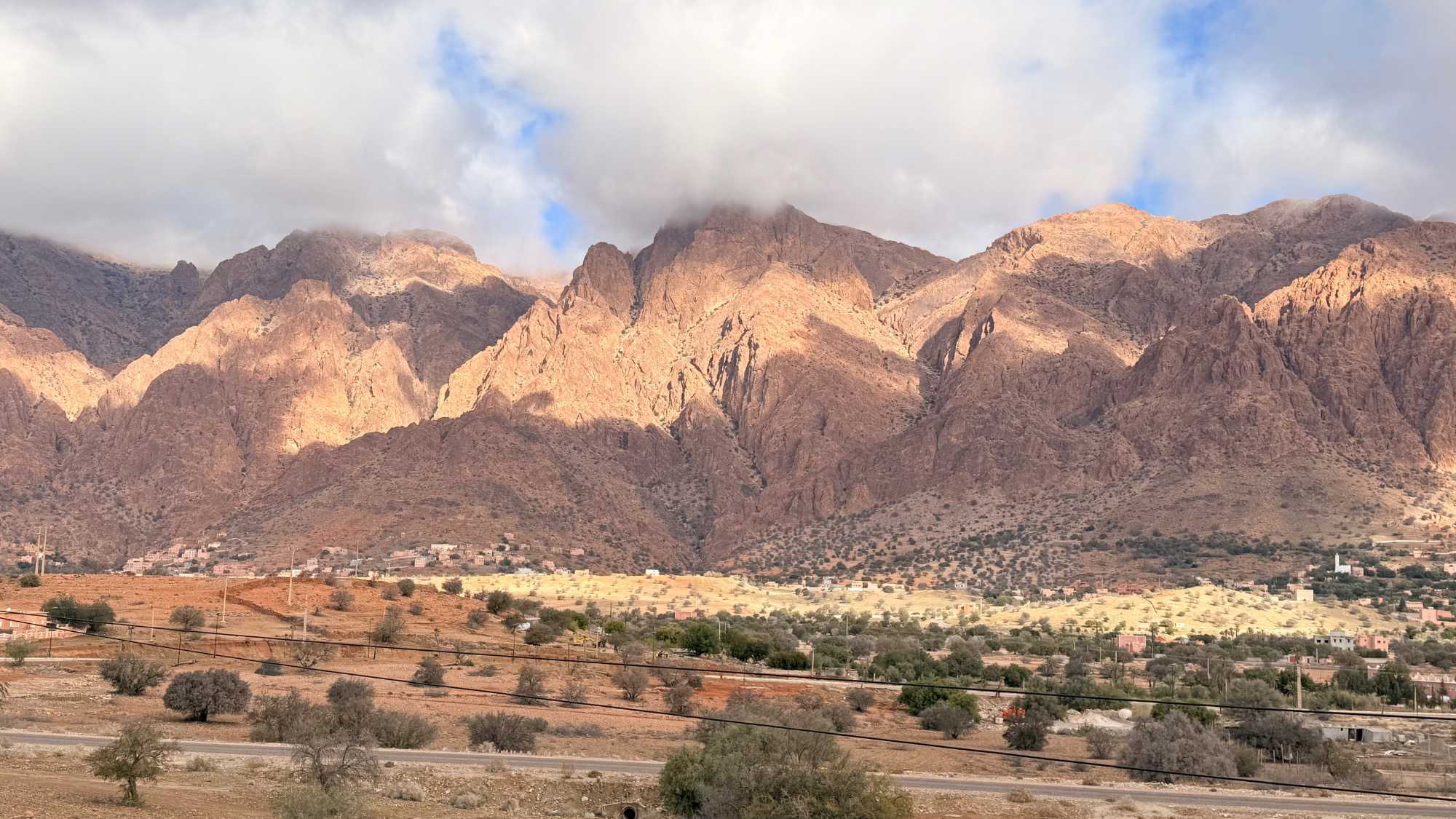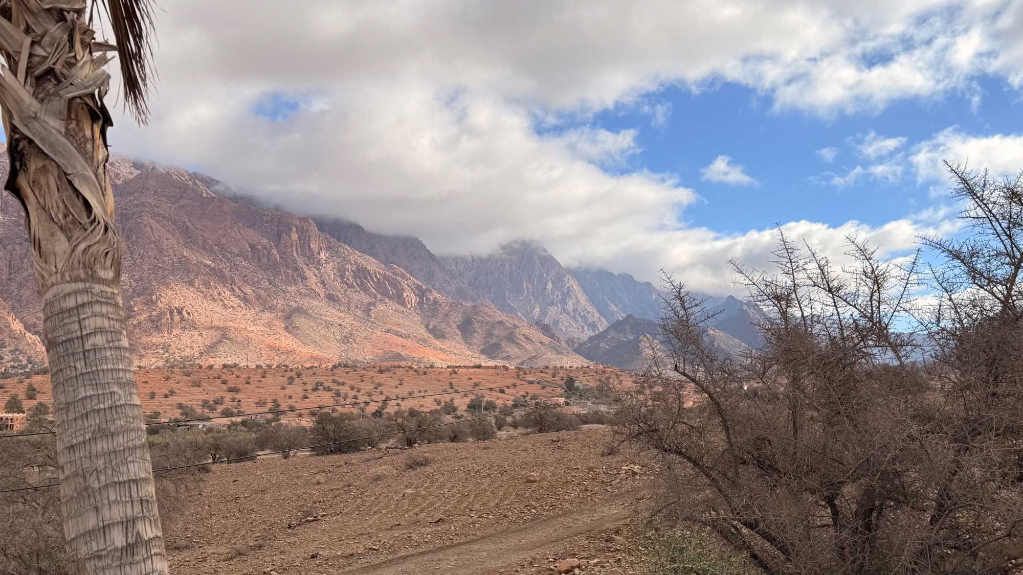 Puis, l’appel de la route s’est fait sentir. Frais et dispos, levés dès l’aube et réchauffés par un petit déjeuner, nous avons pris la direction de Tafraoute et Tiout. Les 165 kilomètres à parcourir se sont vite effacés devant la beauté des paysages. Routes sinueuses, montagnes arides, horizons à perte de vue… Le Maroc se dévoile lentement, majestueux, rappelant par son immensité le Québec, mais avec une âme et des couleurs bien à lui.