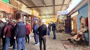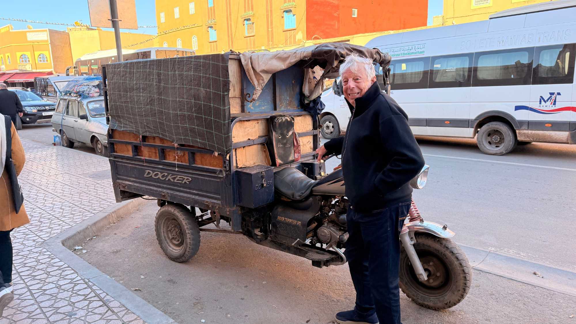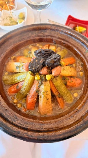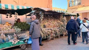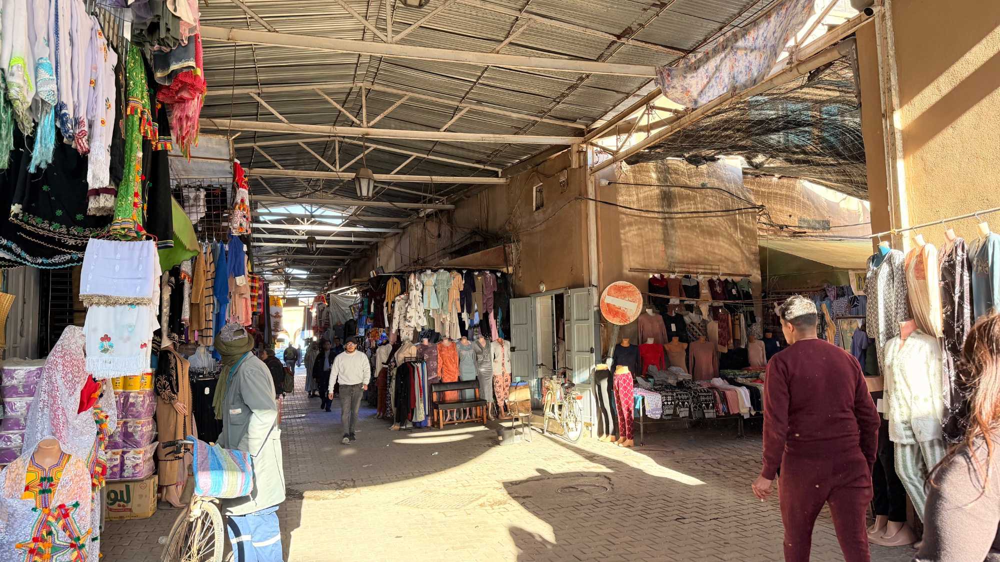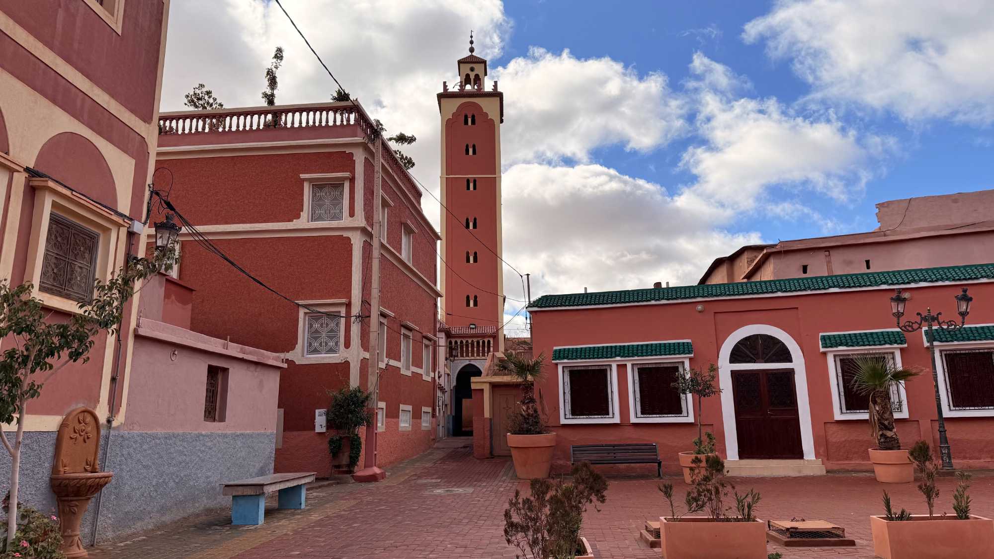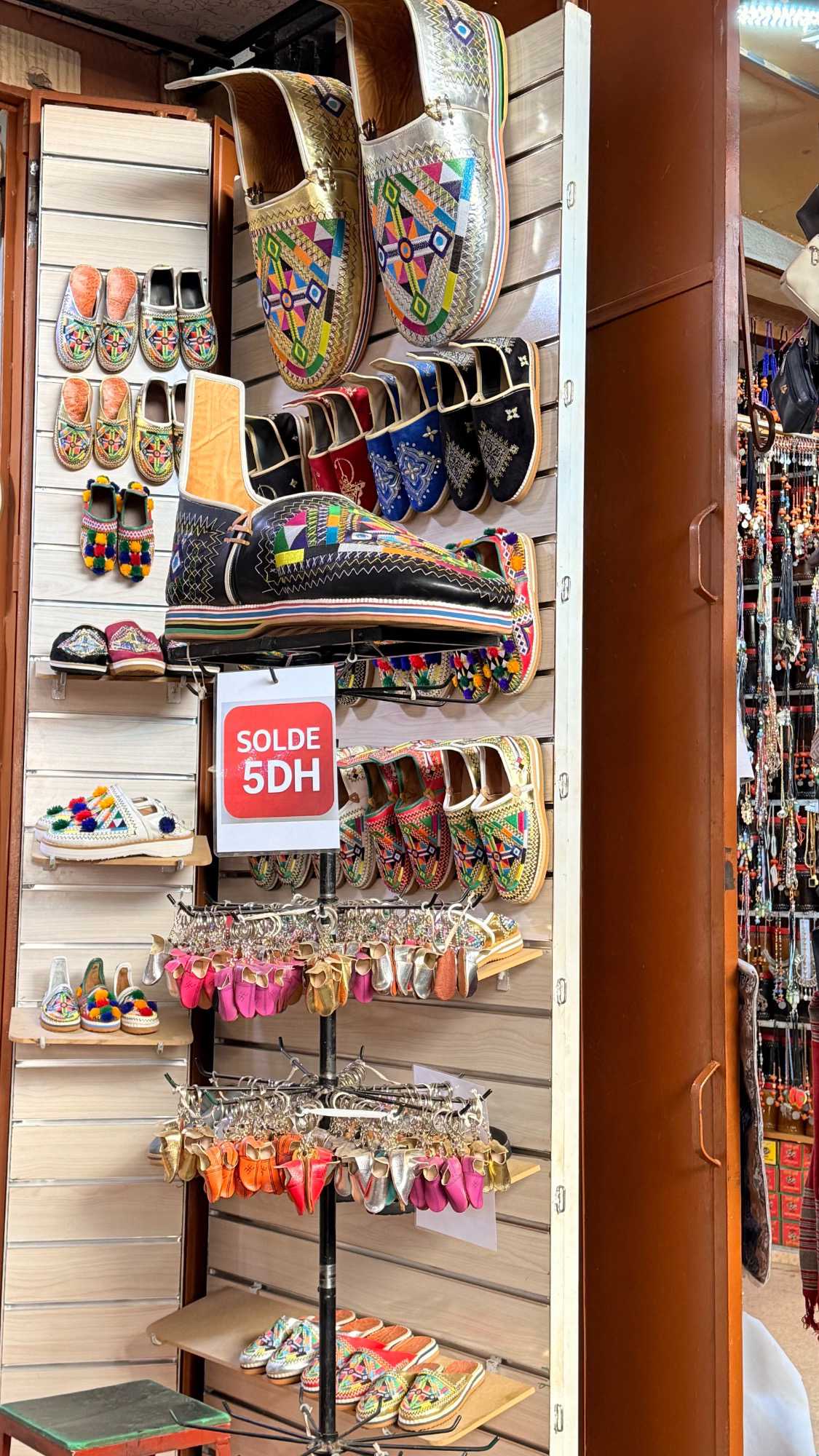 Une pause bien attendue s’impose à l’heure du dîner. Au menu : salade marocaine, tajine de bœuf et des fruits pour conclure le repas. Revigorés, nous partons ensuite à la découverte du centre-ville, où artisans et marchands nous accueillent avec chaleur. Les négociations s’animent, les sourires fusent, et grâce à notre guide Houcine, véritable maître de l’art du marchandage, plusieurs repartent avec des babouches et des bijoux.