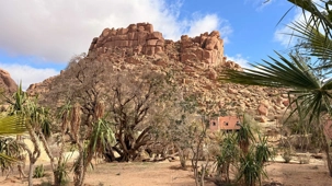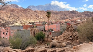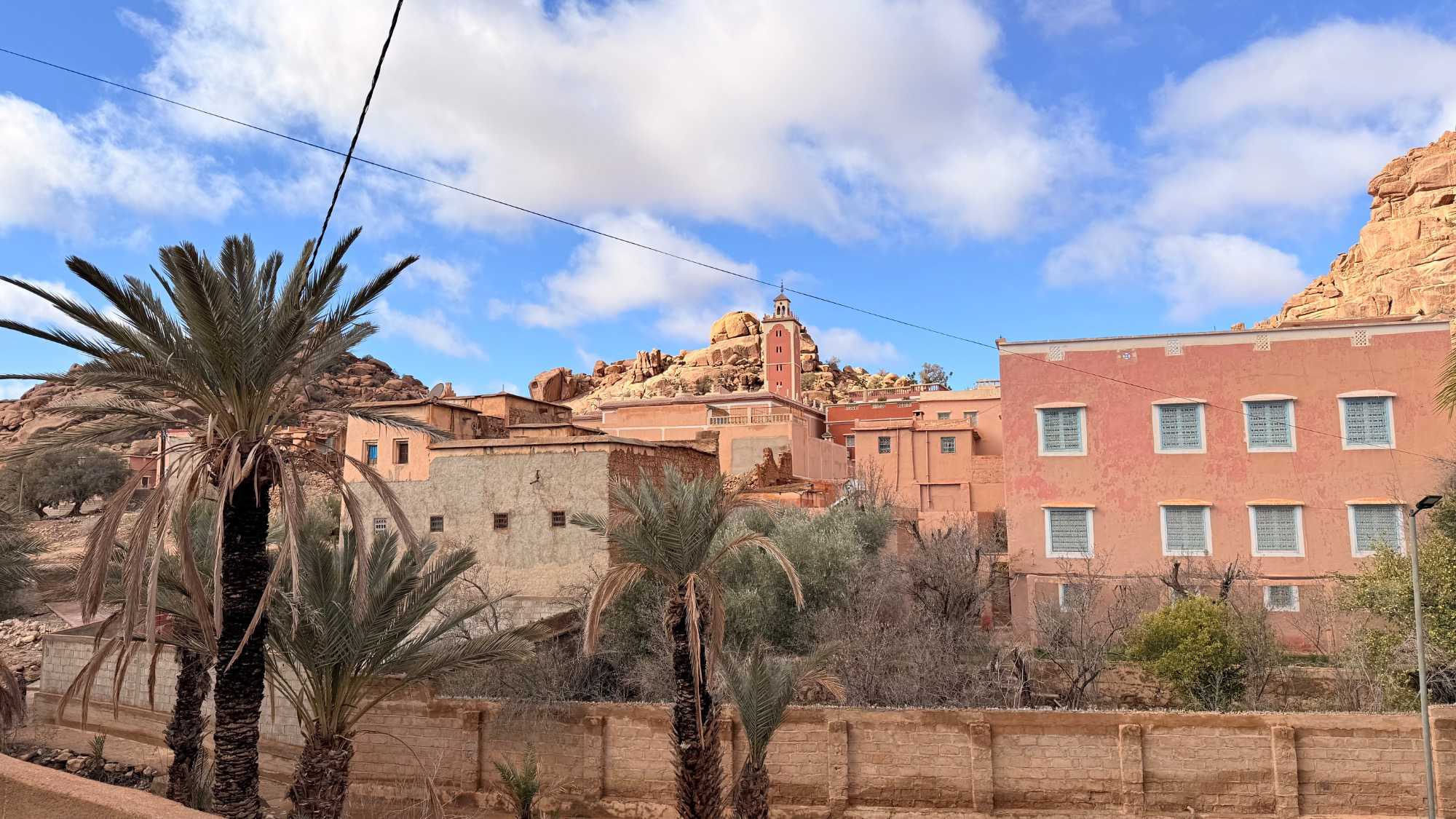Sur le chemin du retour, Houcine nous offre un itinéraire différent, ponctué de paysages encore plus saisissants. Quelques arrêts nous permettent de découvrir des ruines anciennes et un ancien lieu de commerce juif. Devant ces structures vieilles de plus de 800 ans, toujours debout, le temps semble une fois de plus suspendu.