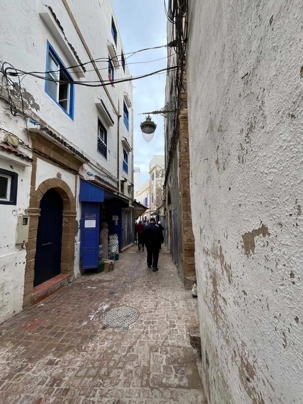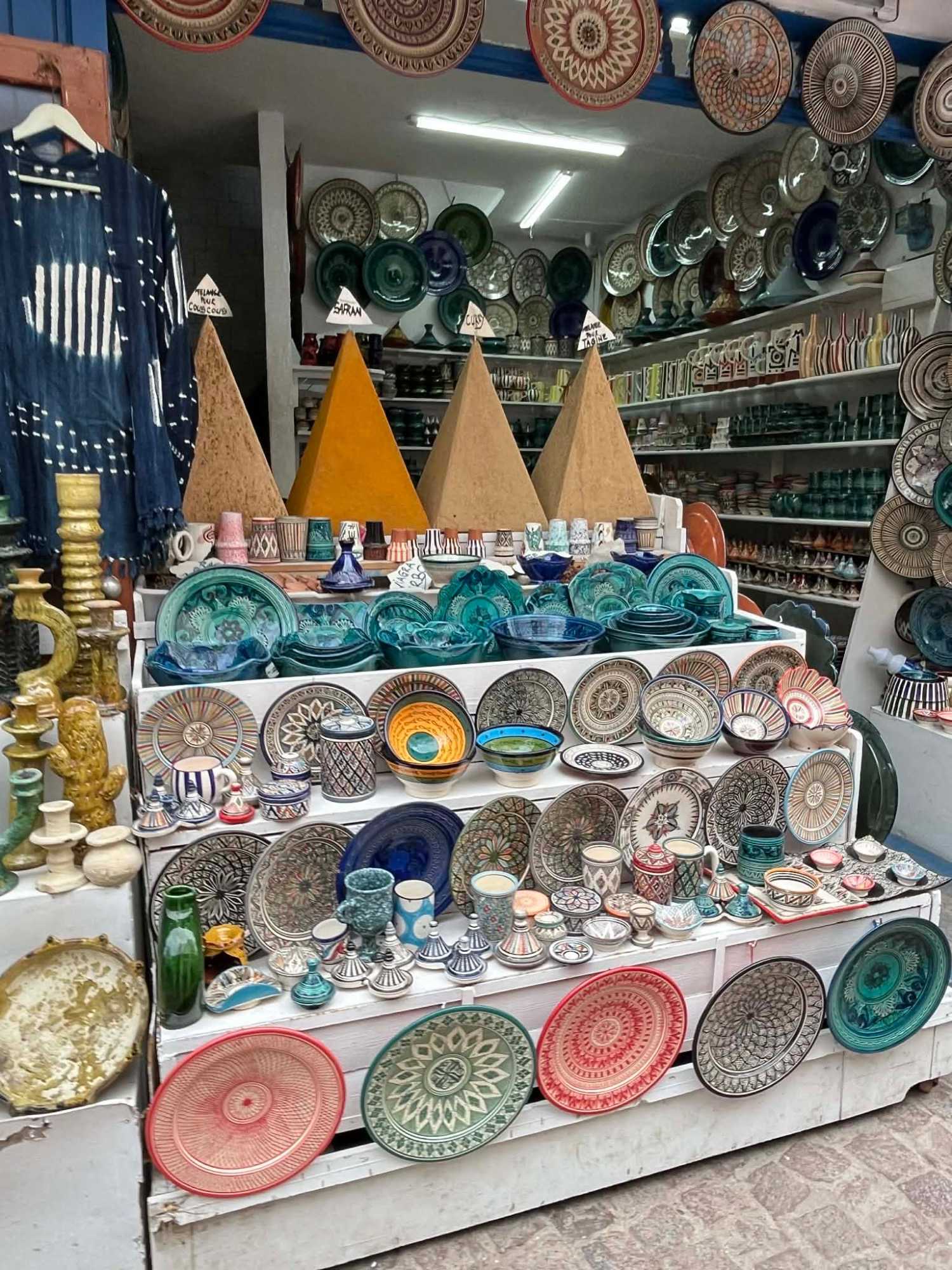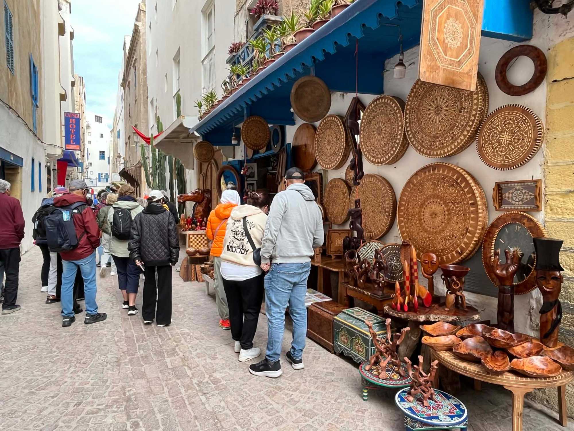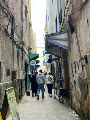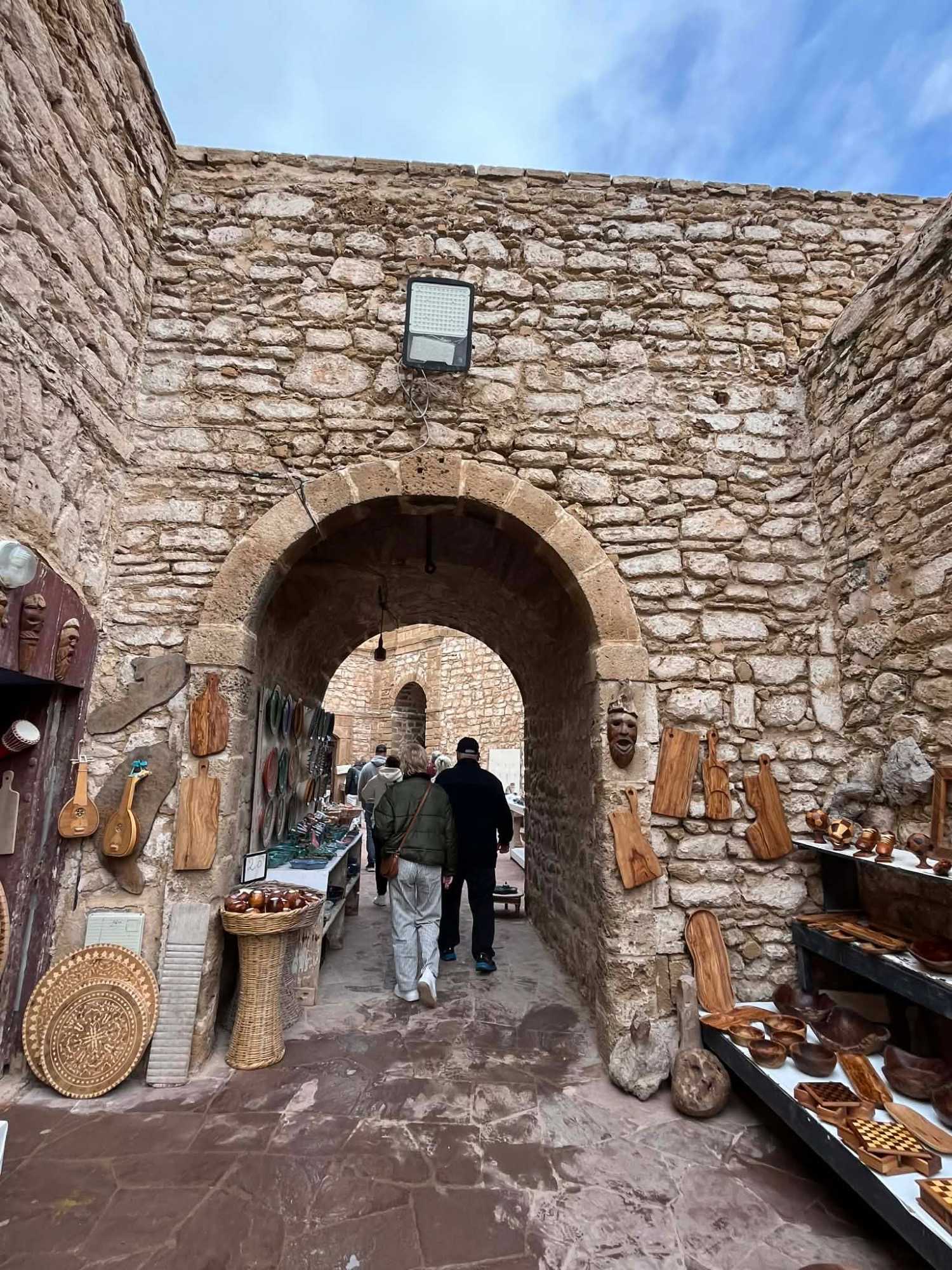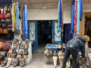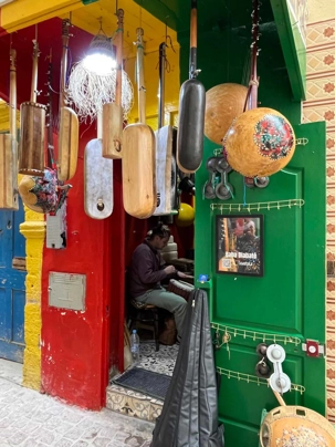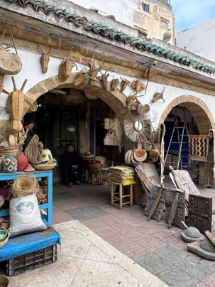 En flânant dans la médina, aujourd’hui classée au patrimoine mondial de l’UNESCO, nous avons découvert un dédale de ruelles animées, où se côtoient artisans, galeries d’art et petites boutiques. Les maisons blanches aux volets bleus, la musique gnaoua qui s’échappe parfois d’une porte entrouverte et l’odeur iodée de la mer donnent à Essaouira une âme unique.