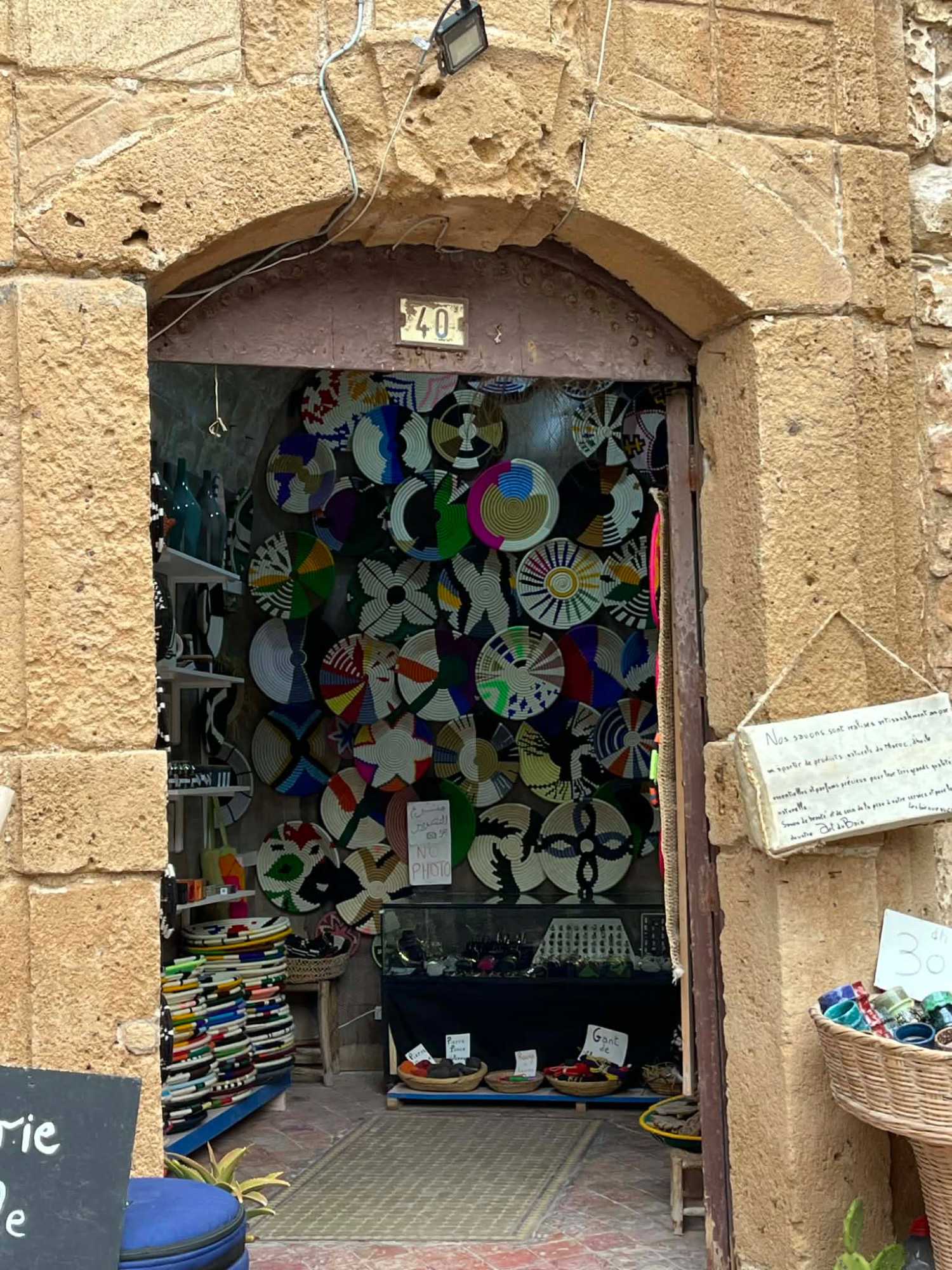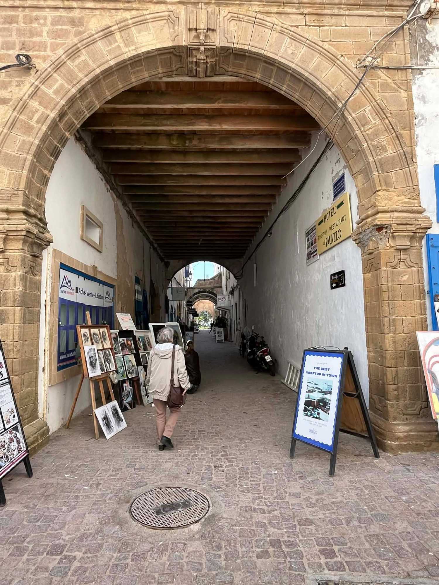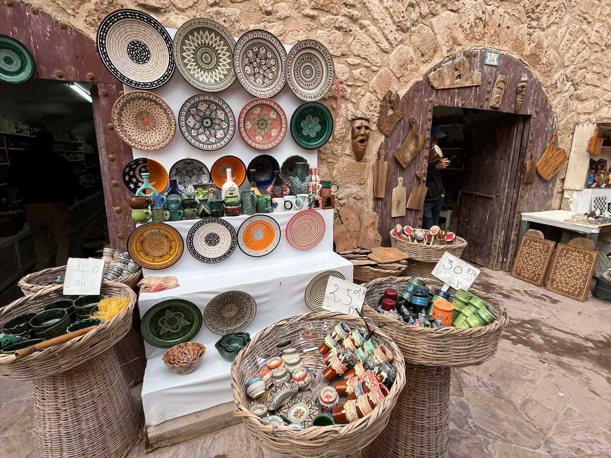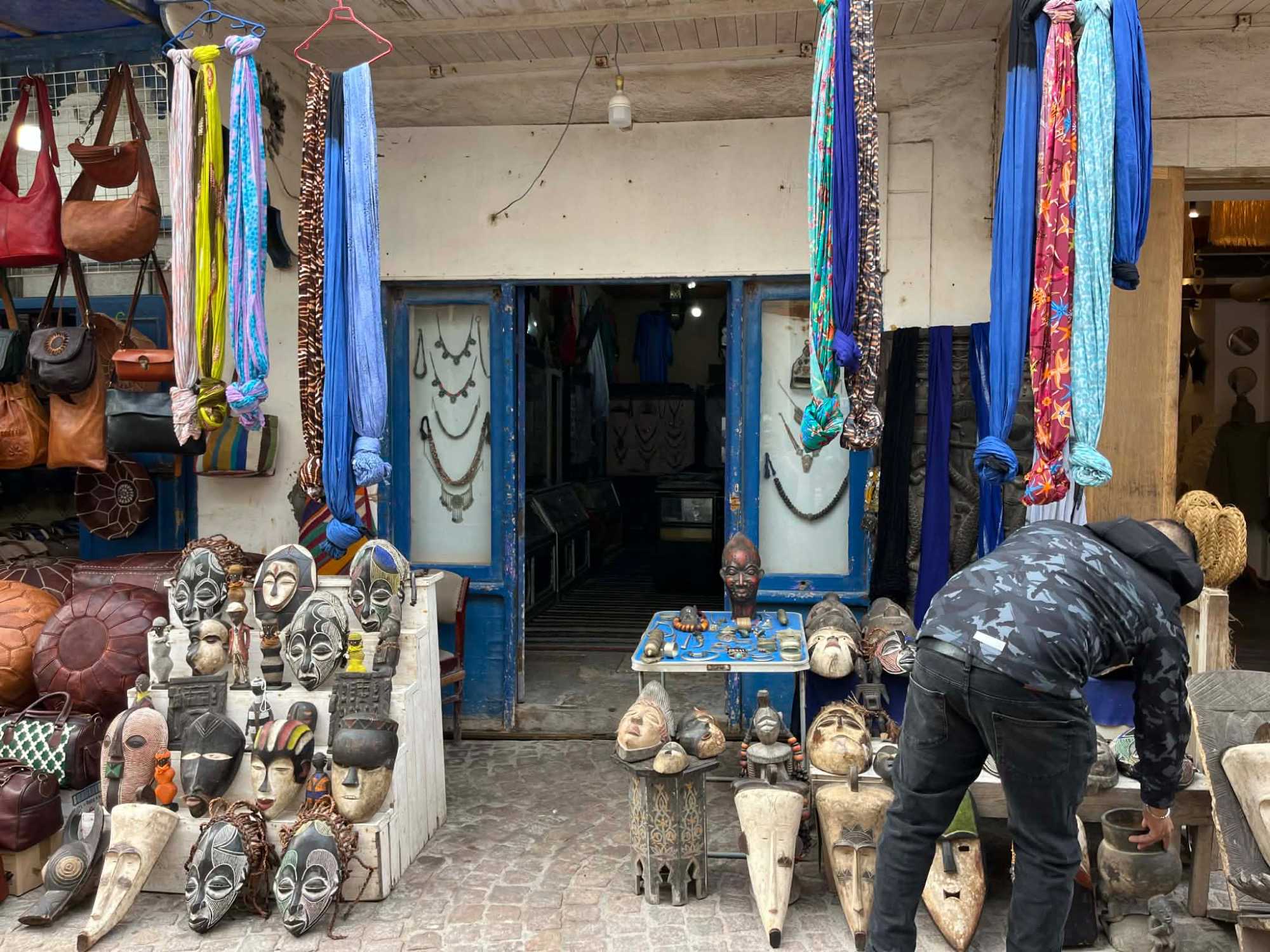 En flânant dans la médina, aujourd’hui classée au patrimoine mondial de l’UNESCO, nous avons découvert un dédale de ruelles animées, où se côtoient artisans, galeries d’art et petites boutiques. Les maisons blanches aux volets bleus, la musique gnaoua qui s’échappe parfois d’une porte entrouverte et l’odeur iodée de la mer donnent à Essaouira une âme unique.