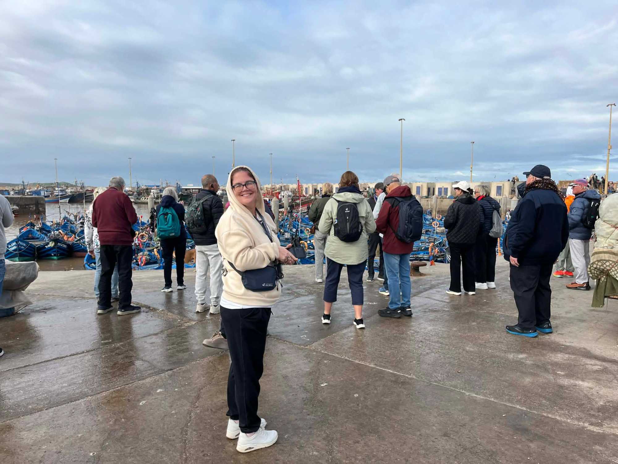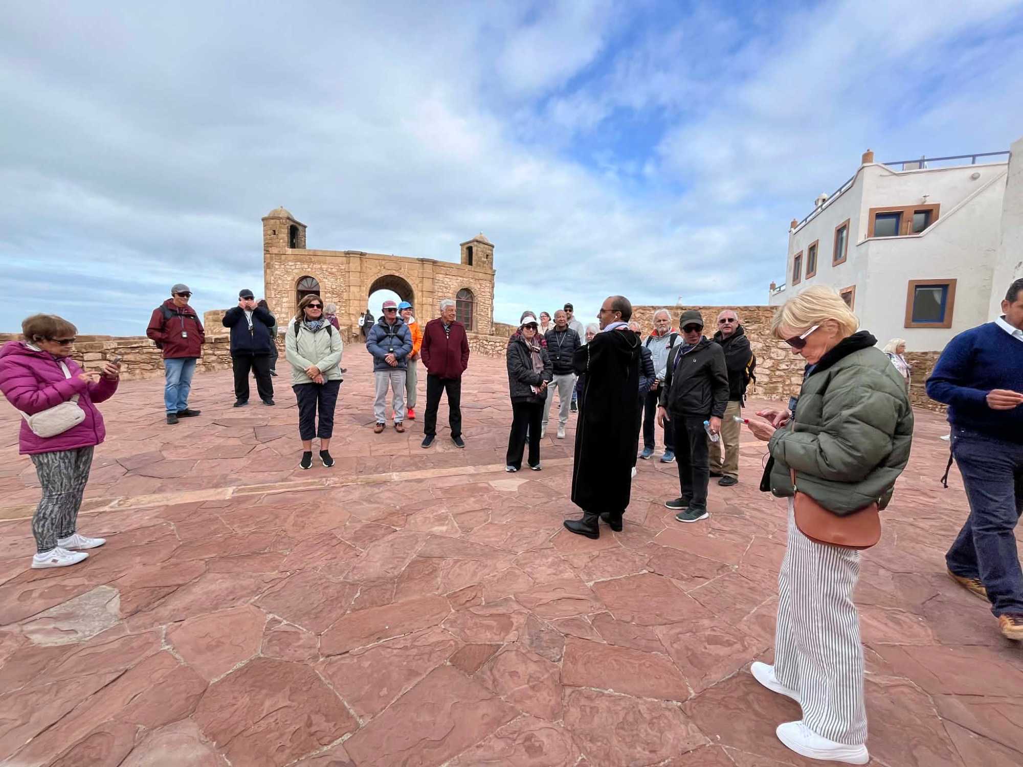 Après le petit déjeuner, 19 voyageurs ont pris la route en direction d’Essaouira, cette petite ville de pêcheurs au charme fou, reconnaissable entre toutes avec ses murs blancs, ses touches de bleu et son atmosphère paisible, bercée par les embruns de l’océan Atlantique.
