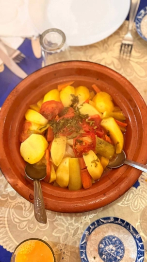 Nous avons ensuite pris le temps de dîner dans un endroit typique, très chaleureux et familial. Une belle découverte : on mange décidément très bien au Maroc, toujours avec générosité et convivialité, autour de plats qui racontent eux aussi l’histoire et les traditions du pays.