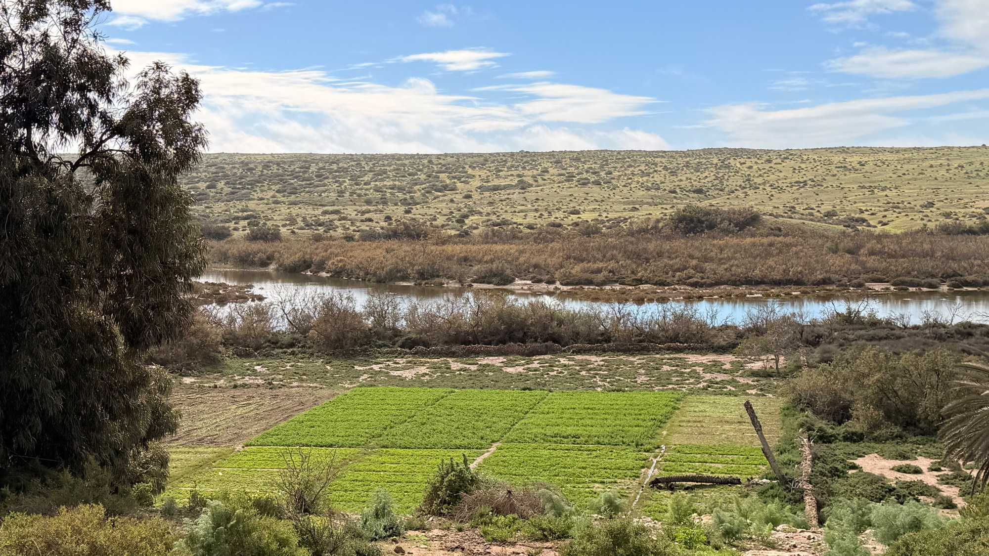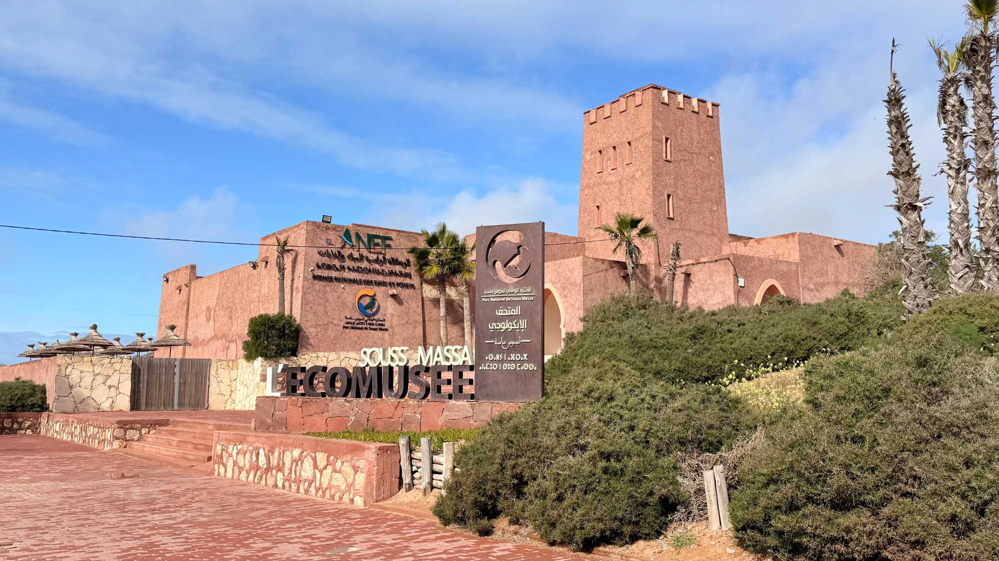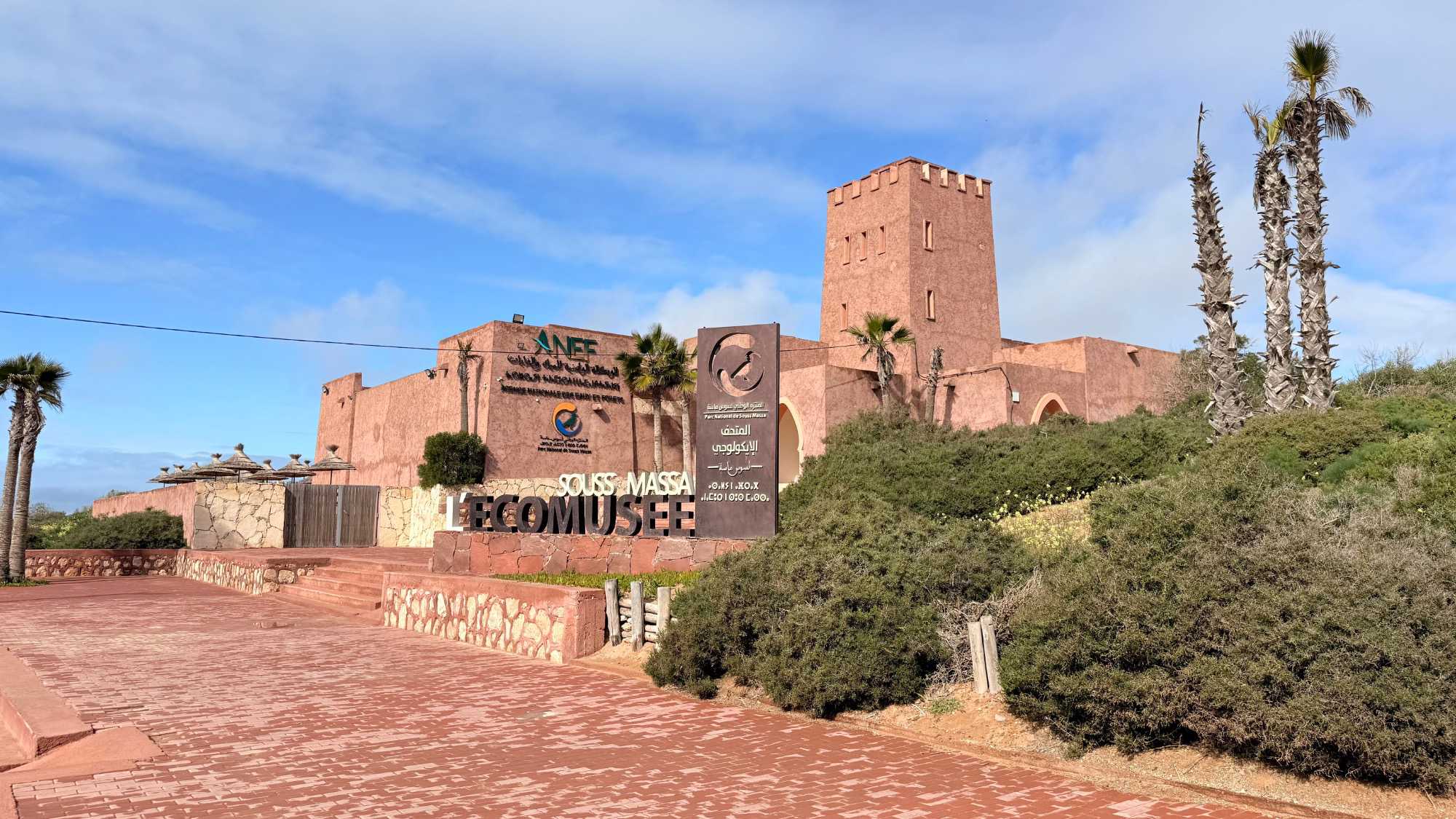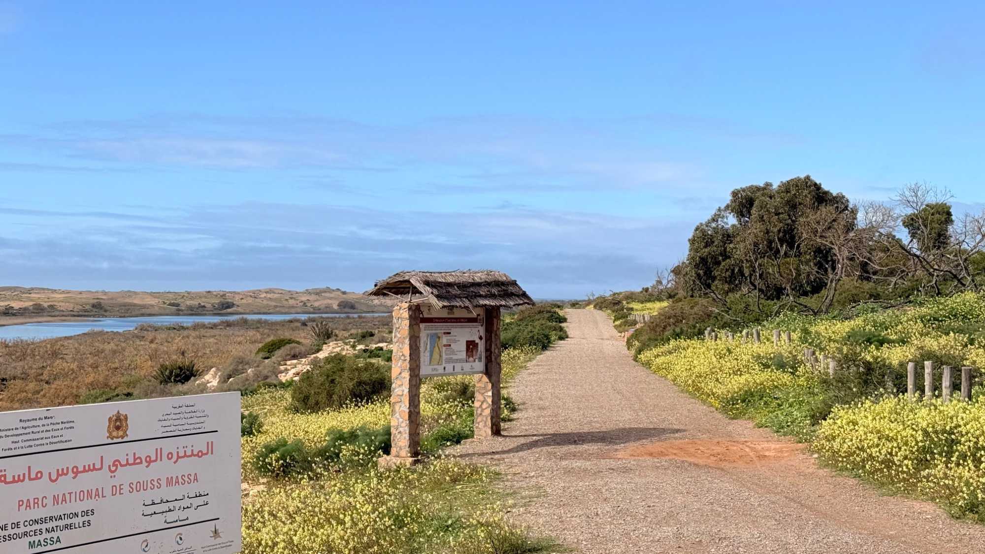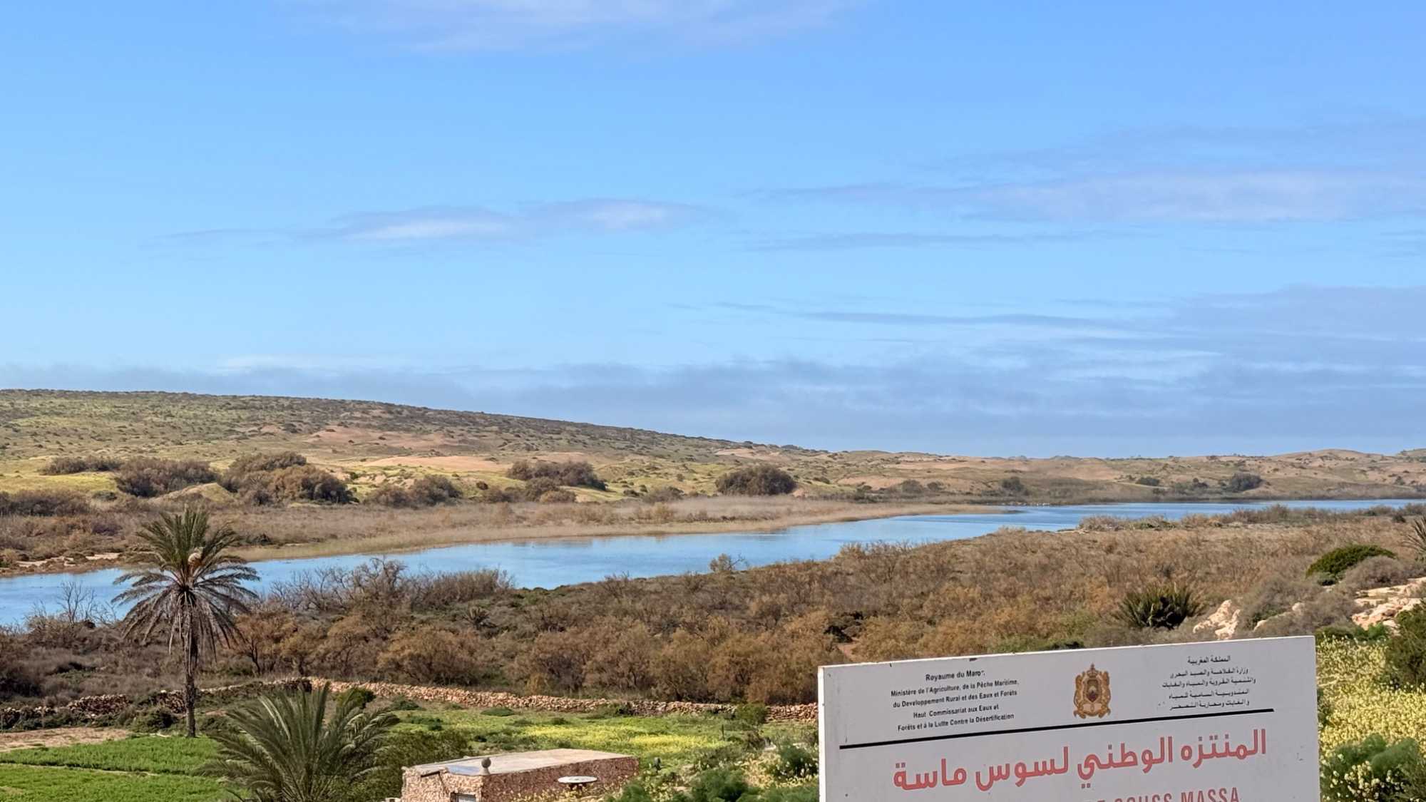 Petit arrêt ensuite dans le parc national de Massa, un site naturel protégé d’une grande richesse. Ce parc a été créé pour préserver un écosystème unique, notamment l’estuaire de l’oued Massa, essentiel à la faune et à la flore locales. Il est connu pour accueillir de nombreuses espèces d’oiseaux migrateurs qui y trouvent refuge lors de leurs longs voyages entre l’Europe et l’Afrique. Même si ce n’était pas la saison idéale et que nous en avons aperçu très peu, nous avons beaucoup apprécié notre arrêt. Le silence, l’immensité des espaces, la rencontre entre le fleuve et l’océan, et cette nature encore sauvage nous ont offert un moment de calme et de profonde sérénité.
