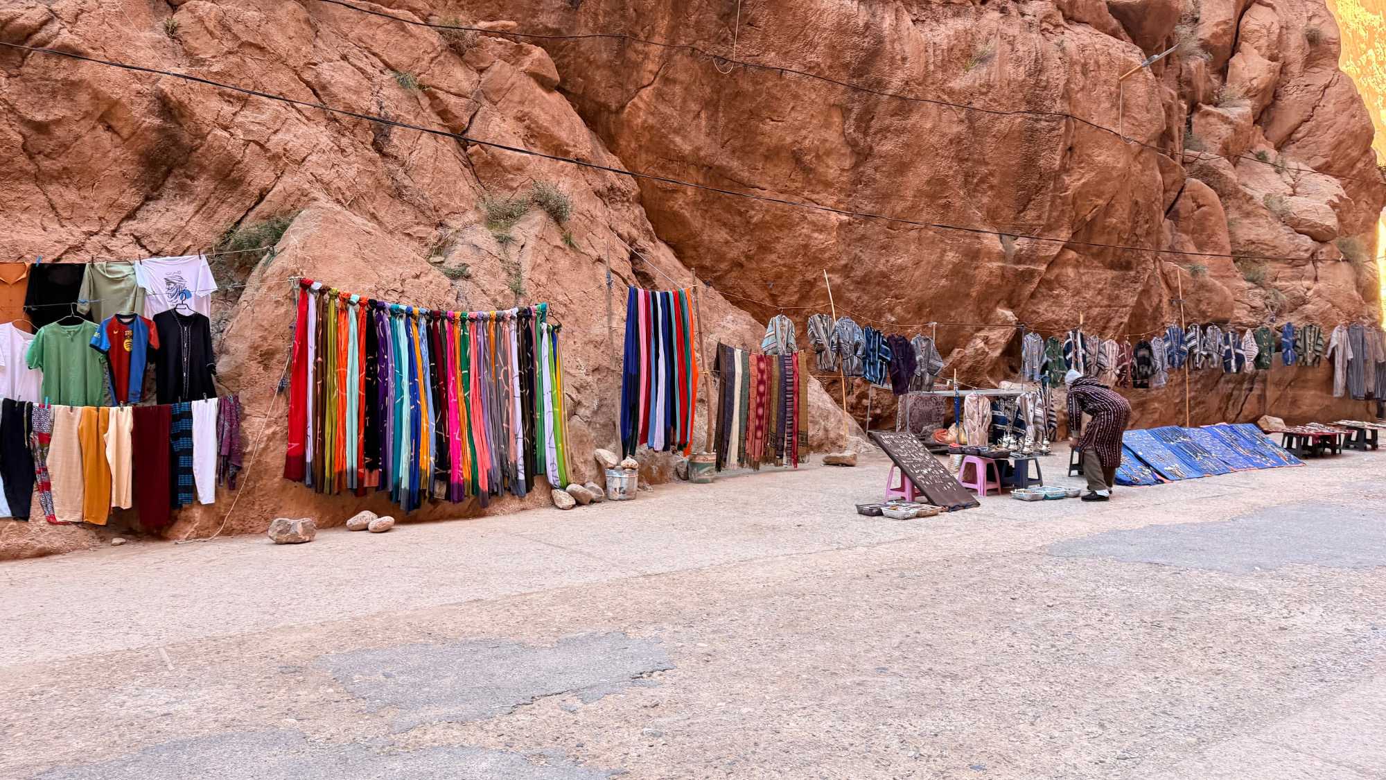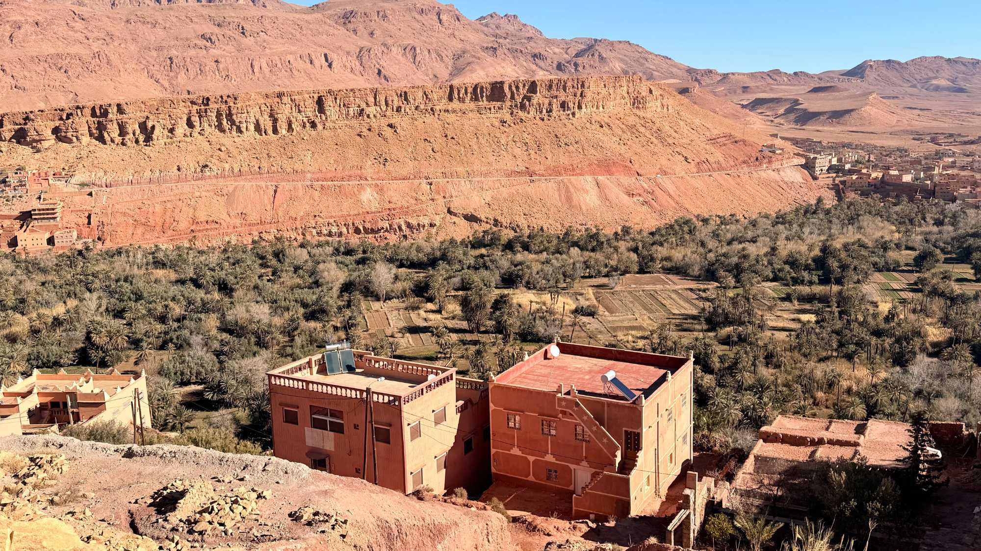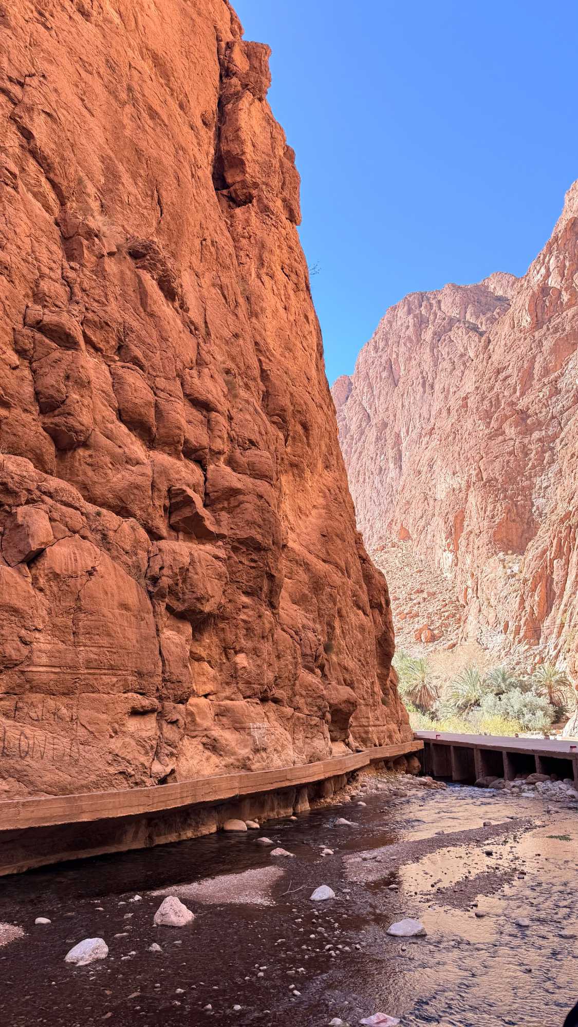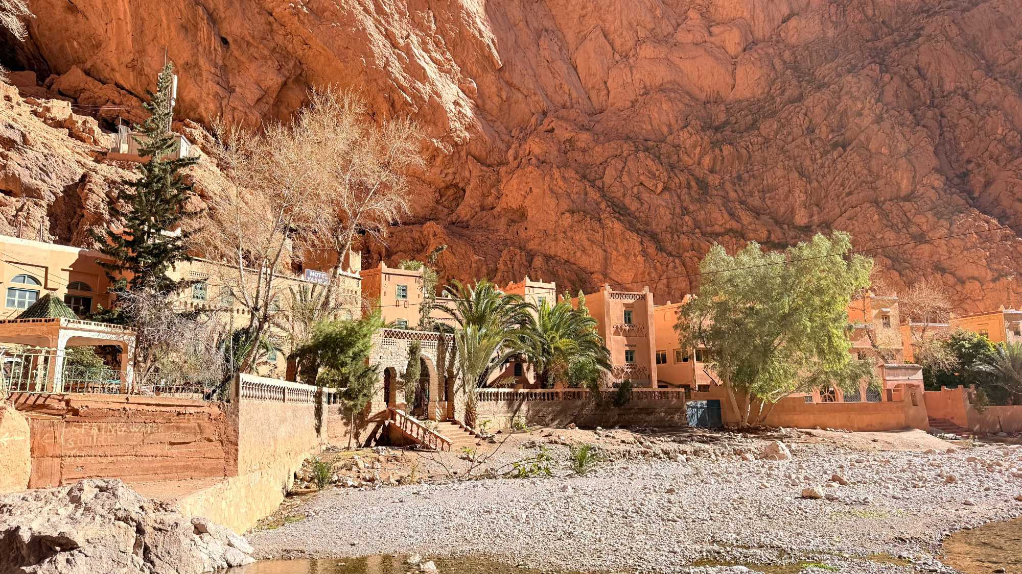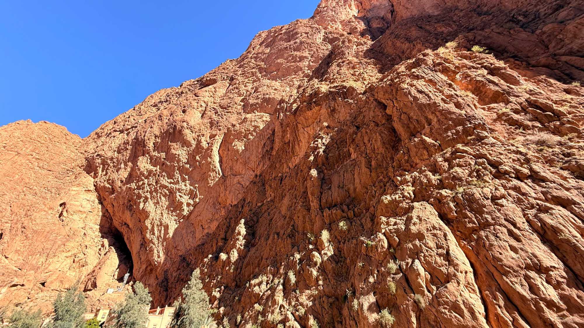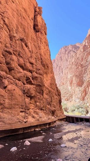 Notre chemin s’ouvre sur les gorges de Todra, véritable cathédrale naturelle sculptée par l’eau et les siècles. Les falaises immenses, dressées comme des gardiennes de pierre, enferment un ruban de fraîcheur où coule l’oued Todra. La lumière y danse sur les parois ocres, les pas résonnent doucement, et la vie des oasis voisines rappelle l’harmonie ancienne entre l’homme et la nature. Marcher dans les gorges, c’est avancer dans un lieu où le temps ralentit, où chaque souffle devient contemplation.
