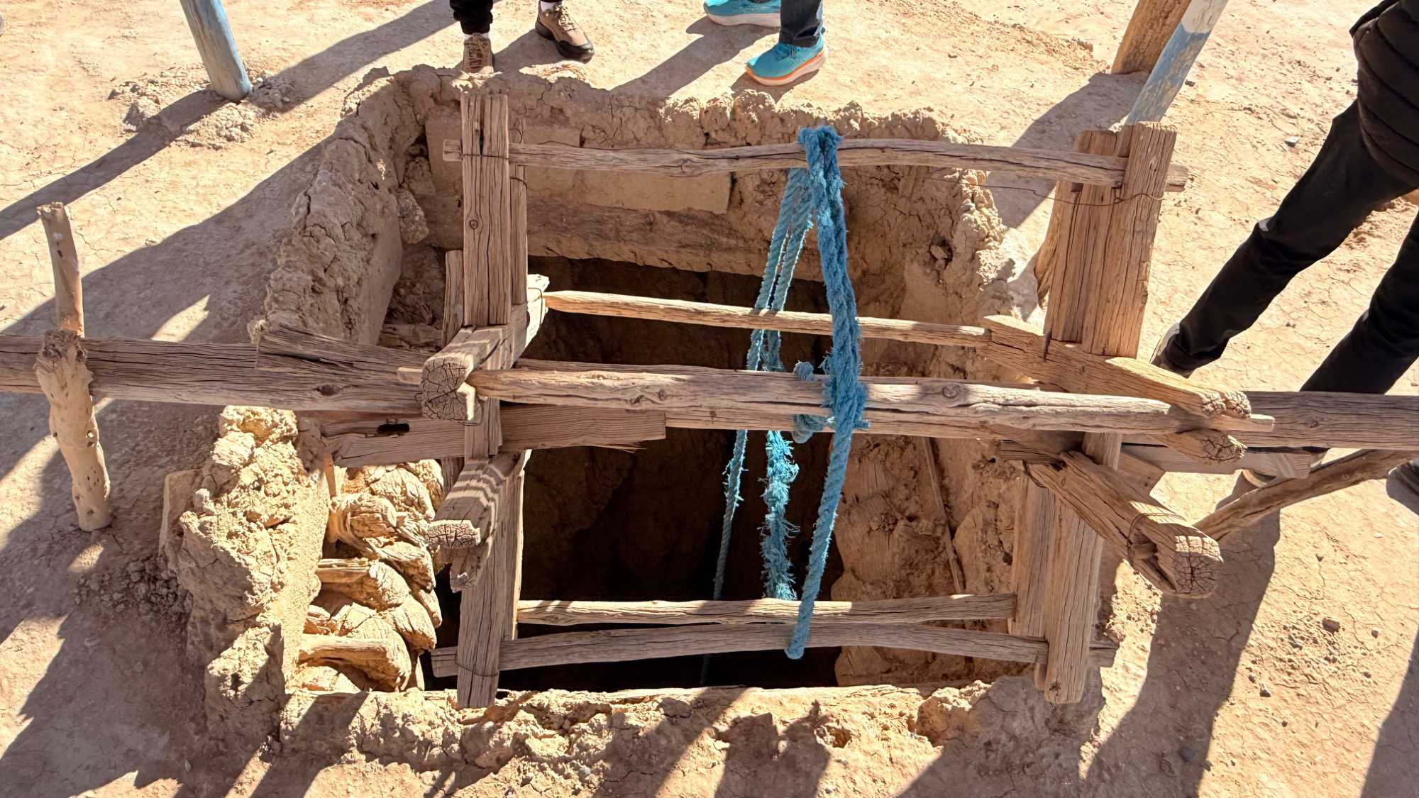 Après une pause bien méritée autour d’un bon dîner, nous poursuivons notre route plus loin, là où l’horizon s’ouvre et où la route s’étire jusqu’à Merzouga, aux portes du désert, là où la terre se transforme en une immense mer de sable. En chemin, nous découvrons un ancien système de canalisation de l’eau, aussi impressionnant que chargé d’histoire. Cette ingénieuse réalisation nous ramène à une époque où les hommes travaillaient, comme on dit, à la pioche et à la pelle, façonnant la terre avec courage et patience.