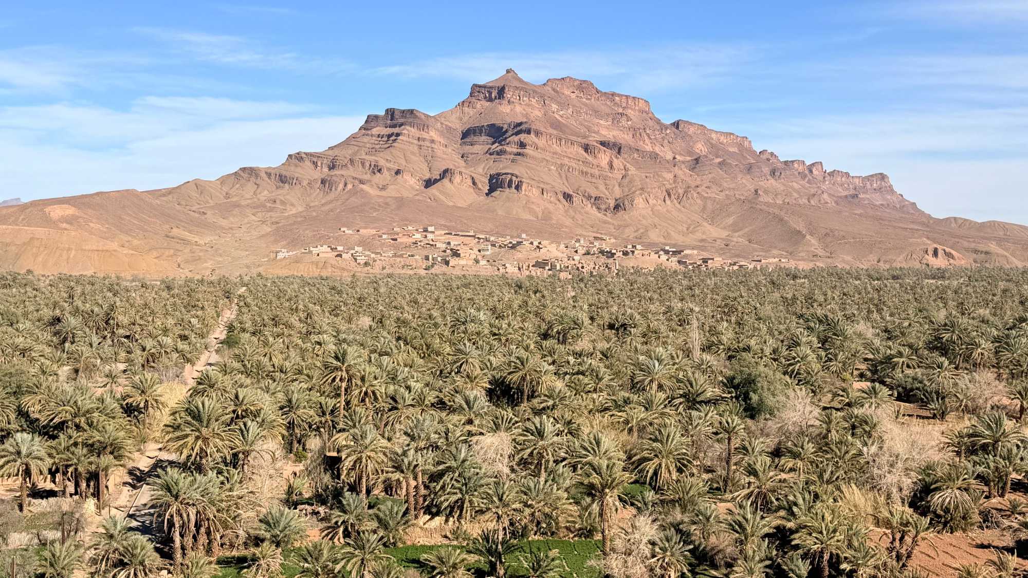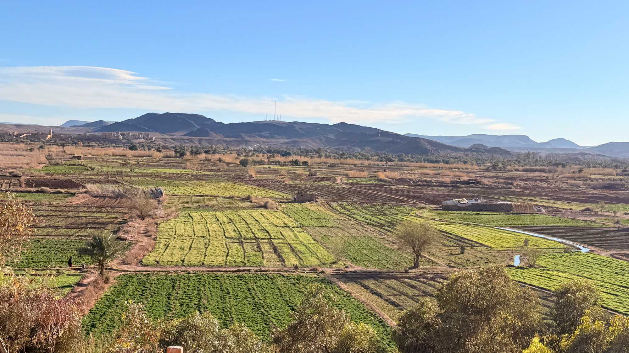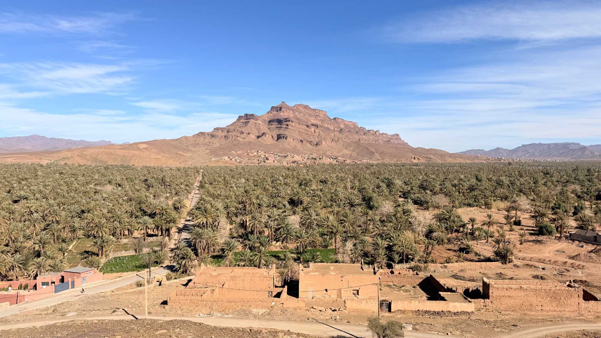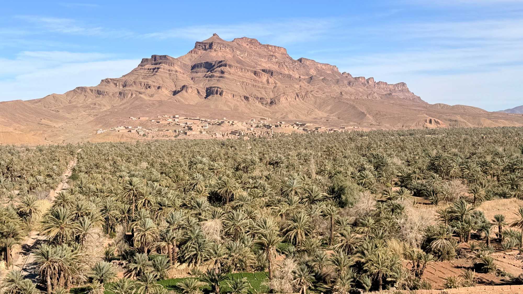 Nous traversons ensuite Tazarine, paisible oasis nichée au cœur de la vallée du Drâa. Entourée de palmeraies et de villages traditionnels, Tazarine est une halte douce et verdoyante, rappelant l’importance de l’eau et de l’agriculture dans ces régions arides. C’est un lieu de repos, de rencontre et de contemplation, où la vie suit encore le rythme des saisons.