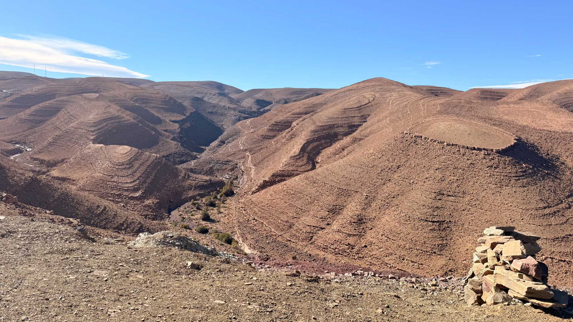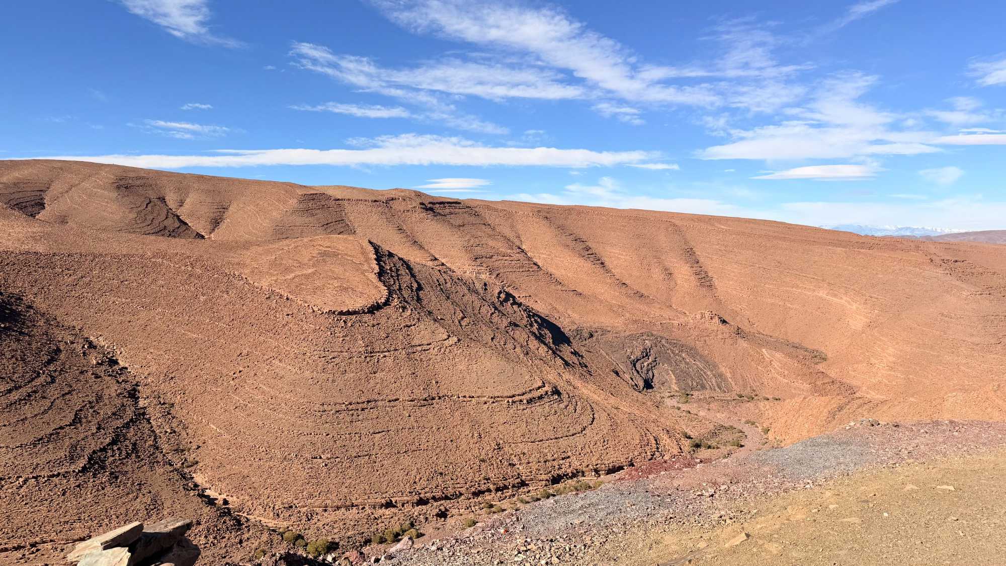 La route s’élève ensuite vers le col de Tizi n’Tfrkhin, offrant des panoramas spectaculaires sur les montagnes et les plateaux environnants. Ici, le paysage change une fois de plus : les couleurs se multiplient, les reliefs se dessinent avec force, et chaque virage dévoile une nouvelle perspective, rappelant la diversité exceptionnelle du sud marocain.
