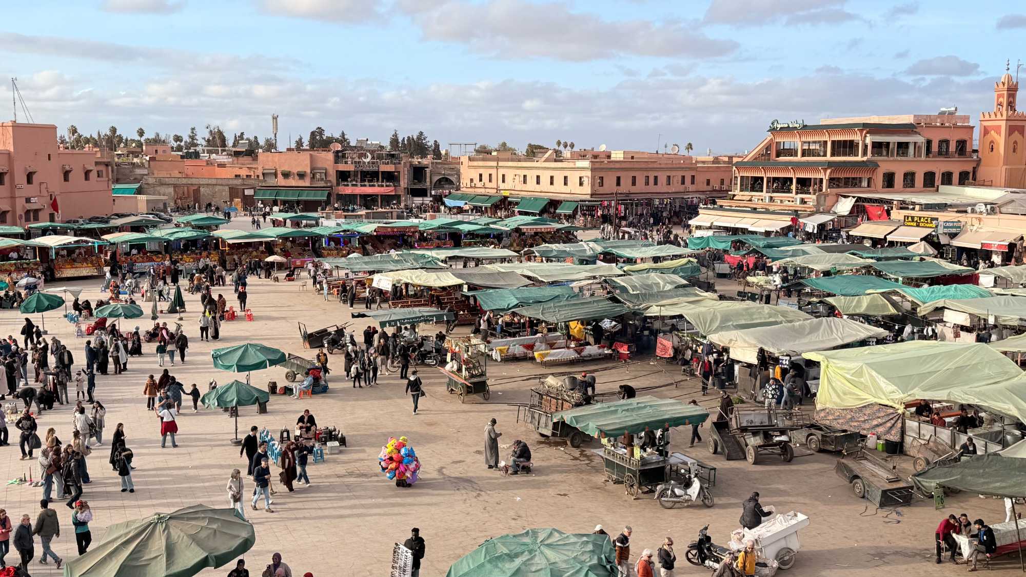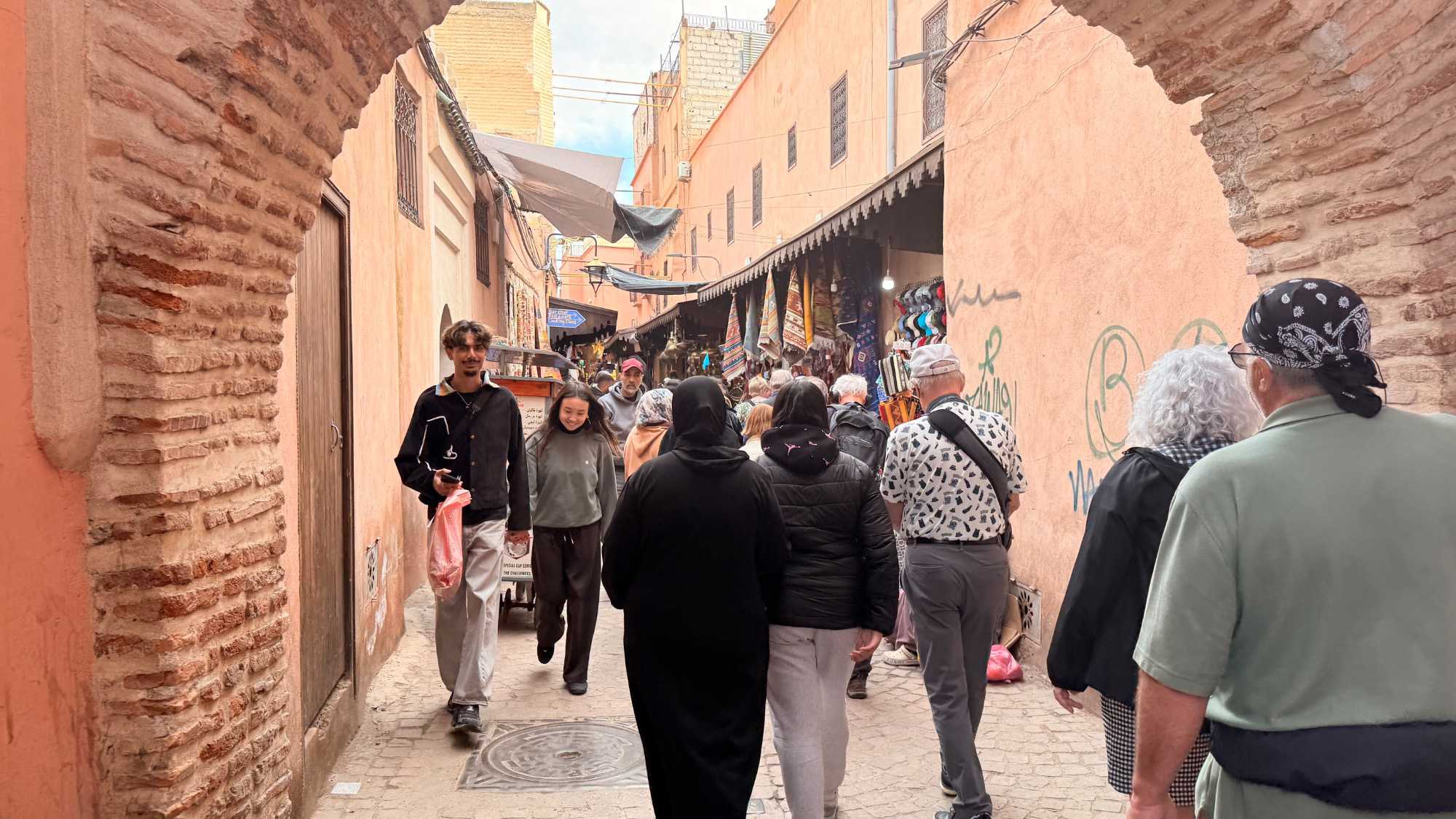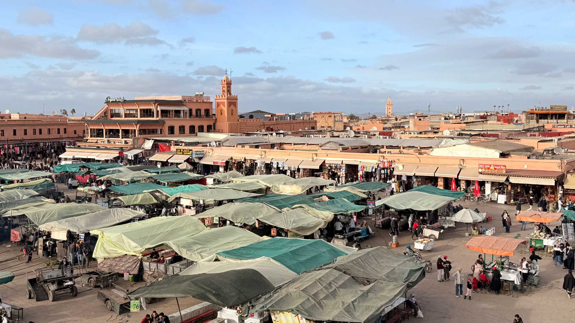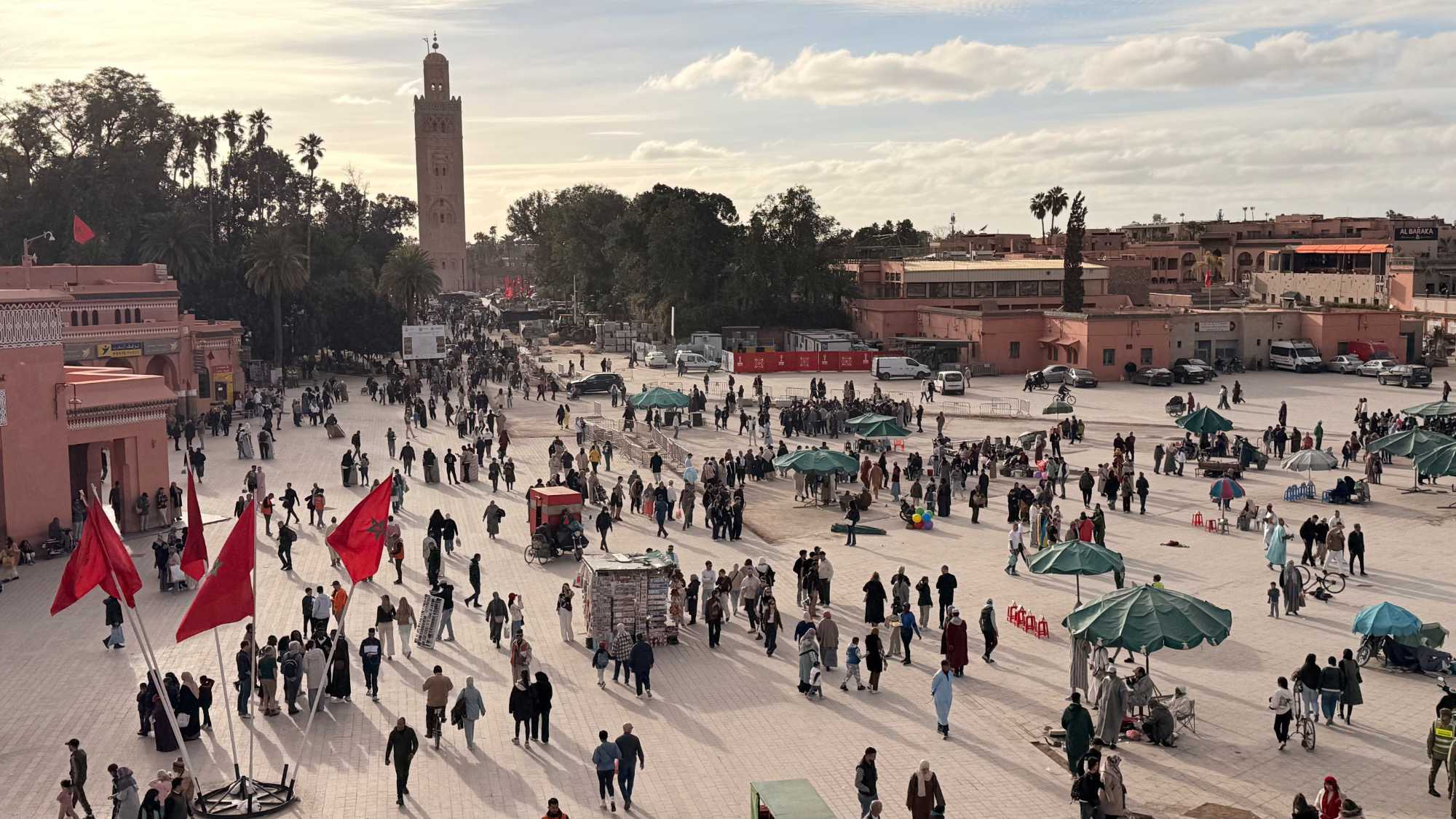 Puis, peu à peu, la descente commence. L’air devient plus doux, la végétation plus dense, annonçant l’approche de Marrakech, la ville ocre. Après les vastes espaces du désert et la rudesse des montagnes, l’arrivée à Marrakech marque un retour à l’effervescence : palmiers, remparts, jardins et animation permanente. La ville accueille les voyageurs comme un carrefour vivant entre traditions ancestrales et énergie moderne.