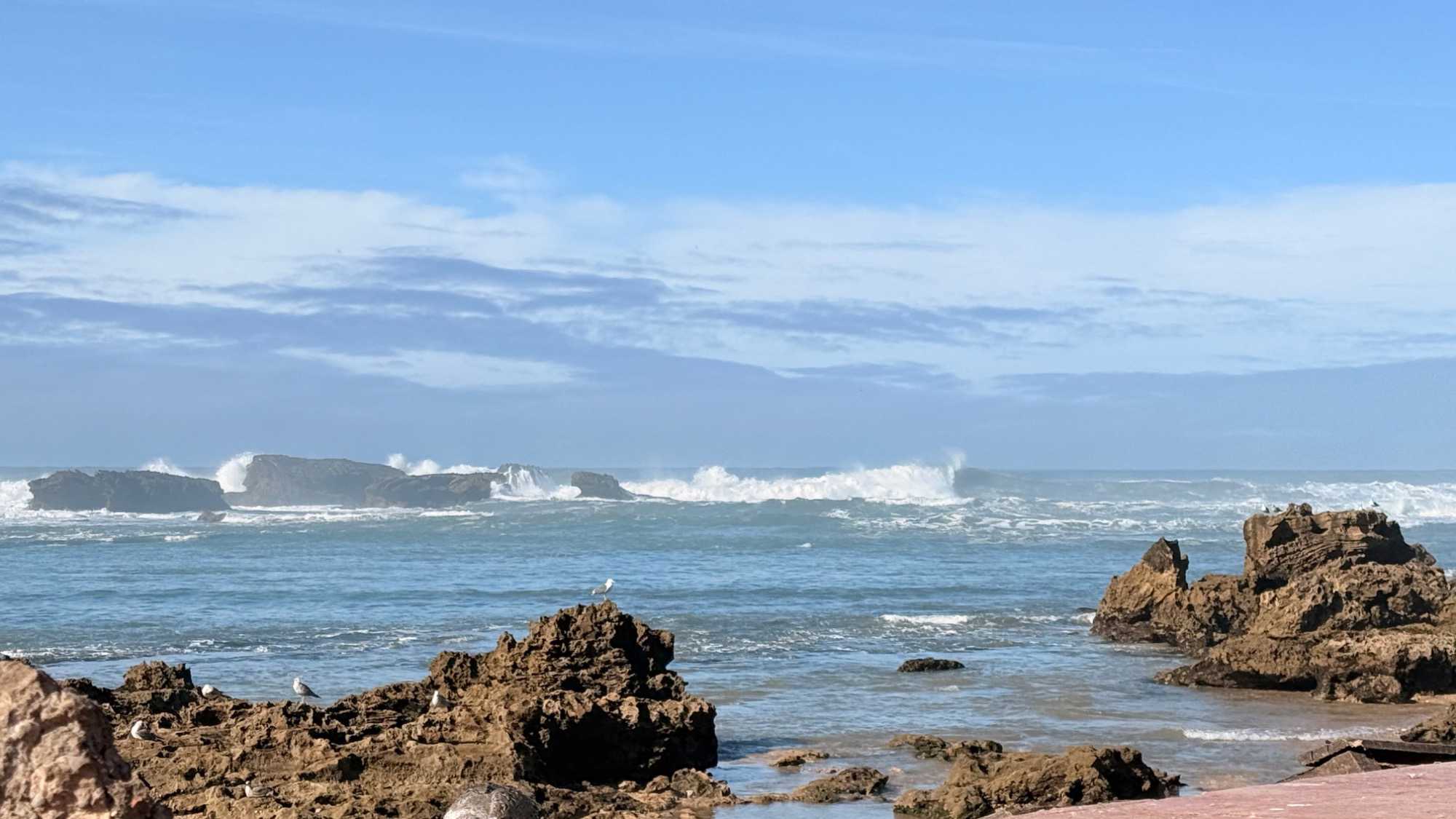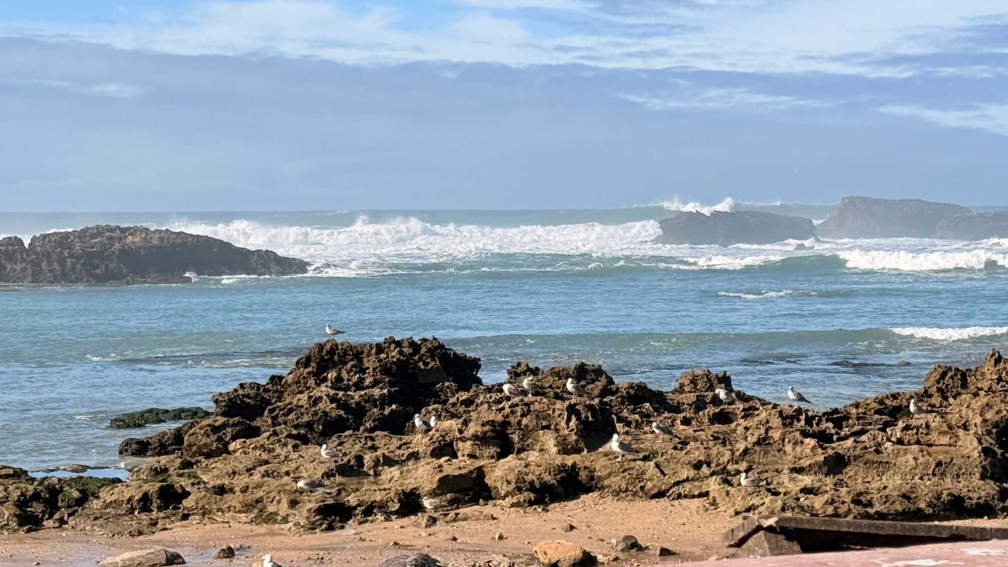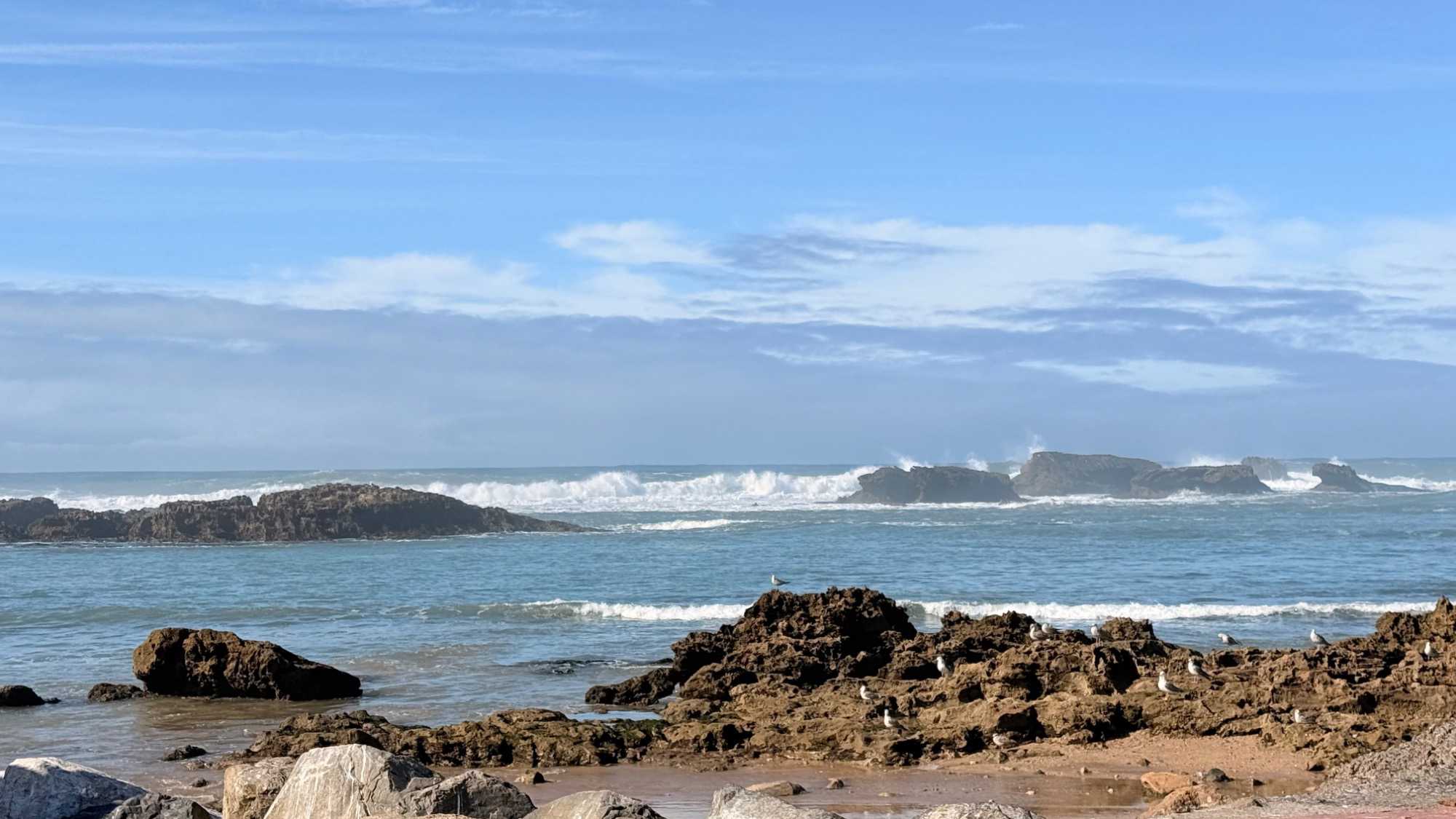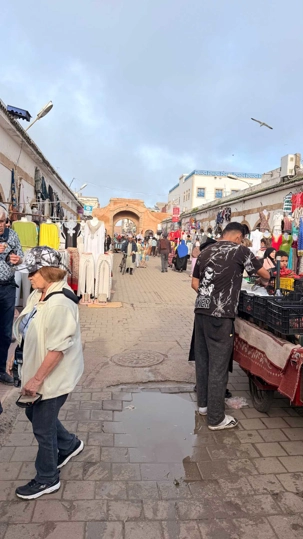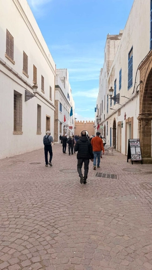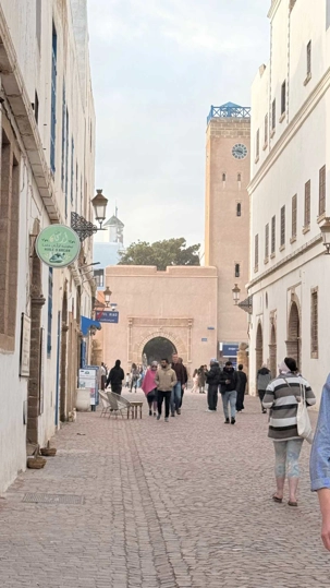 Enfin, nous arrivons à Essaouira, la ville portuaire au charme unique. Ses remparts blancs et ses portes bleues nous accueillent avec douceur et élégance. Flâner dans ses ruelles, c’est se perdre dans un labyrinthe de boutiques d’artisanat, de galeries d’art et de cafés animés. Le port, avec ses bateaux colorés et ses pêcheurs rentrant de la mer, nous rappelle l’importance historique et commerciale de cette ville. Nous découvrons également la célèbre place Moulay Hassan, où la vie s’anime au rythme des musiciens, des marchands et des habitants, créant une atmosphère chaleureuse, vibrante et inoubliable.