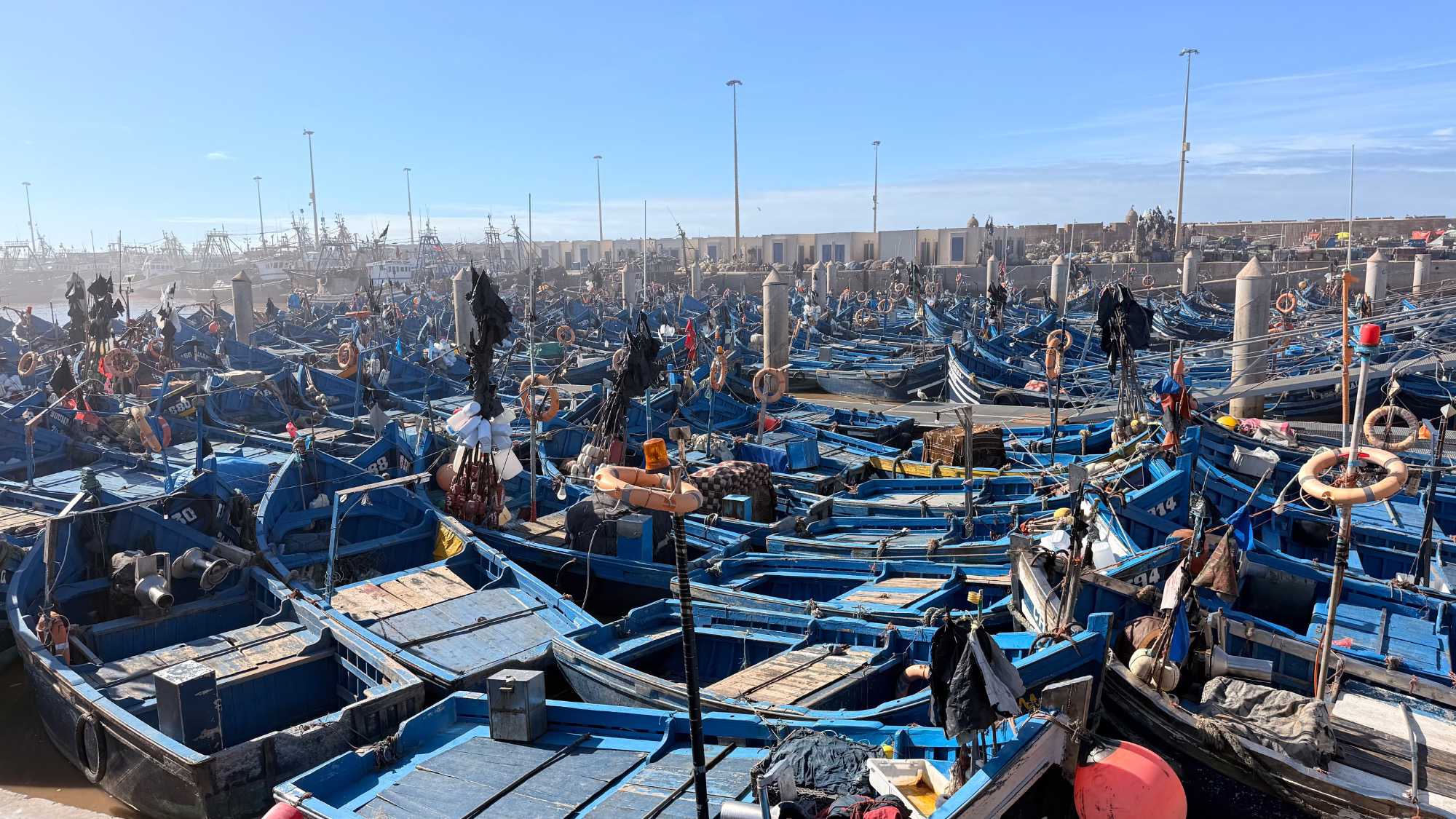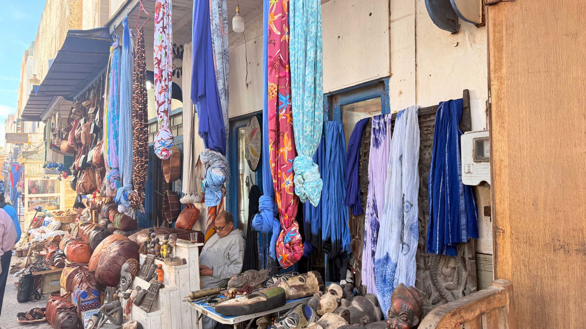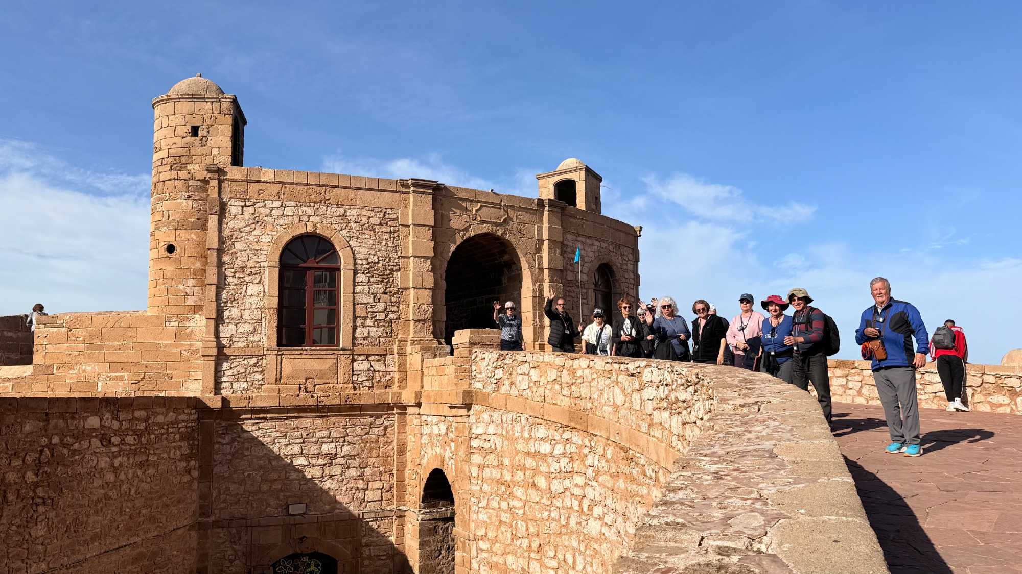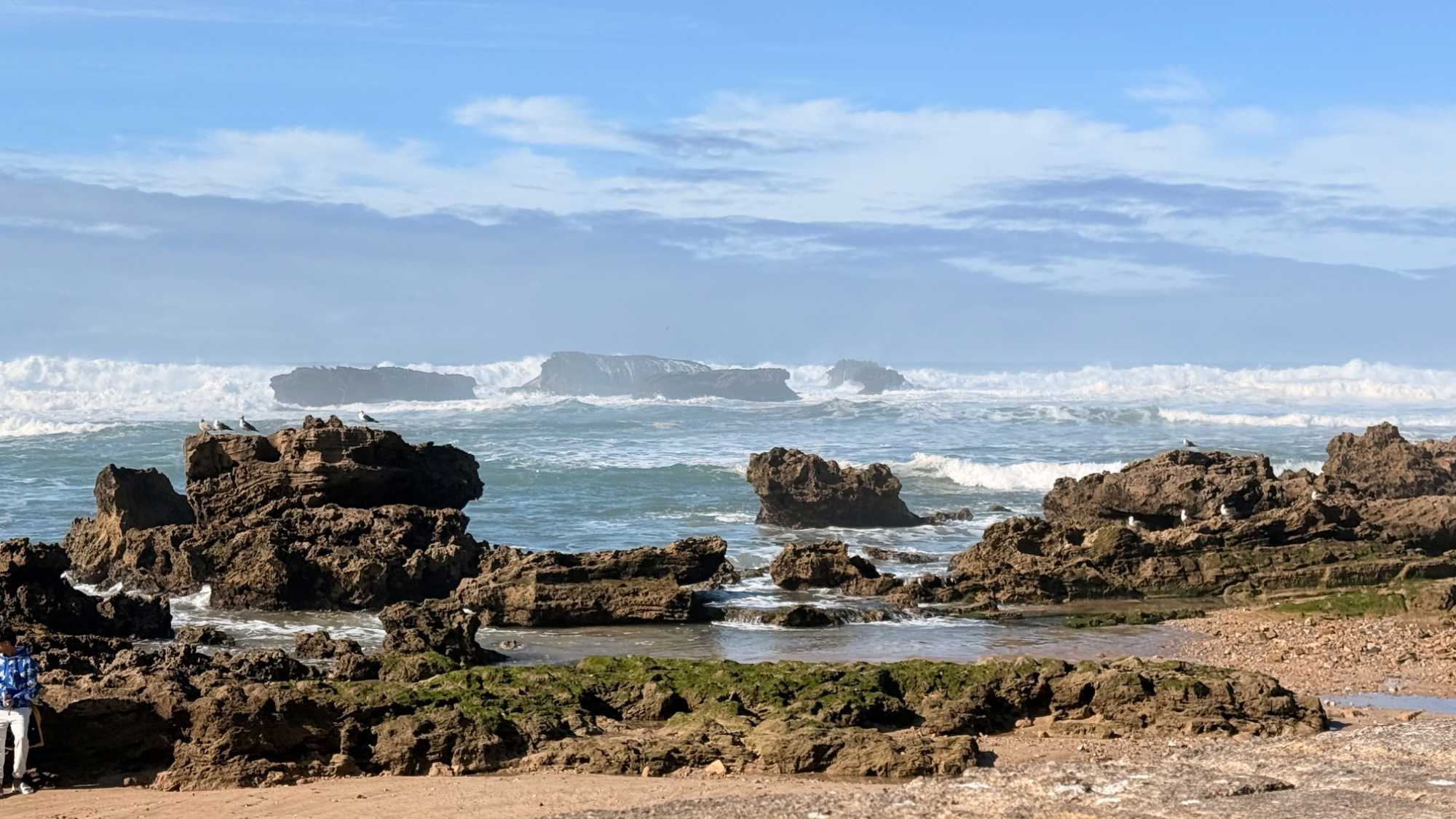 Enfin, nous arrivons à Essaouira, la ville portuaire au charme unique. Ses remparts blancs et ses portes bleues nous accueillent avec douceur et élégance. Flâner dans ses ruelles, c’est se perdre dans un labyrinthe de boutiques d’artisanat, de galeries d’art et de cafés animés. Le port, avec ses bateaux colorés et ses pêcheurs rentrant de la mer, nous rappelle l’importance historique et commerciale de cette ville. Nous découvrons également la célèbre place Moulay Hassan, où la vie s’anime au rythme des musiciens, des marchands et des habitants, créant une atmosphère chaleureuse, vibrante et inoubliable.