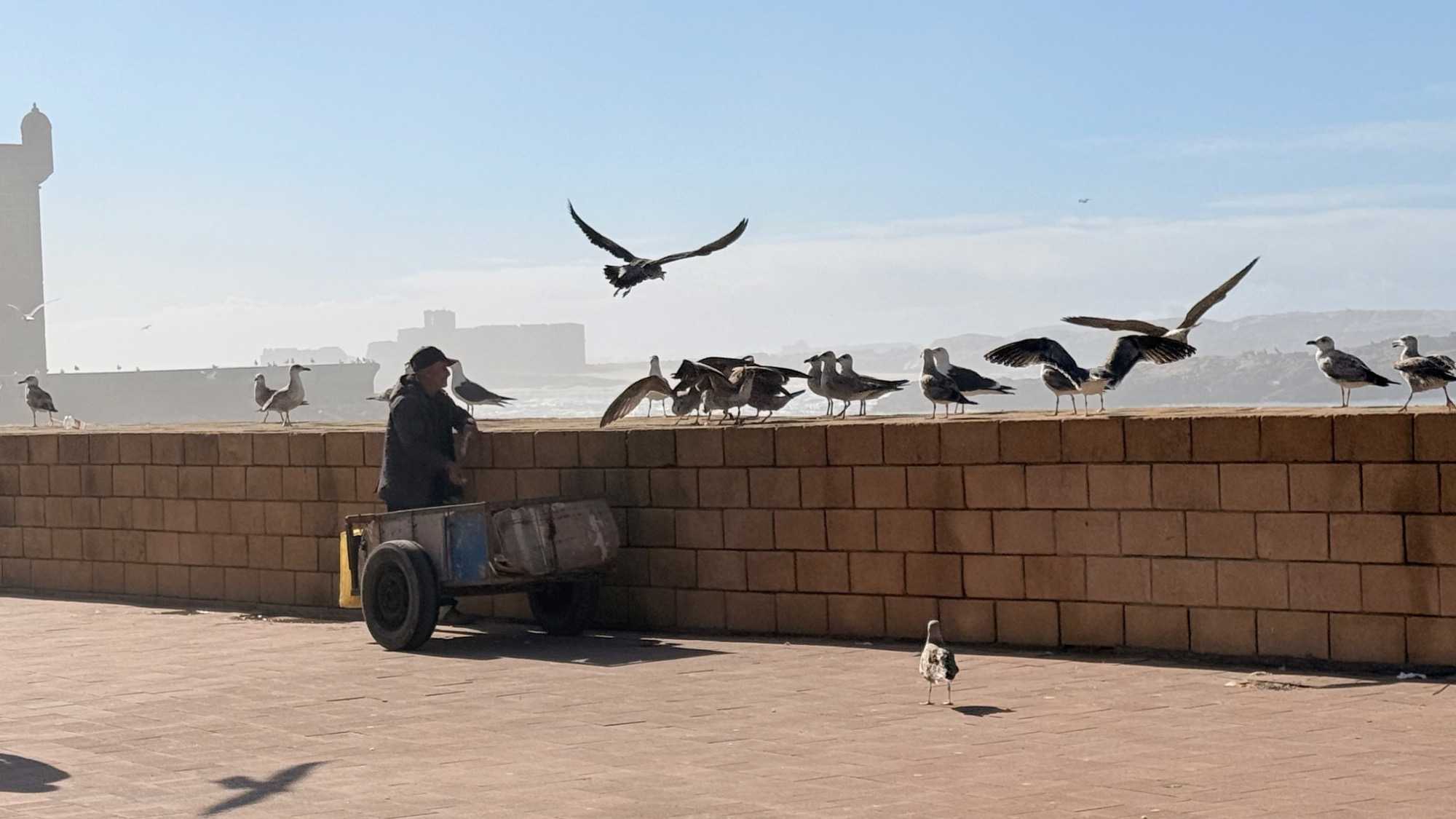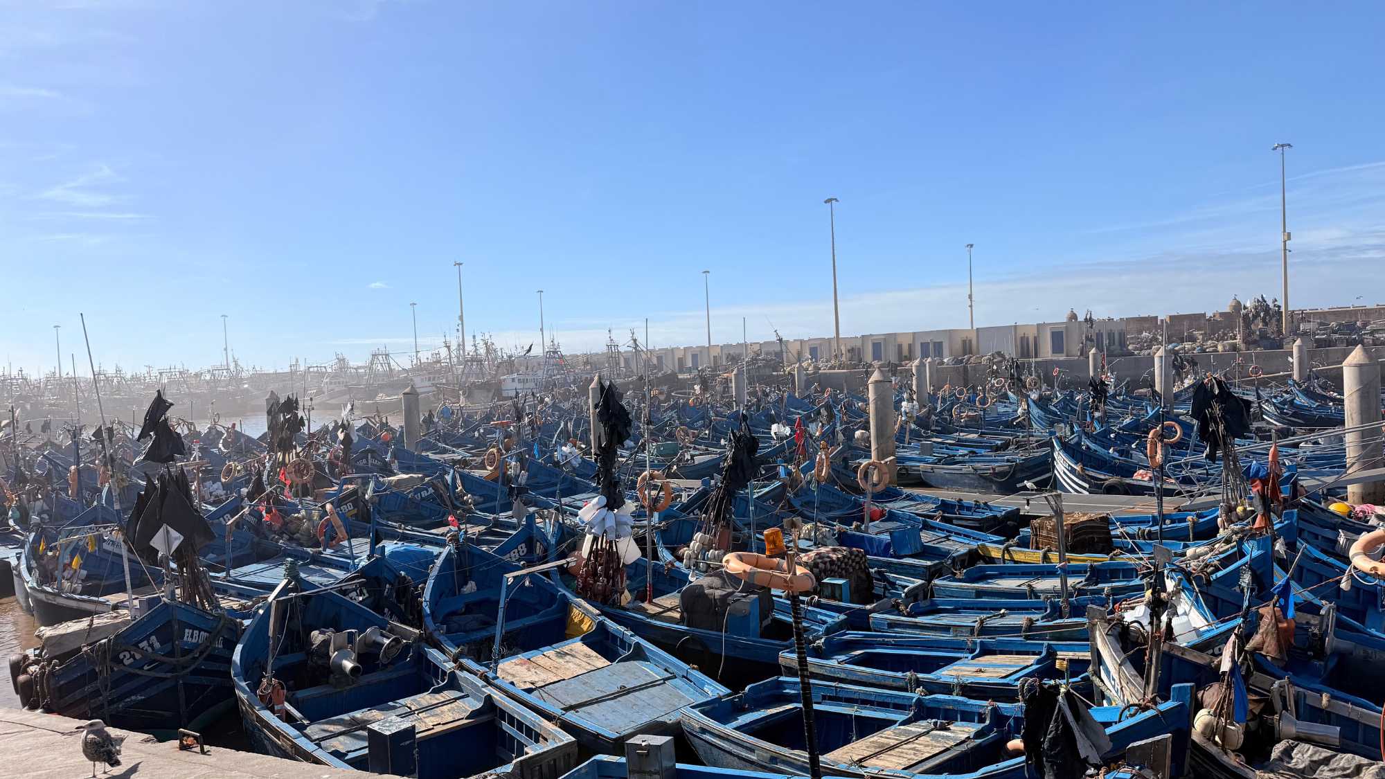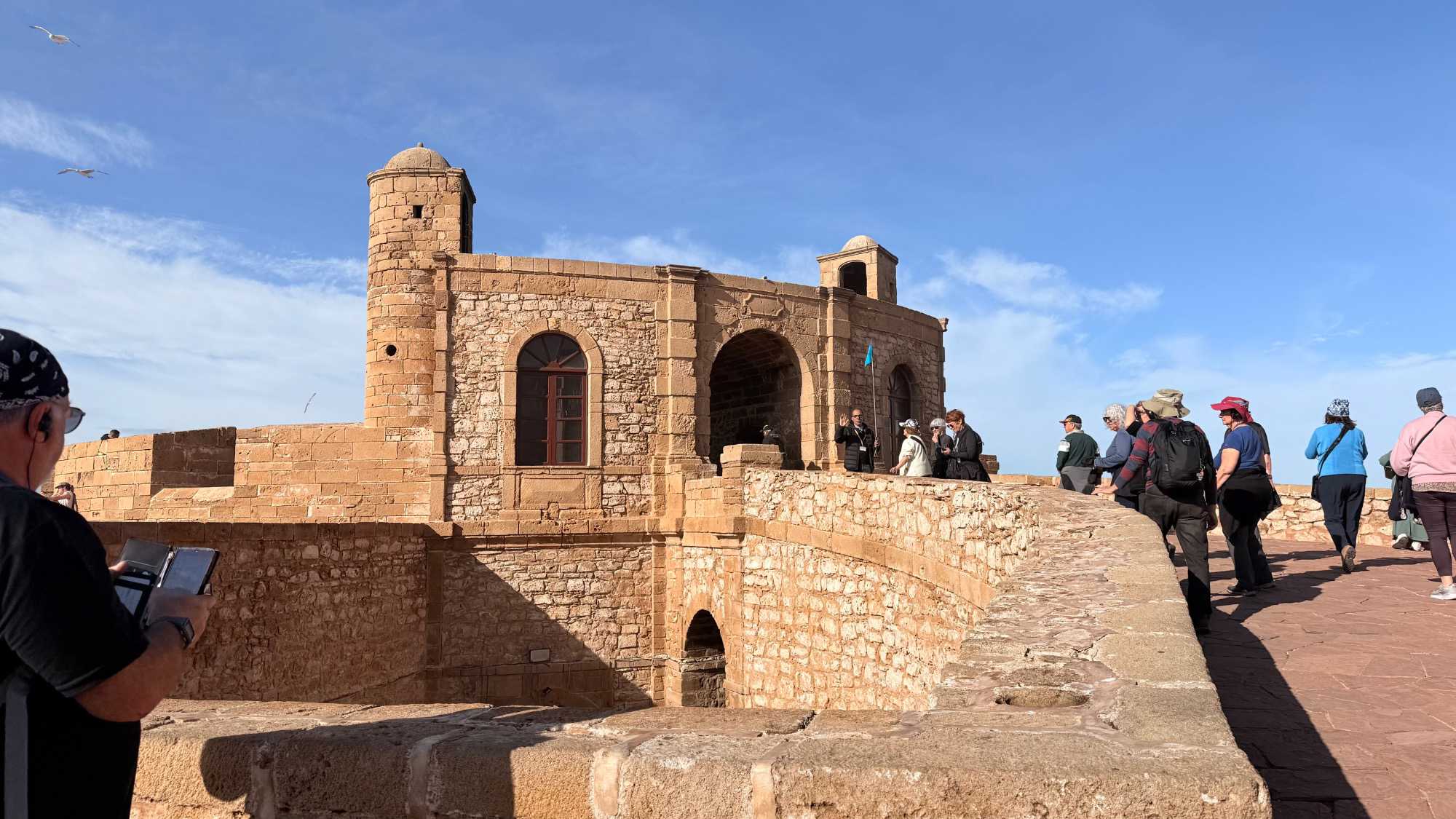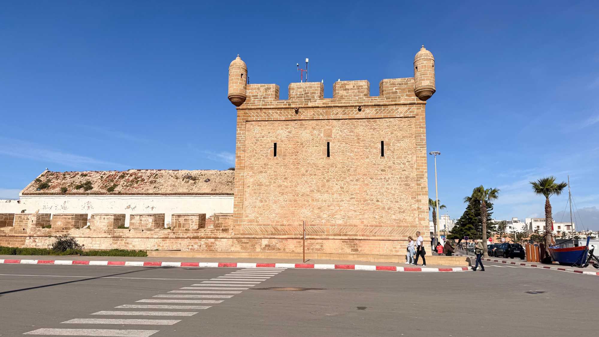Enfin, nous arrivons à Essaouira, la ville portuaire au charme unique. Ses remparts blancs et ses portes bleues nous accueillent avec douceur et élégance. Flâner dans ses ruelles, c’est se perdre dans un labyrinthe de boutiques d’artisanat, de galeries d’art et de cafés animés. Le port, avec ses bateaux colorés et ses pêcheurs rentrant de la mer, nous rappelle l’importance historique et commerciale de cette ville. Nous découvrons également la célèbre place Moulay Hassan, où la vie s’anime au rythme des musiciens, des marchands et des habitants, créant une atmosphère chaleureuse, vibrante et inoubliable.