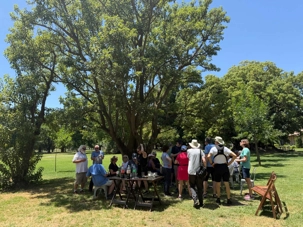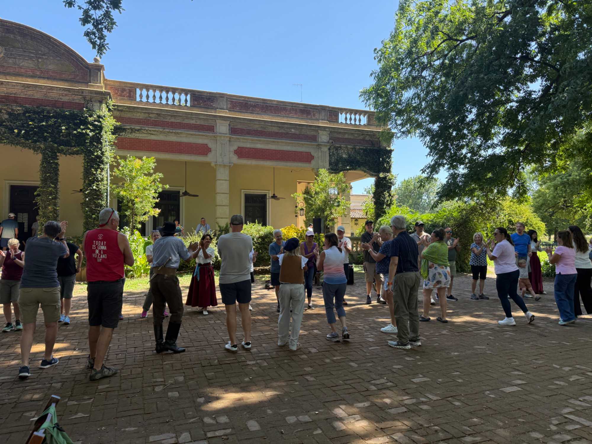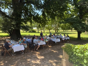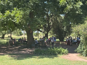 Pendant ce temps, tout le monde profite de petites attentions gourmandes : des boissons fraîches, et bien sûr des empanadas typiques, servies dans un cadre absolument charmant, dans les jardins, sous les arbres.