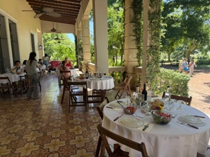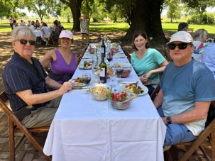 De magnifiques tables étaient dressées juste pour nous, près de la maison, à l’ombre des arbres, bercés par une petite brise… et une température franchement idéale. Une journée parfaite pour savourer chaque minute.