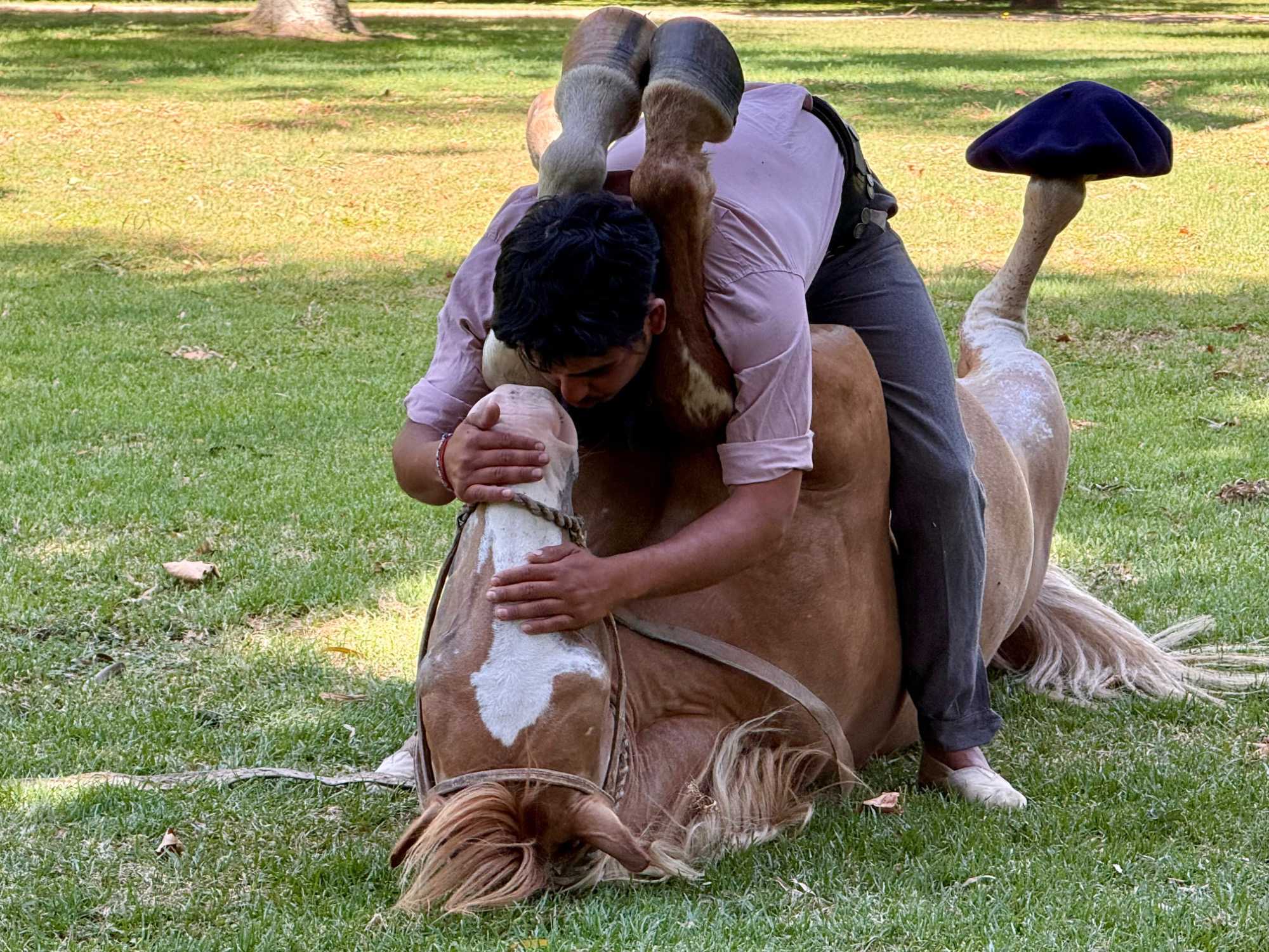 En après-midi, nous assistons aussi à une démonstration avec les chevaux, mettant en lumière le lien particulier entre les gauchos et leurs montures. On nous montre la complicité, la technique, la confiance… et cette relation presque fusionnelle entre l’homme et le cheval.