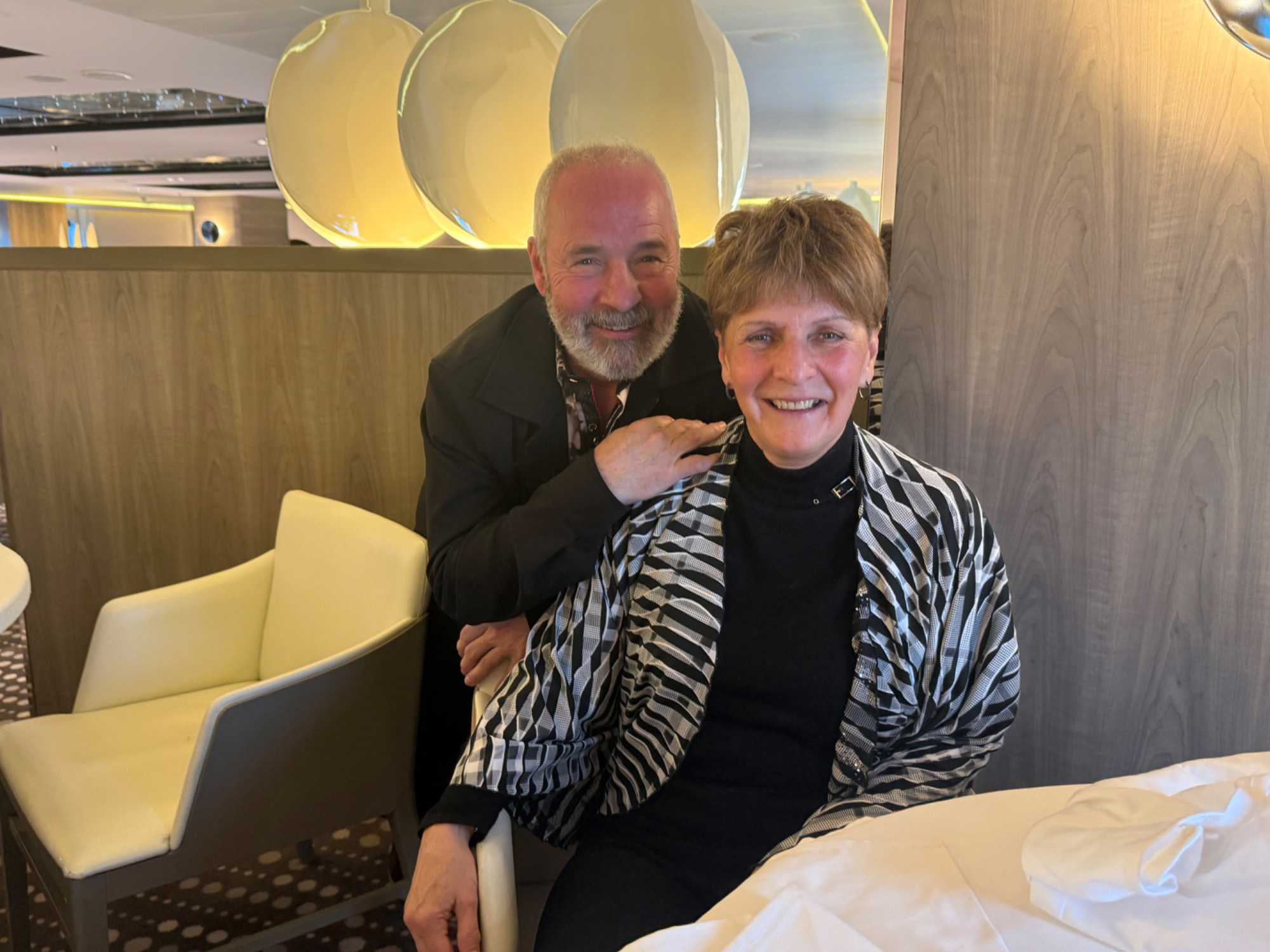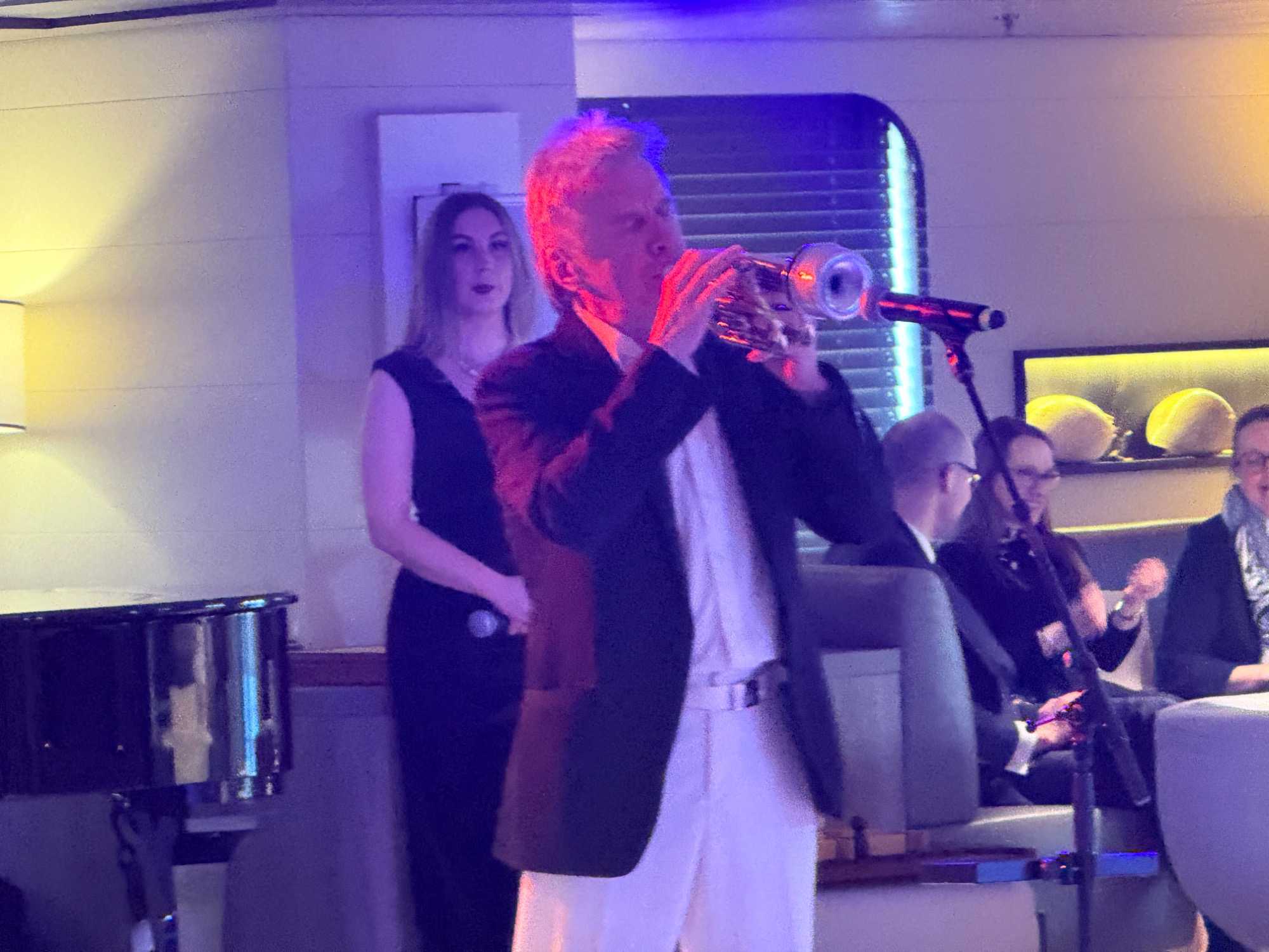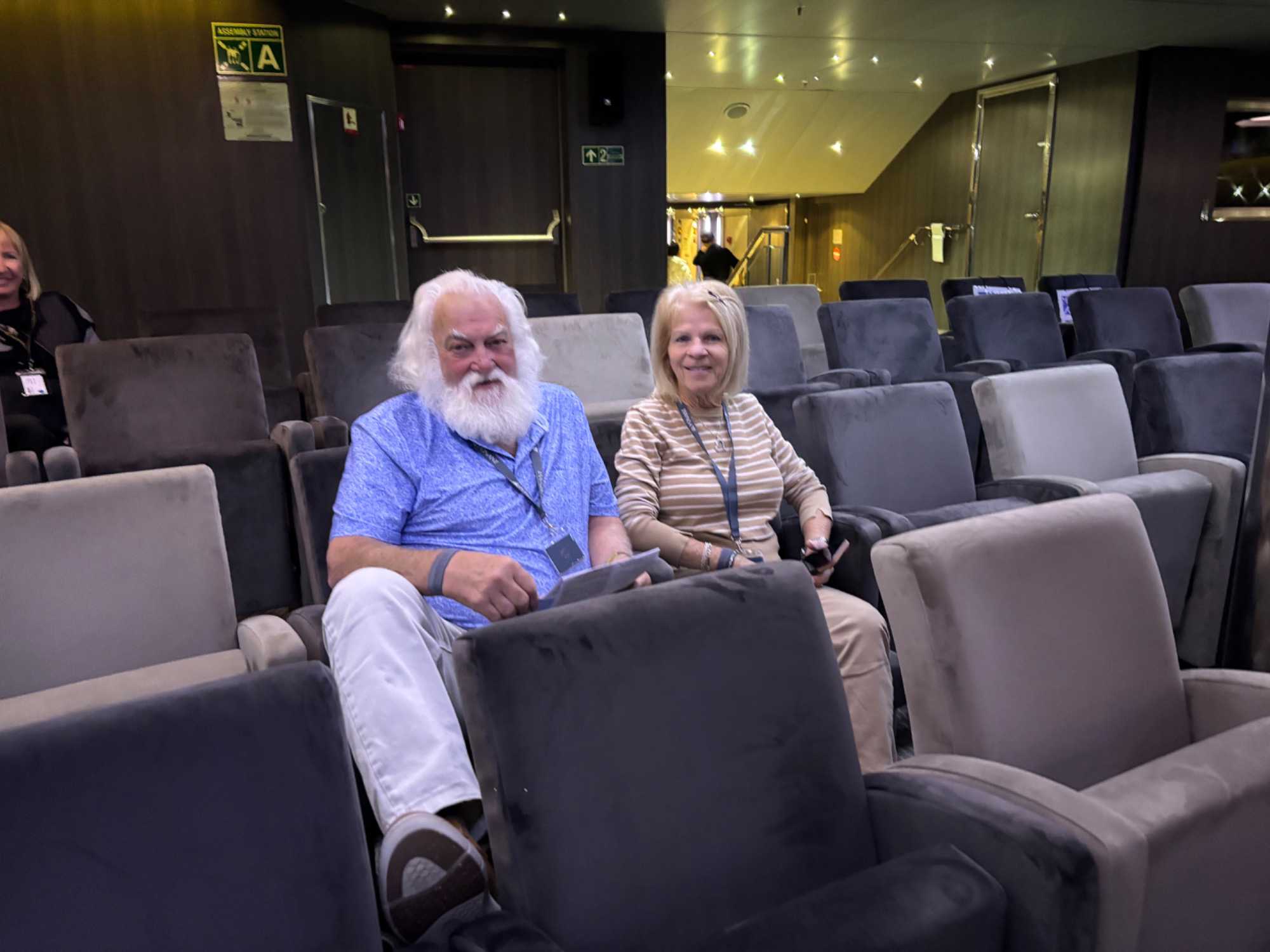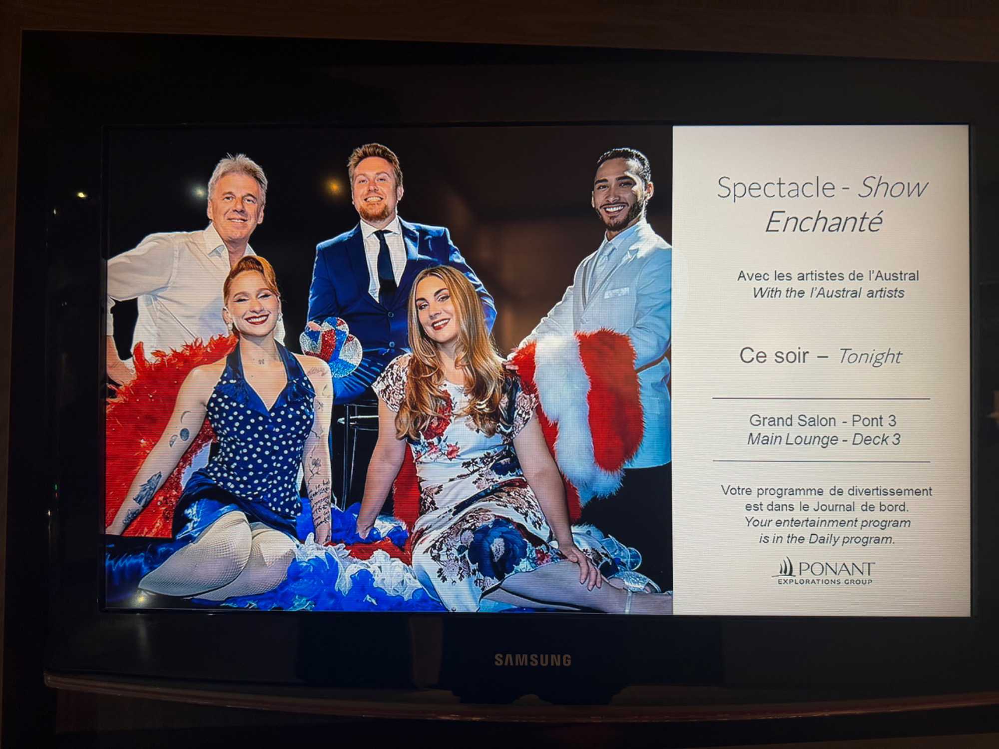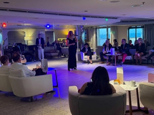 Le cocktail de bienvenue commence dans une ambiance chic et festive. Nous sommes reçus dans le grand théâtre, champagne à la main, avec une belle musique pour nous accueillir. Le commandant, les officiers supérieurs et les chefs de département sont présentés, et on sent à quel point tout est bien encadré à bord.