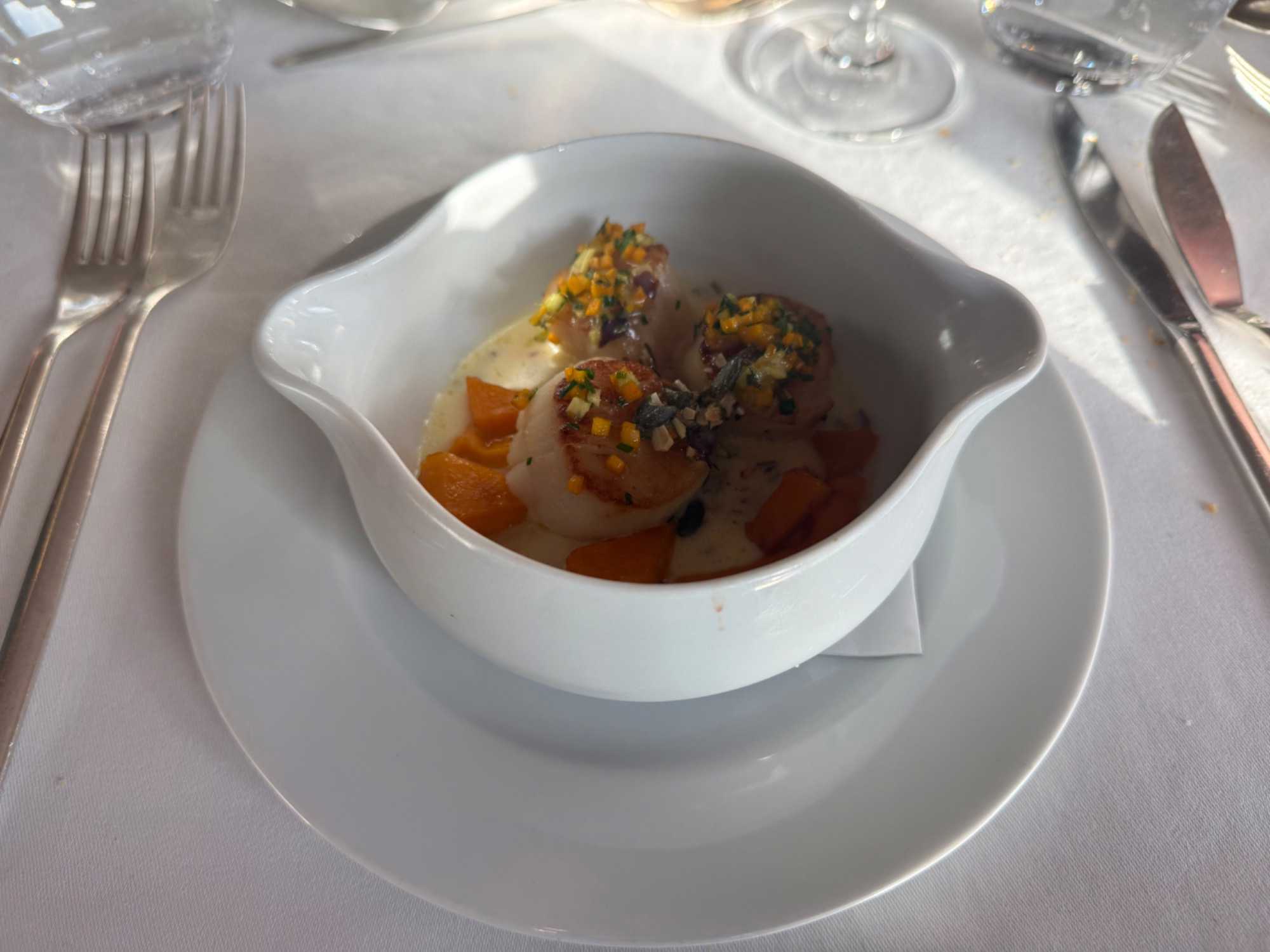 Un souper cinq services, accompagné de vin, absolument délicieux. J’ai pris des photos, parce que c’était vraiment digne d’un grand moment. Tout le monde s’entend : c’était un repas mémorable, un de ces soupers qu’on n’oublie pas.