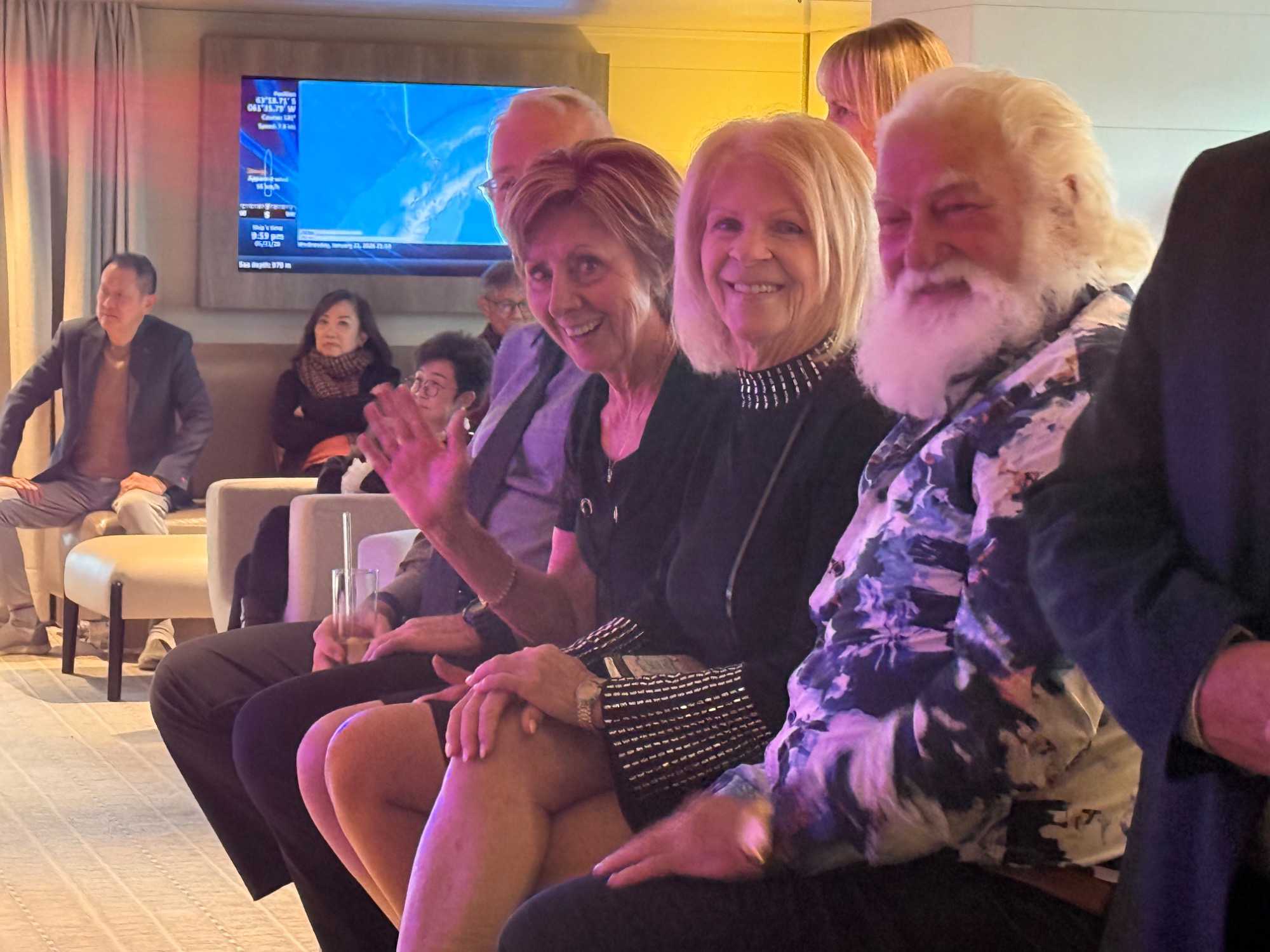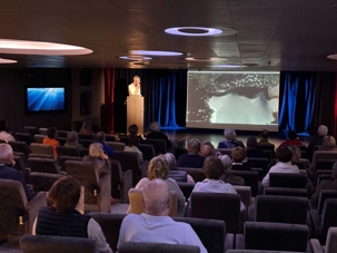 Plusieurs voyageurs ont également assisté à une conférence très appréciée donnée par Tristan, une des guides naturalistes. Son thème : « Sous la glace, la mémoire du monde ». Une conférence captivante, qui nous rappelle que la glace n’est pas seulement un paysage : c’est une histoire vivante, une mémoire précieuse de notre planète.