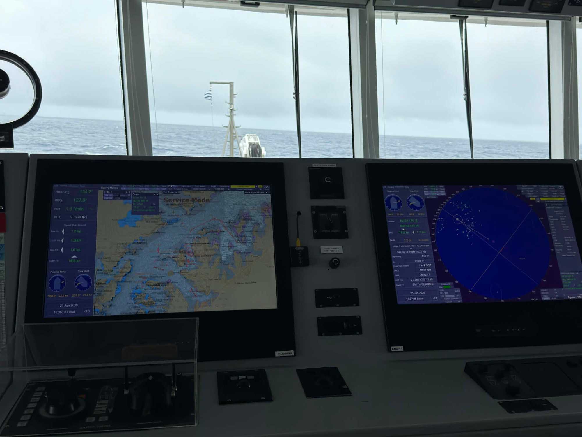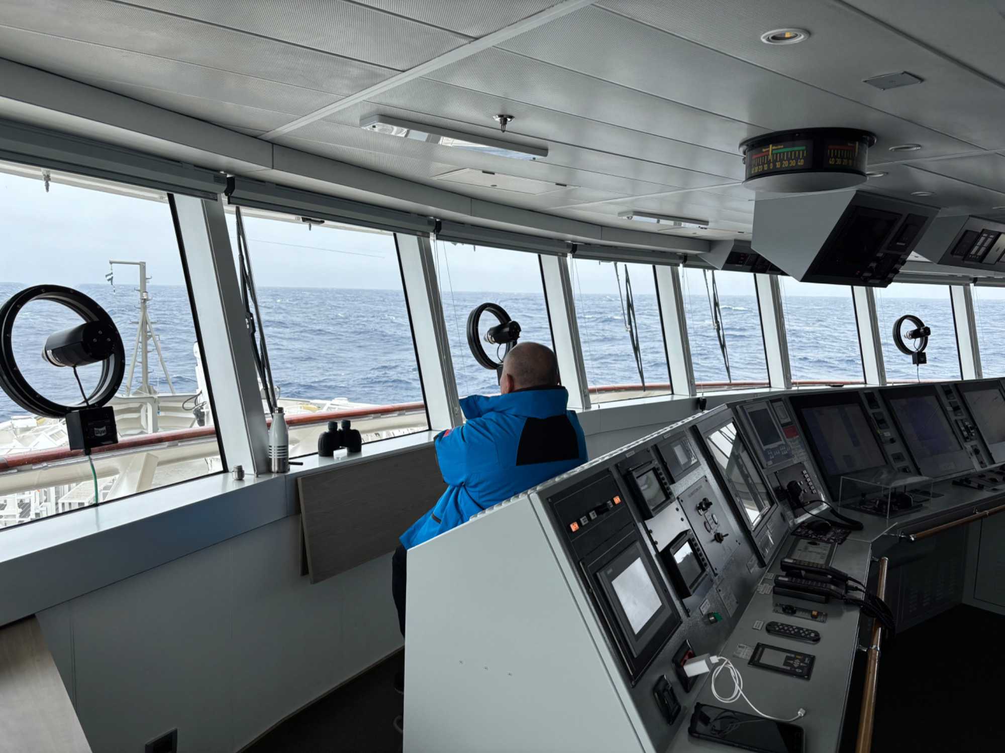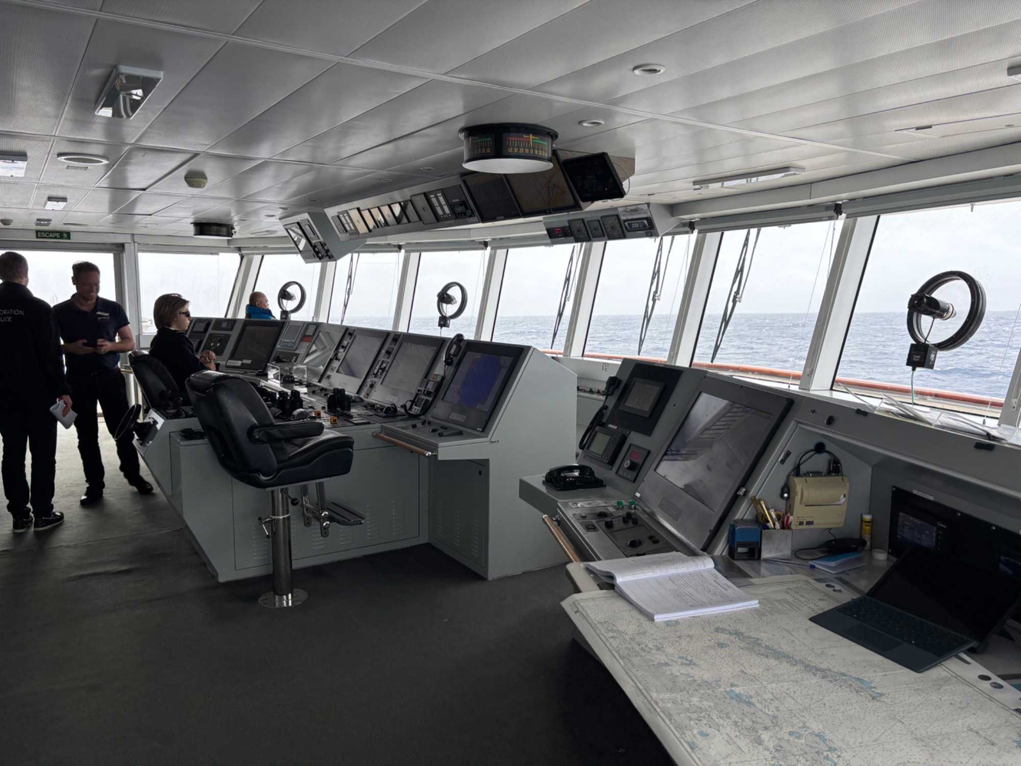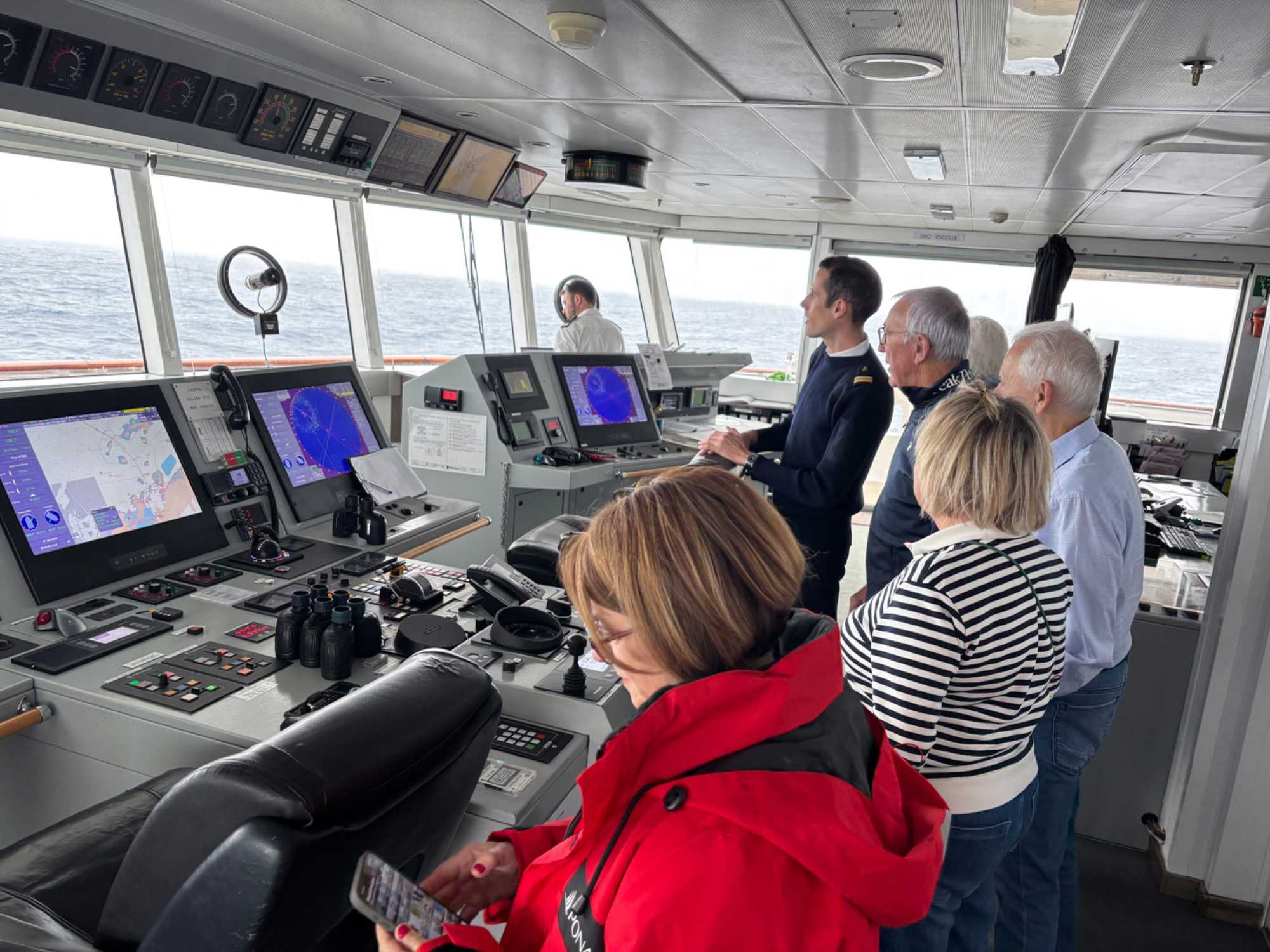 En après-midi, certains ont pris le temps de visiter la passerelle et d'échanger avec le commandant. Un moment toujours impressionnant, parce qu’on réalise encore davantage toute la précision, l’expérience et l’expertise nécessaires pour naviguer dans ces régions du monde.