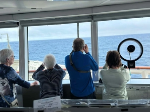 Même si les vagues étaient encore impressionnantes par moments, elles restaient fascinantes pour plusieurs voyageurs. On a vu des gens prendre des photos, filmer, admirer… et sourire! Parce qu’il faut le dire : sur L’Austral, la stabilité du bateau est absolument incroyable. Malgré le Drake, malgré les vagues, tout se vit finalement très bien… et même avec plaisir pour ceux qui aiment sentir qu’ils sont en expédition.