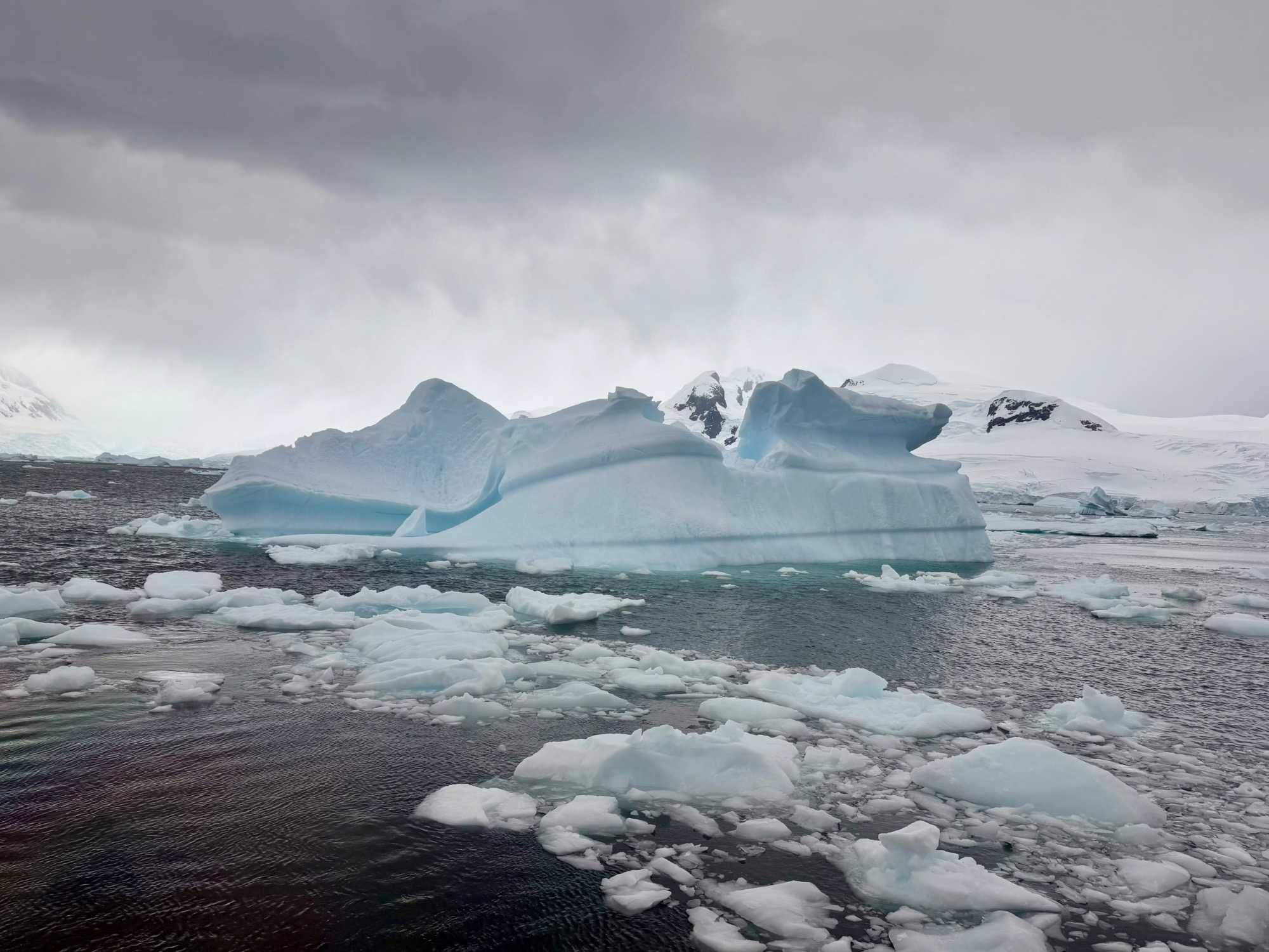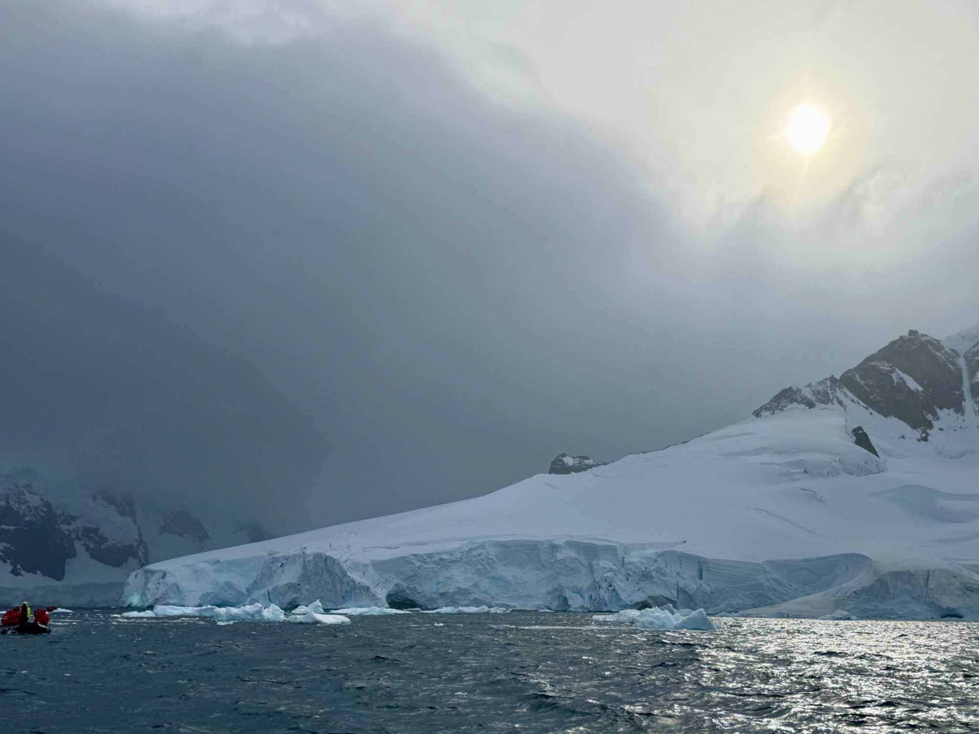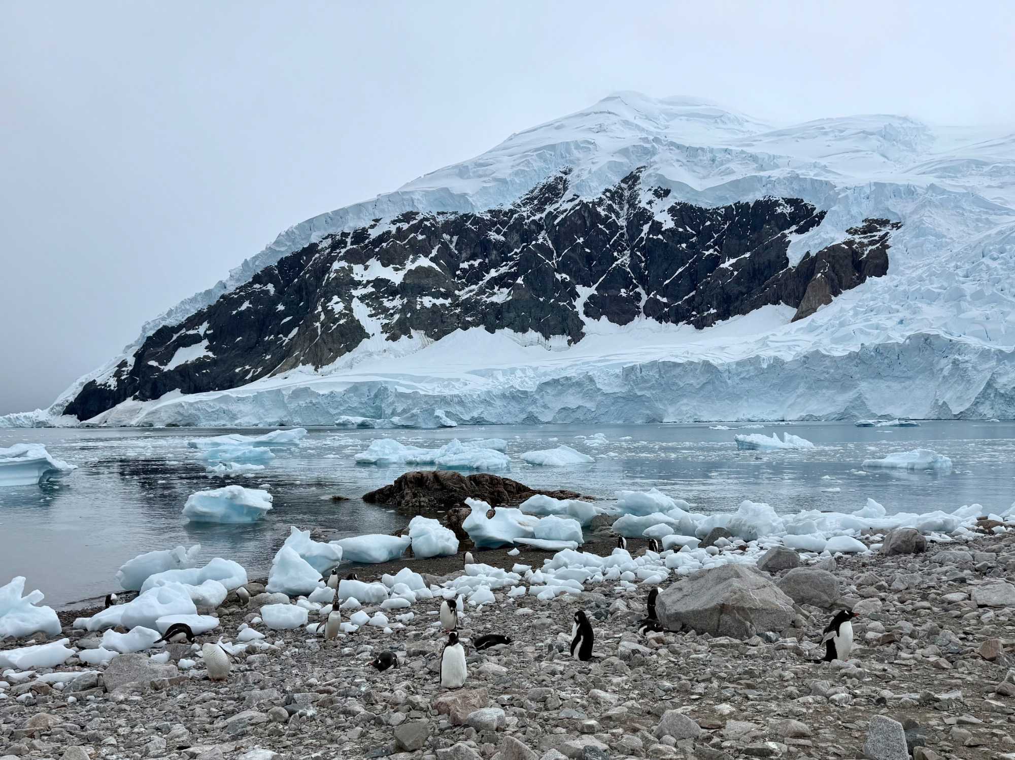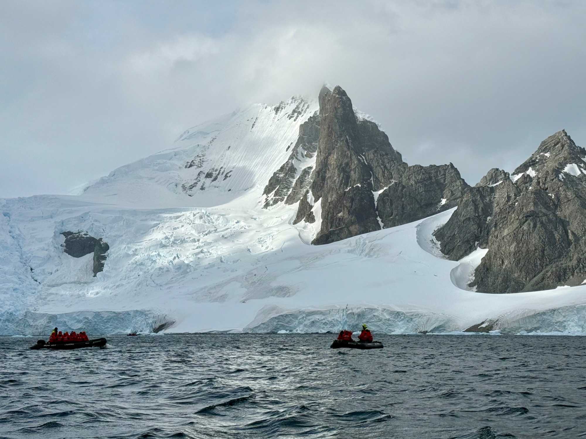 Aujourd’hui, le temps est plus couvert — et c’est ça aussi, l’Antarctique : un mélange de lumière, de nuages, de percées de soleil… une ambiance changeante qui rend les paysages encore plus dramatiques et mystérieux.