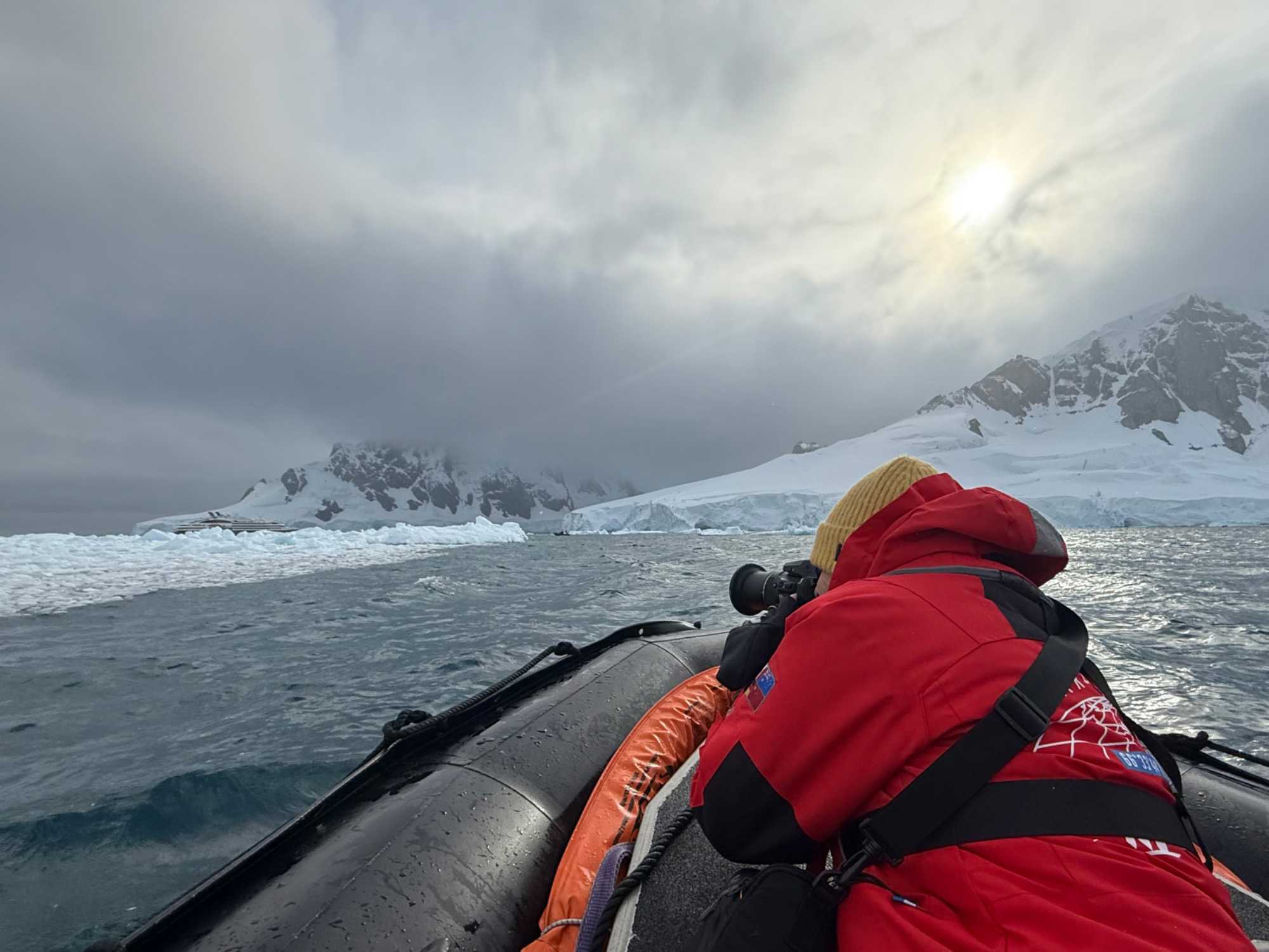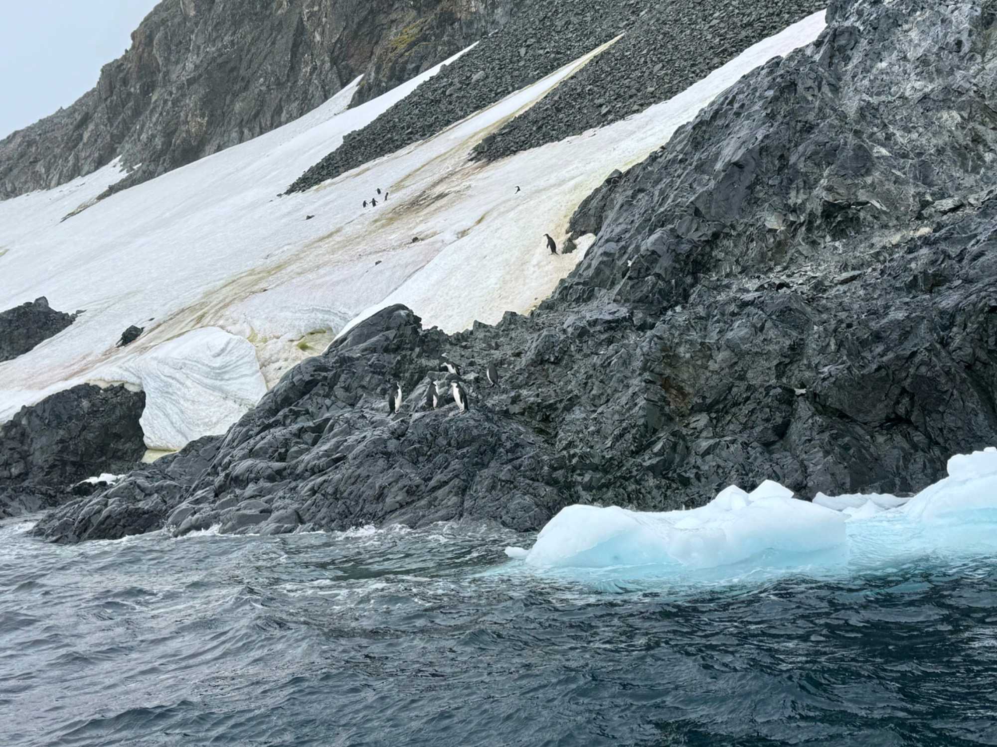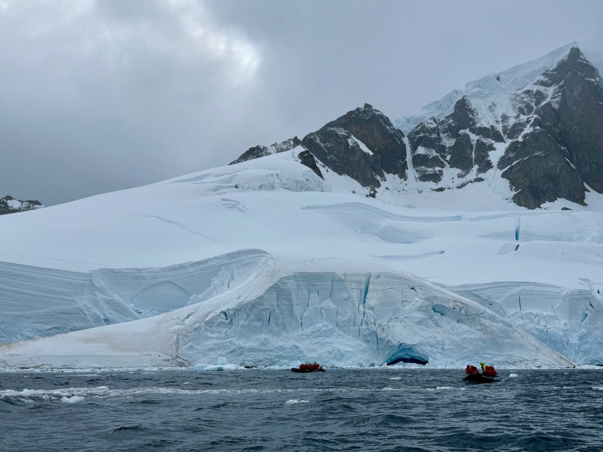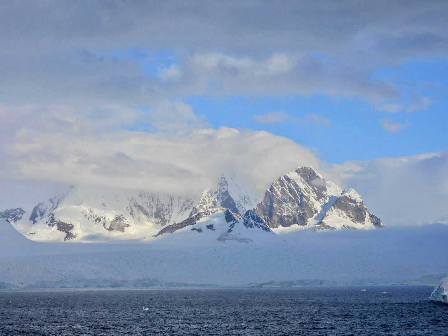 Aujourd’hui, le temps est plus couvert — et c’est ça aussi, l’Antarctique : un mélange de lumière, de nuages, de percées de soleil… une ambiance changeante qui rend les paysages encore plus dramatiques et mystérieux.
