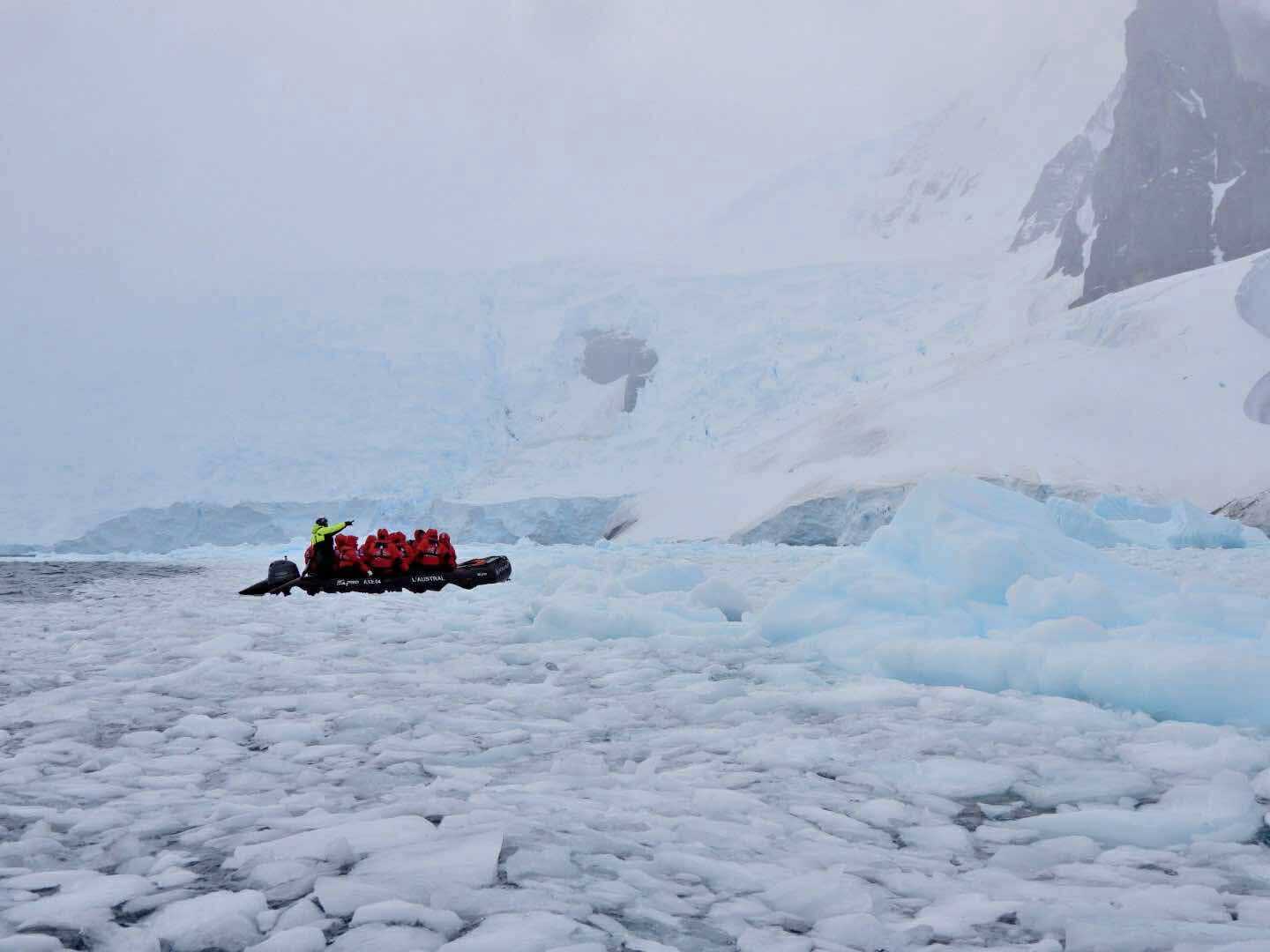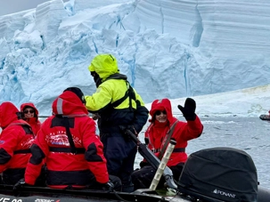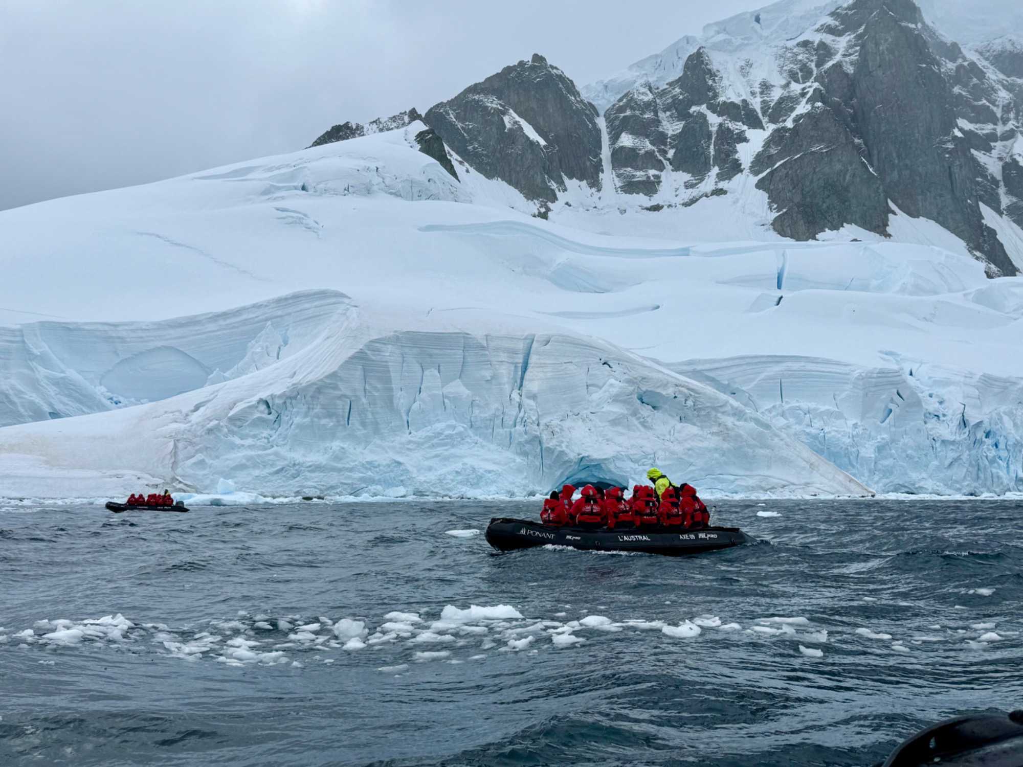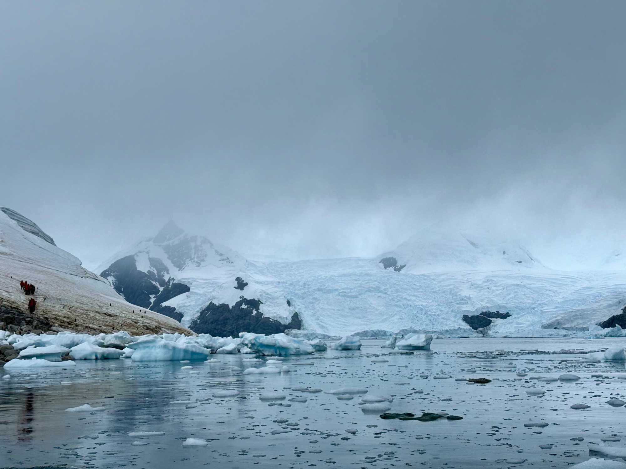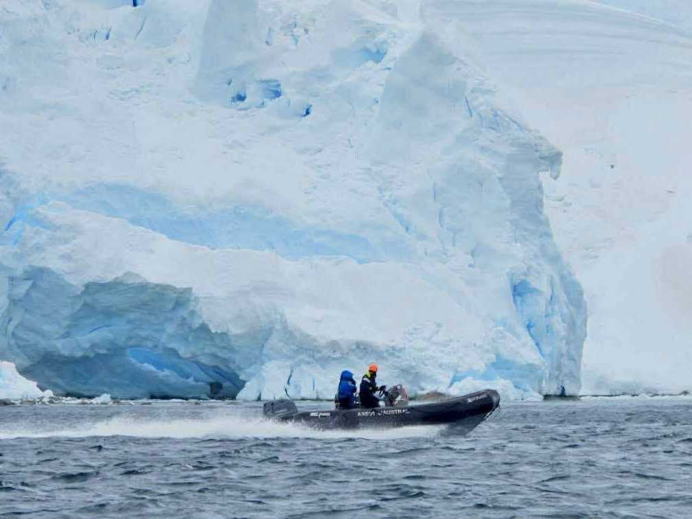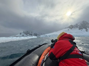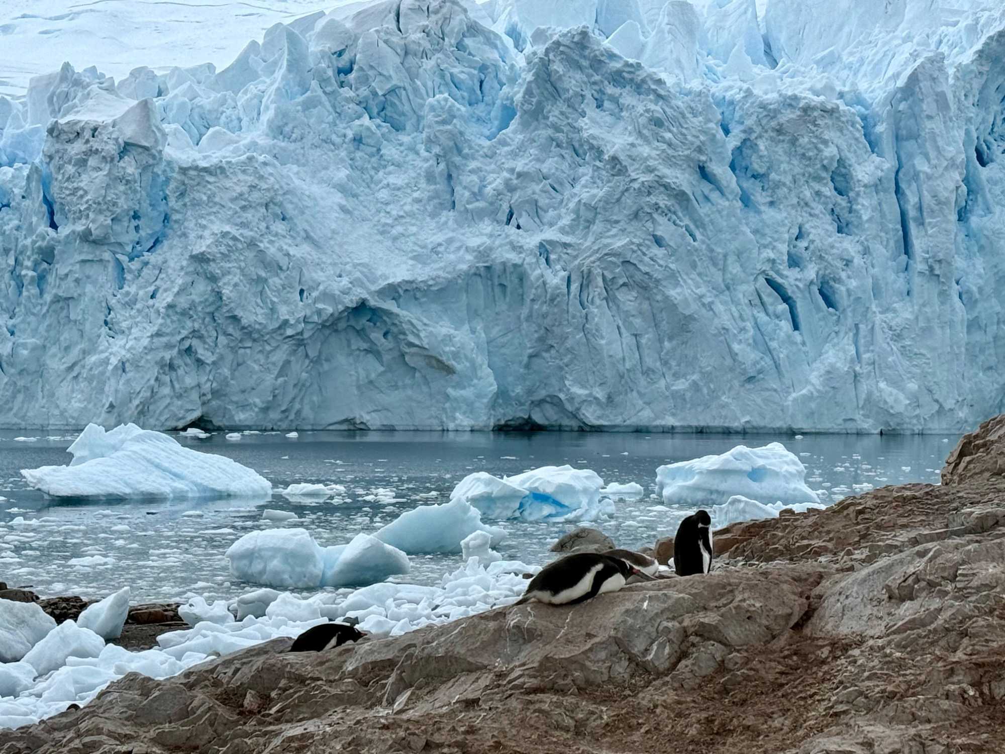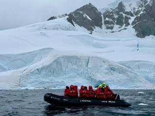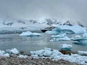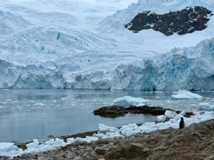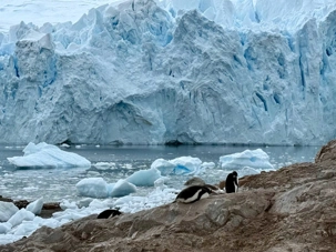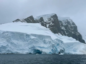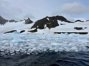 Tout au long du trajet, on voit apparaître des glaciers de plus en plus proches, des pointes de glace qui plongent dans la mer, des icebergs immobiles comme des sculptures… et une baie qui semble se refermer doucement pour nous accueillir. C’est comme si l’Antarctique nous ouvrait une porte vers un autre monde.