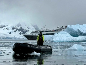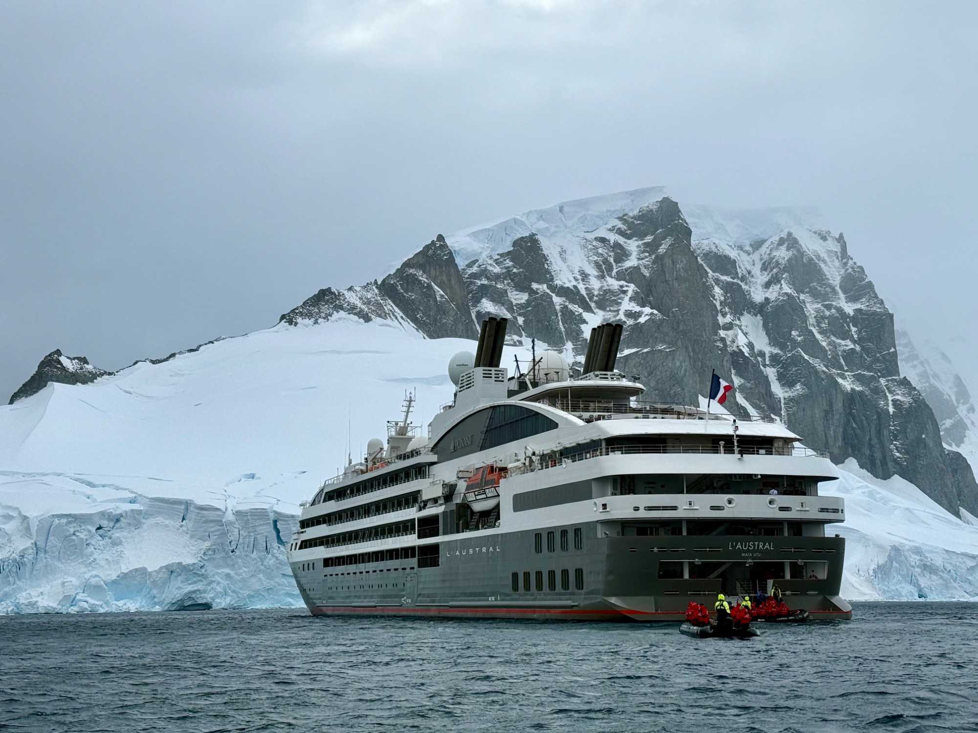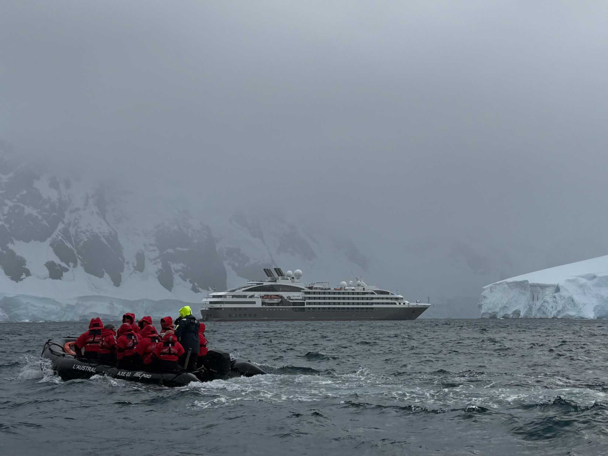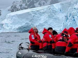 Même l’approche est spectaculaire : c’est à bord de L’Austral que nous avons glissé jusqu’à Neko Harbor, au cœur d’un décor grandiose fait de glaciers, de montagnes enneigées et de bleus profonds impossibles à décrire.