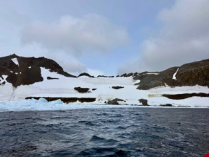Nous avons donc fait une navigation en zodiac, et honnêtement, c’était spectaculaire. Pendant environ 1 h 15, nous avons sillonné la baie. Le navire restait tout près, comme un point de repère rassurant au milieu de ce décor immense, et nous, en zodiac, nous pouvions nous glisser dans les zones où le bateau ne peut pas aller : près des glaces, des falaises, des petits recoins de la baie.