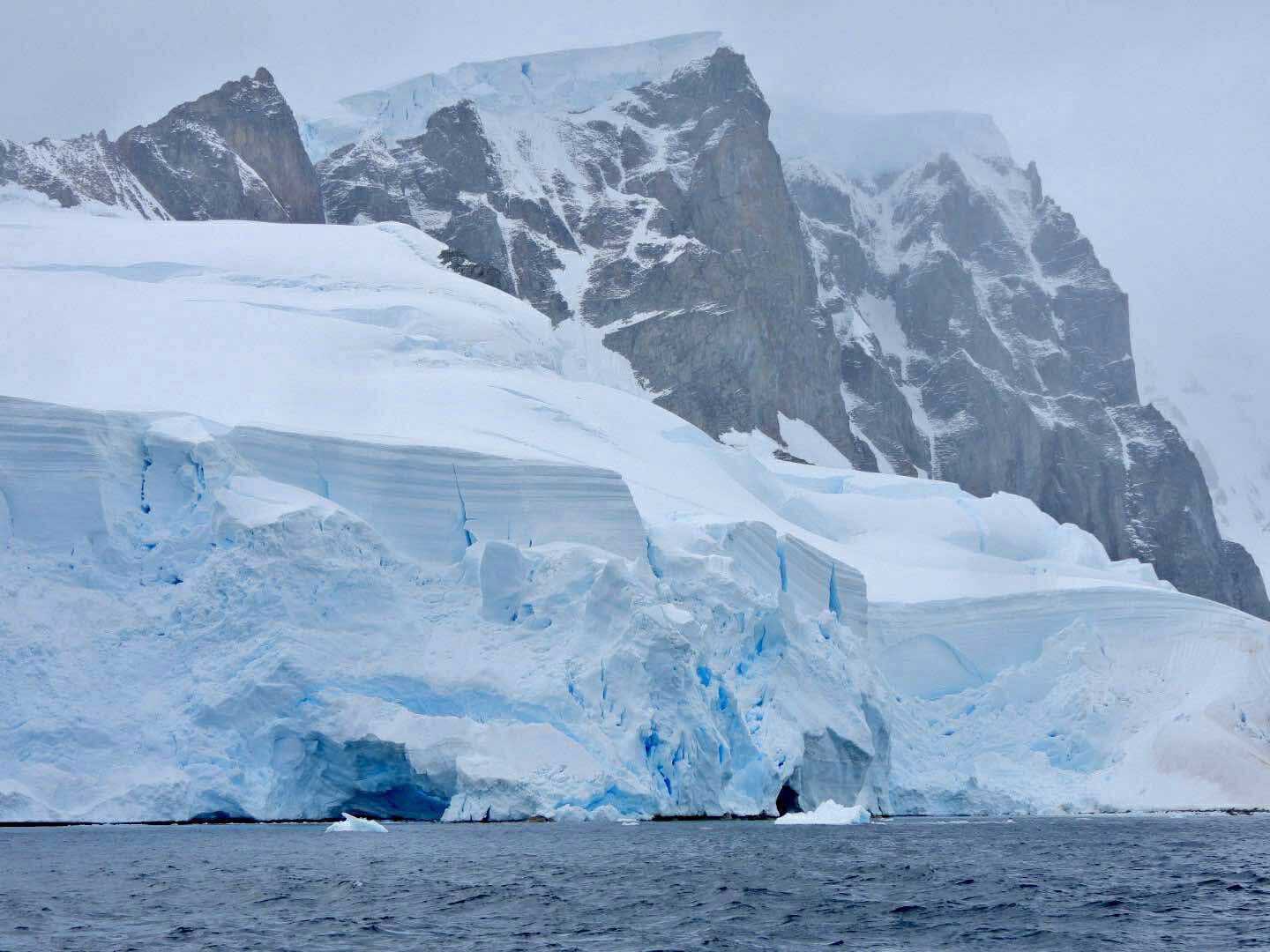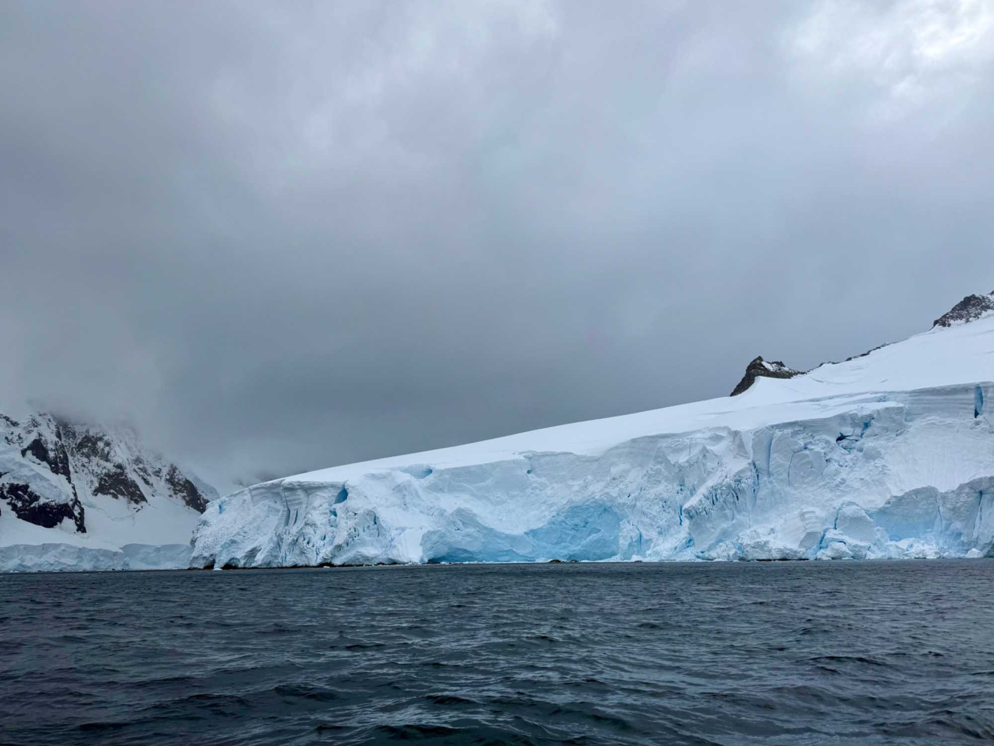 des falaises de glace, des glaciers suspendus, des montagnes immenses… et toujours cette mer froide et sombre qui contraste avec la blancheur absolue autour.