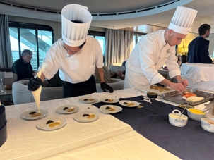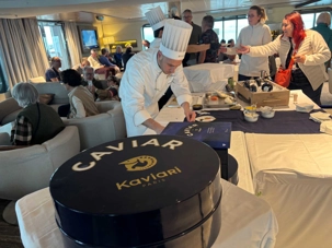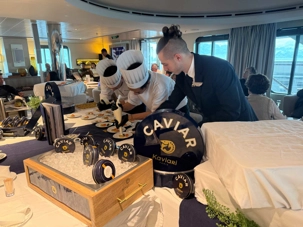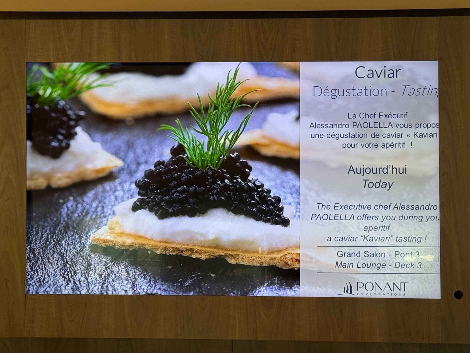 Caviari, c’est une entreprise française avec une vraie réputation, une maison familiale qui sélectionne des caviars de grande qualité. Et Ponant est très honoré de pouvoir offrir cette expérience à ses passagers.