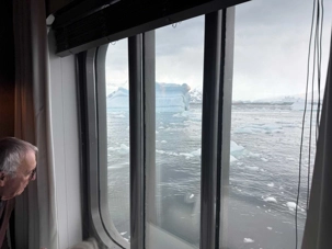 Aujourd’hui, la baie était entourée de débris de glace et de morceaux provenant du vêlage des glaces, ce qui rendait le passage trop difficile — et surtout pas sécuritaire — pour permettre aux zodiacs d’atteindre un point de débarquement.