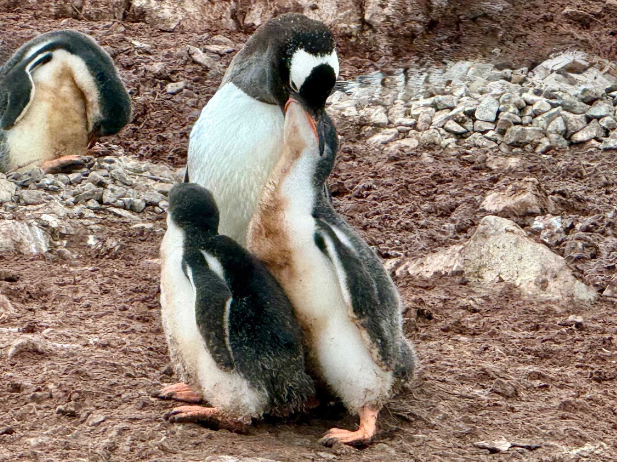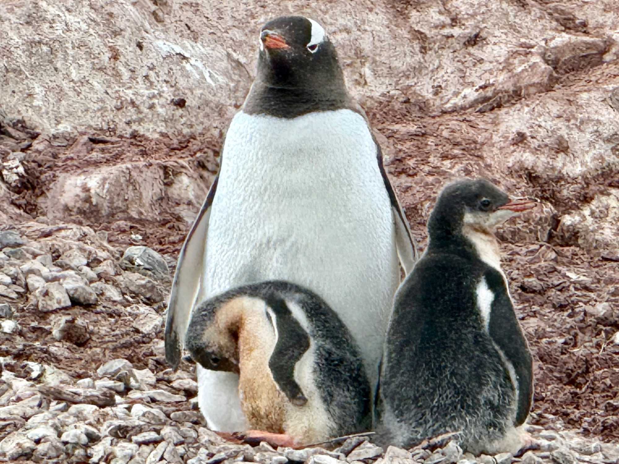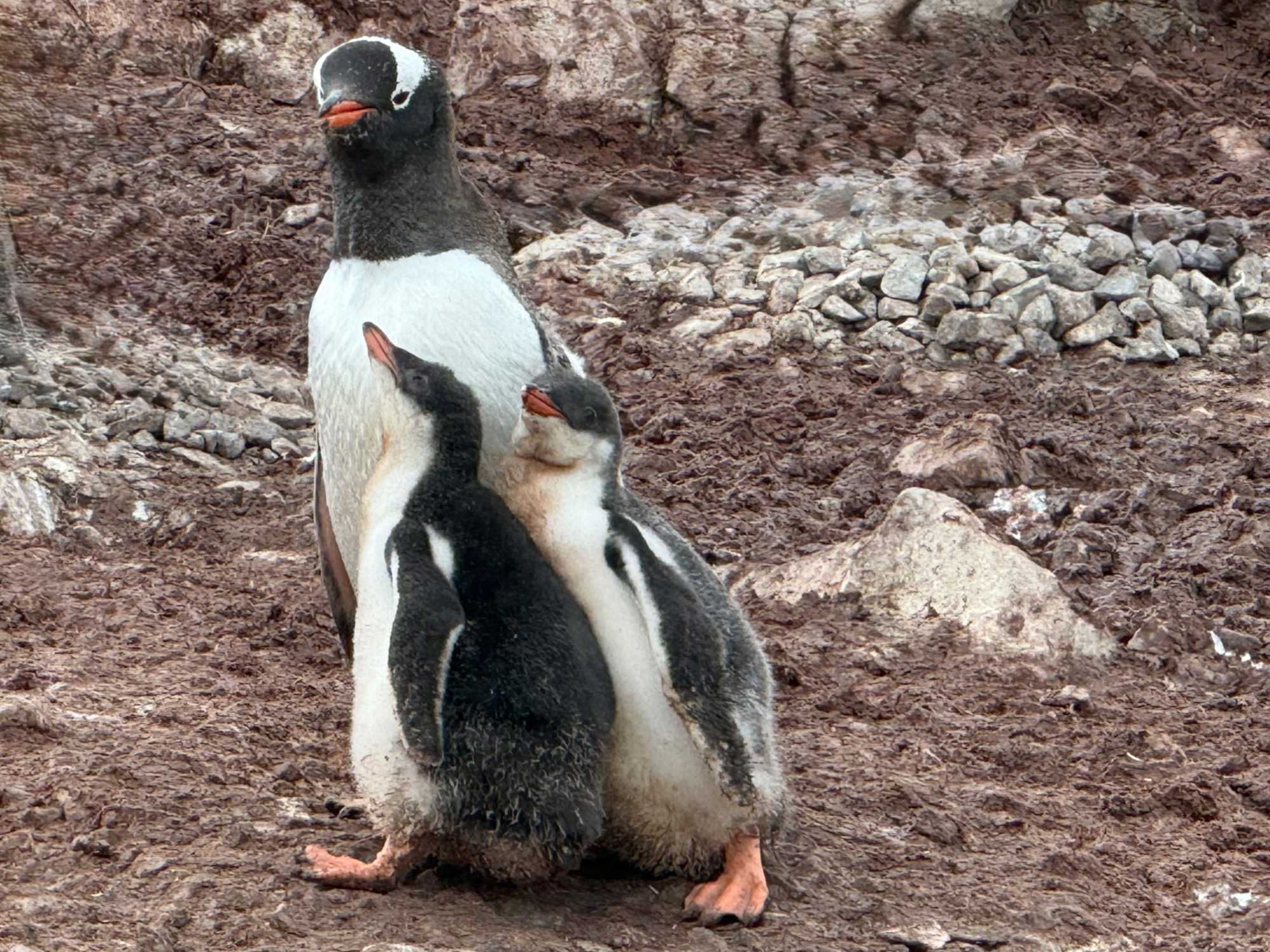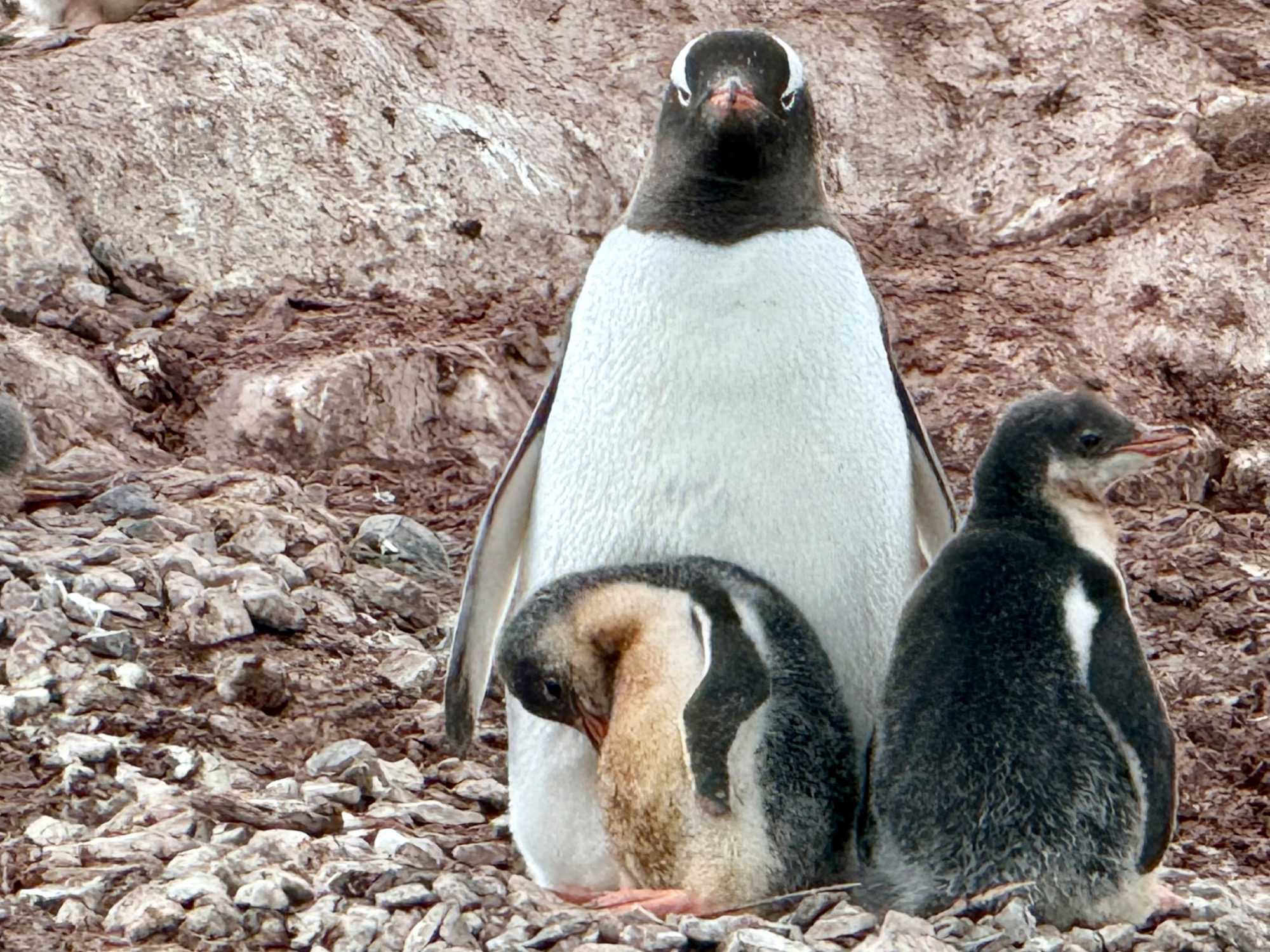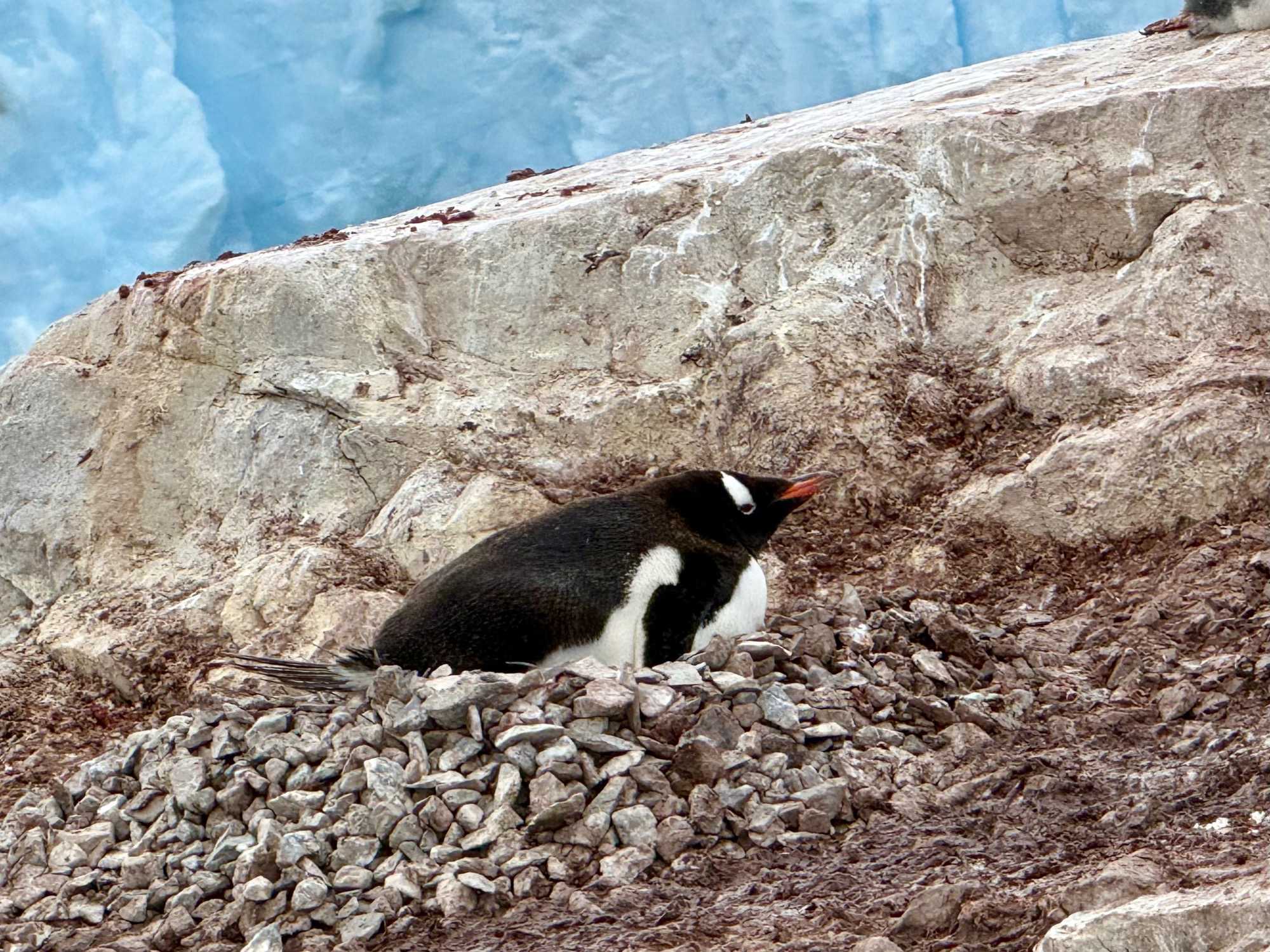 - Un nid fait de cailloux : ici, un caillou, c’est précieux! Et parfois, un manchot “emprunte” celui du voisin… ce qui déclenche aussitôt une réaction très expressive!
