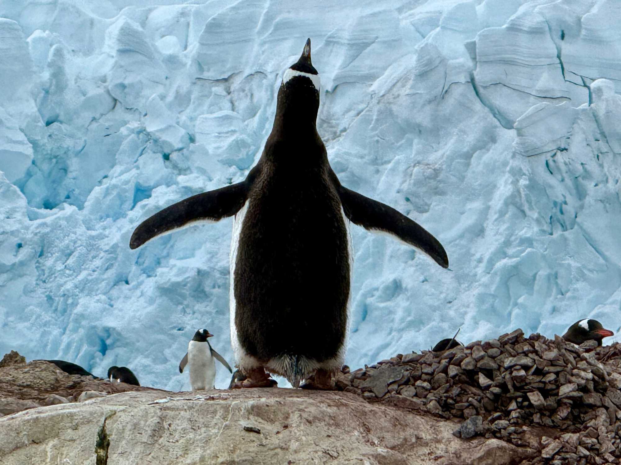 À Neko Harbor, nous retrouvons les adorables manchots papous. On les appelle parfois “petits”, mais ils sont quand même bien costauds! Et surtout… ils ont une personnalité absolument irrésistible.