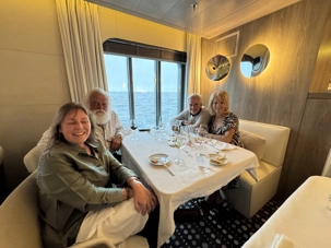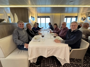 Nous sommes revenus à bord, et comme toujours, un accueil chaleureux nous attendait. Direction le grand salon, pour un bon bouillon (aujourd’hui, bouillon de poulet!) et de beaux échanges entre voyageurs. Puis un excellent repas du midi, tous ensemble, dans cette ambiance de groupe qui devient de plus en plus belle jour après jour.