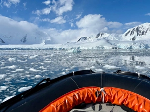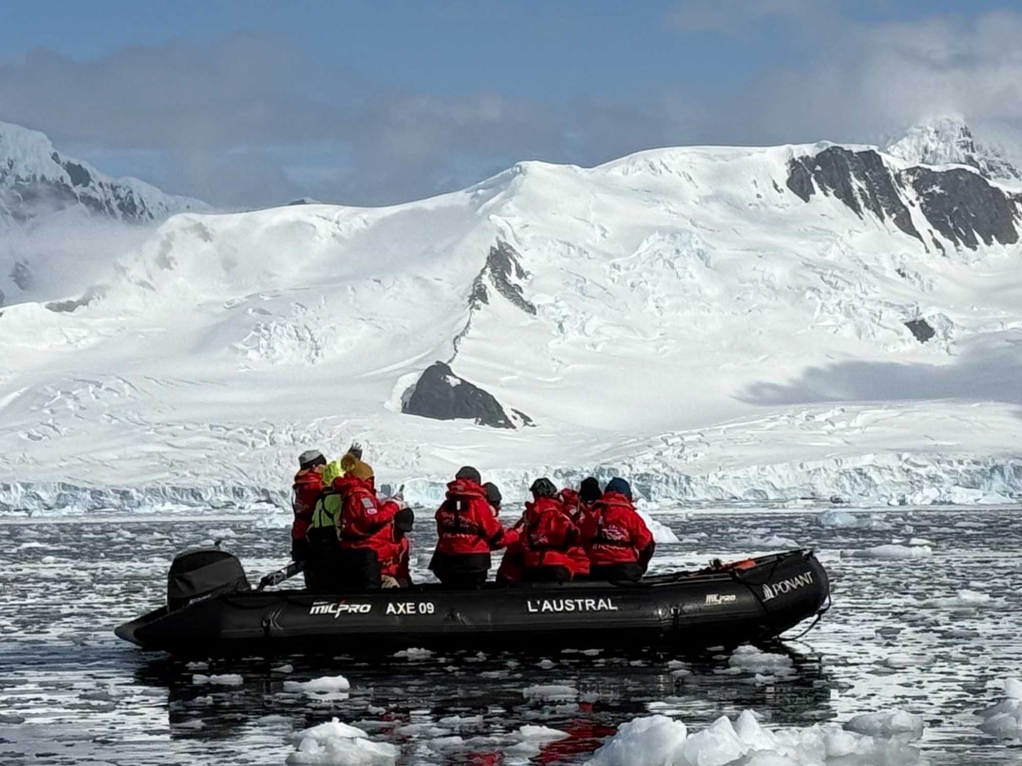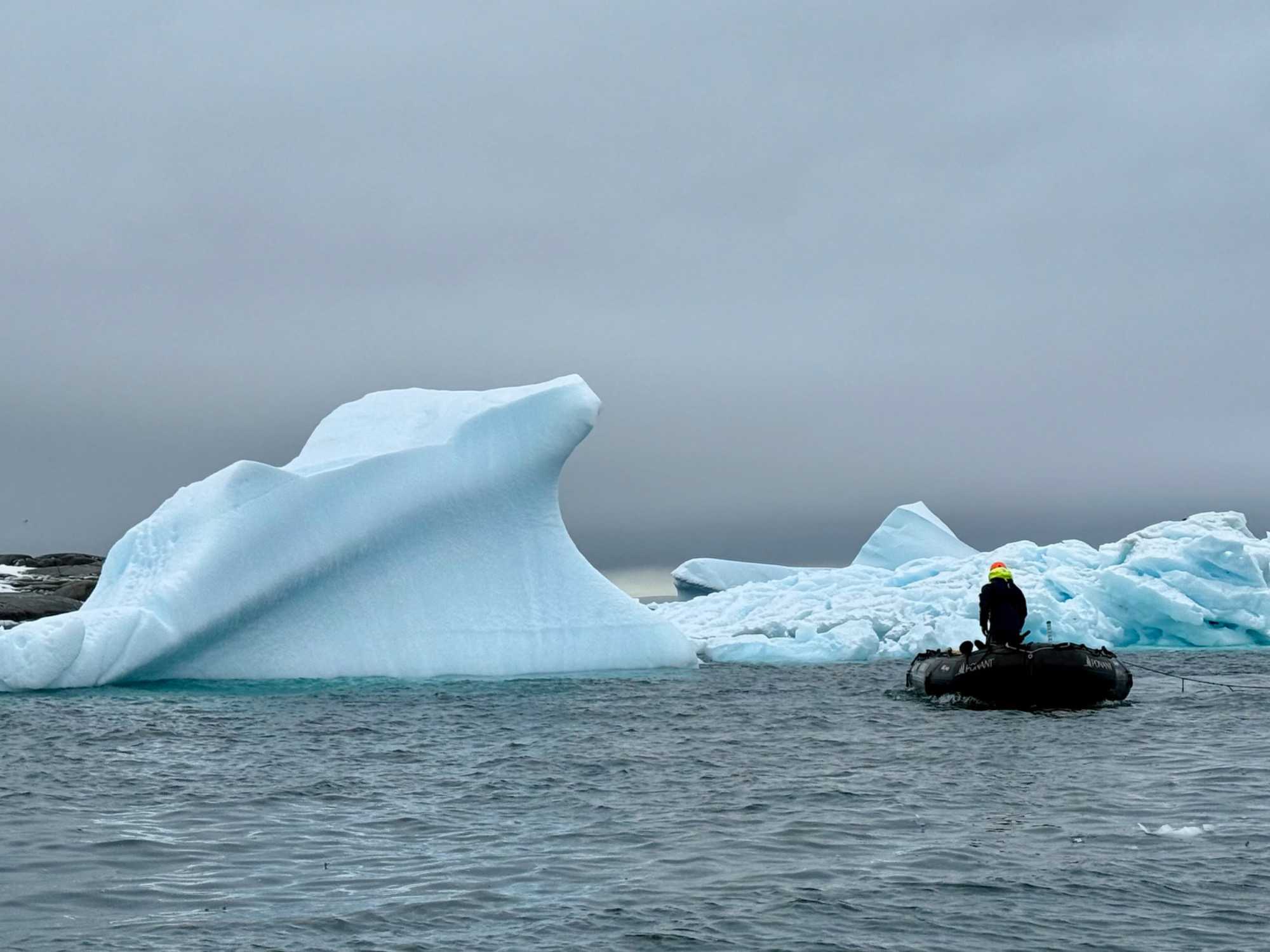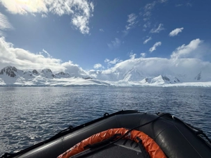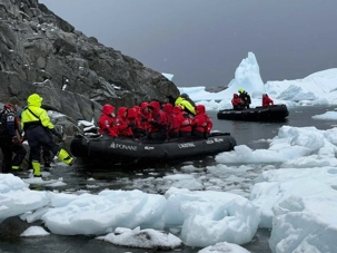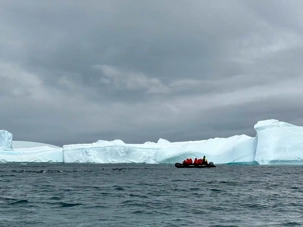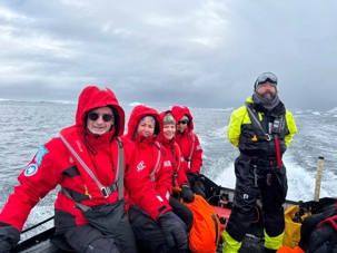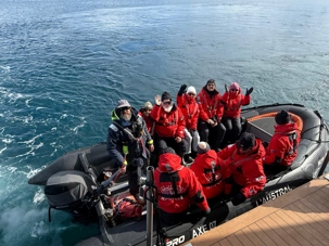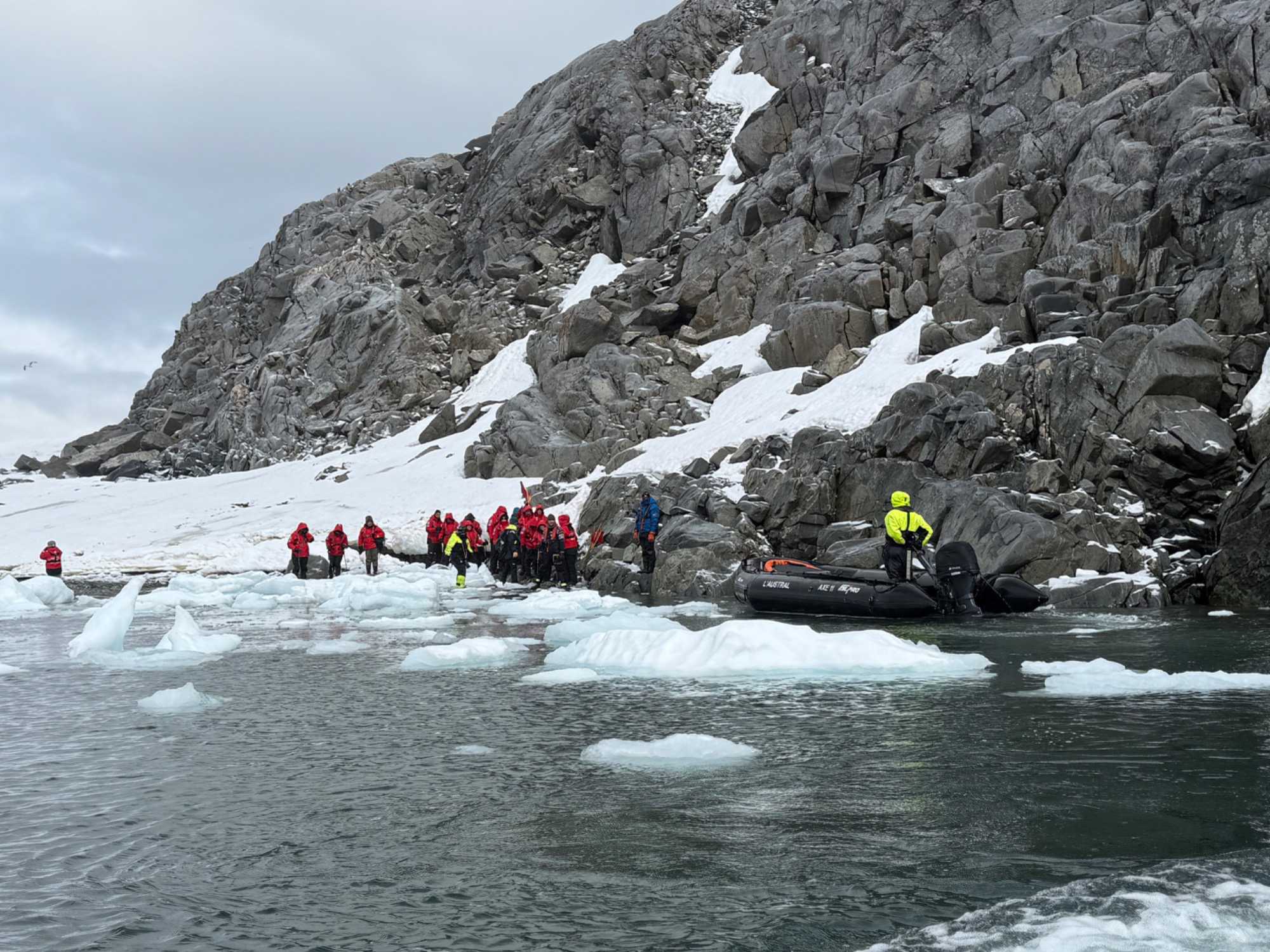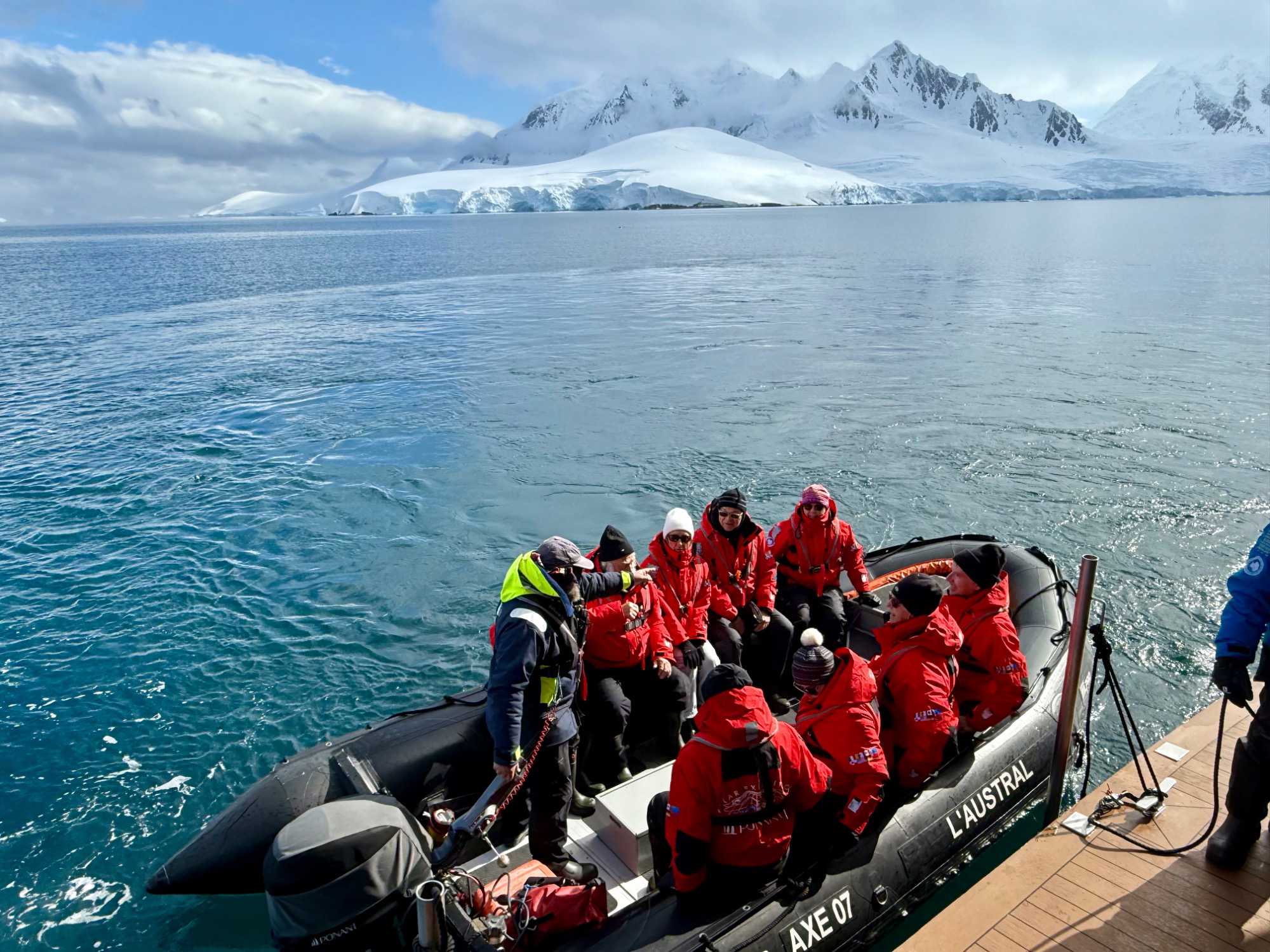 Nous embarquons dans les zodiacs, accompagnés de nos naturalistes francophones, direction le débarquement à Port Charcot. Mais à peine montés à bord, notre guide nous annonce :