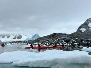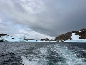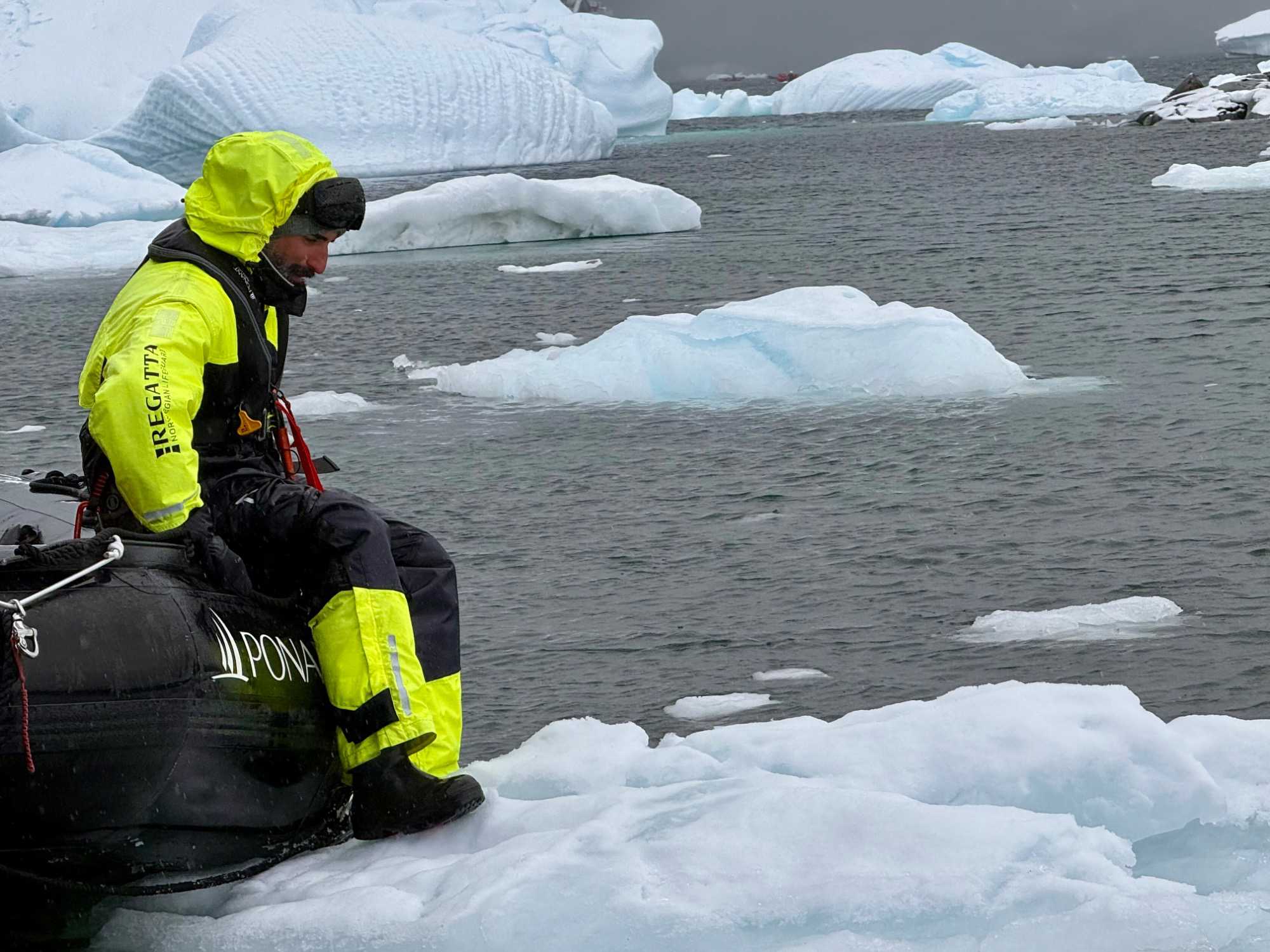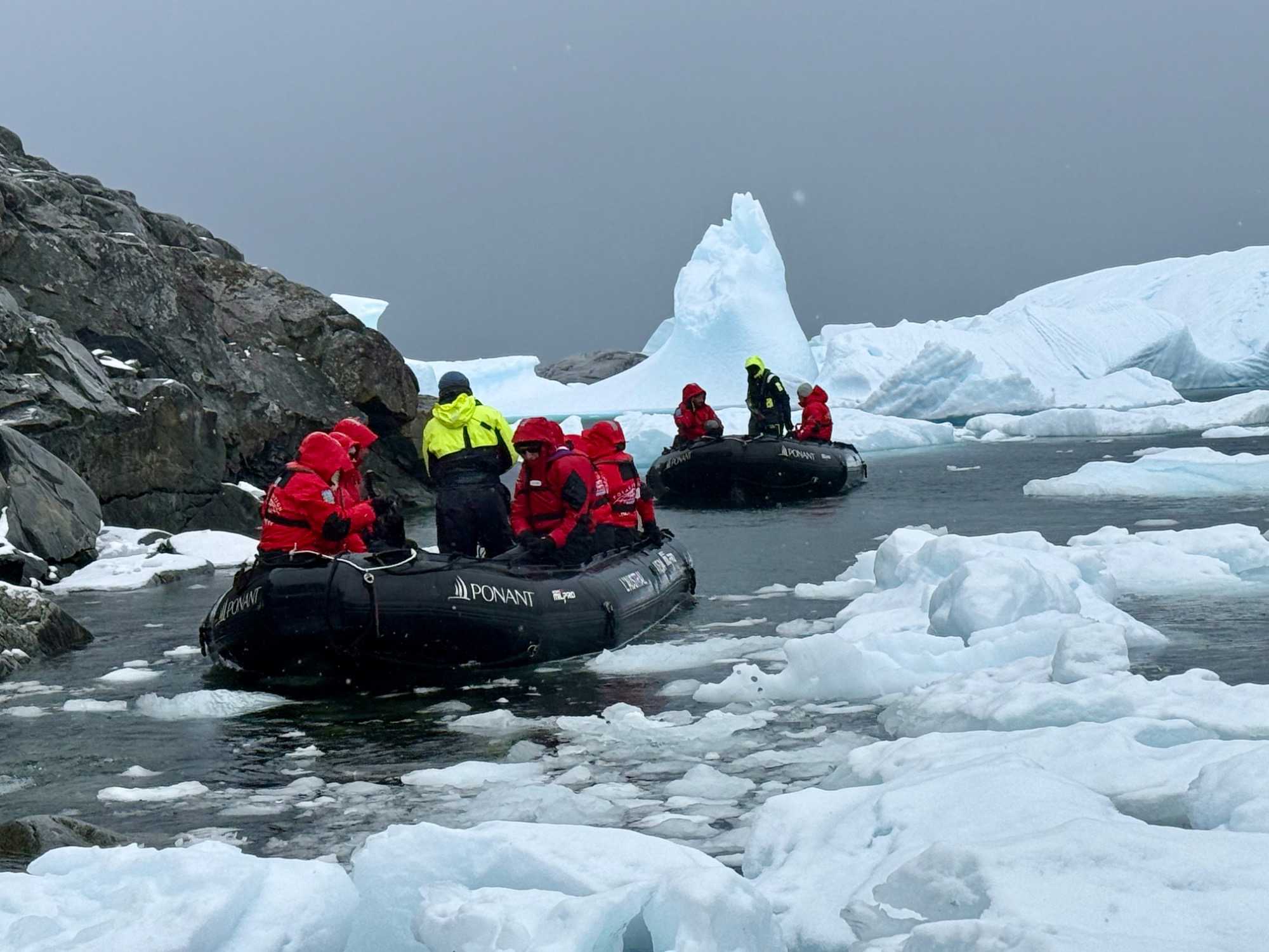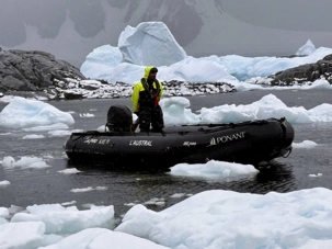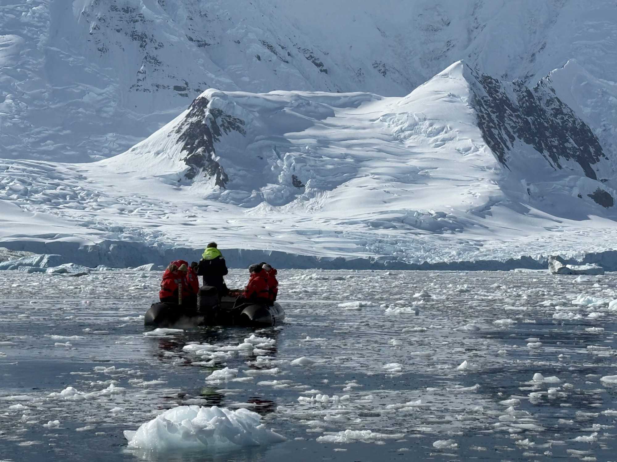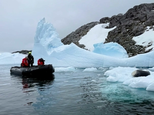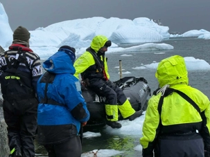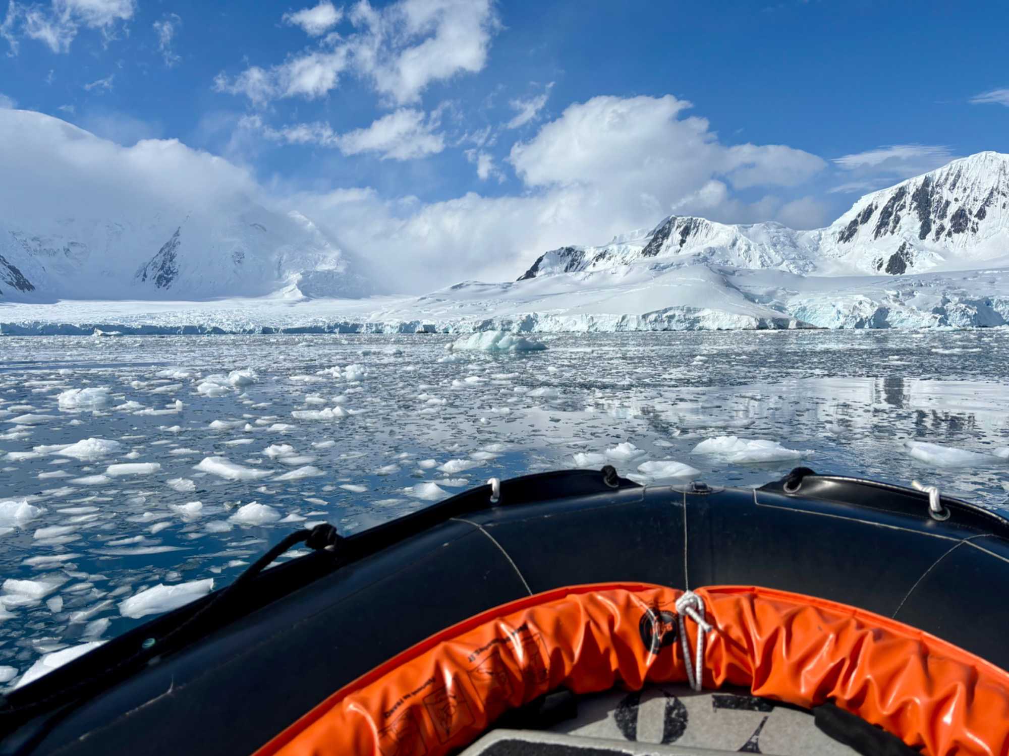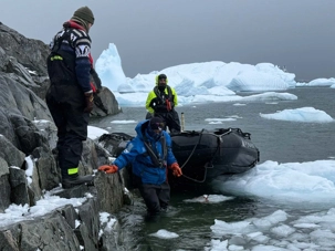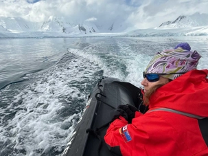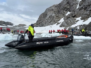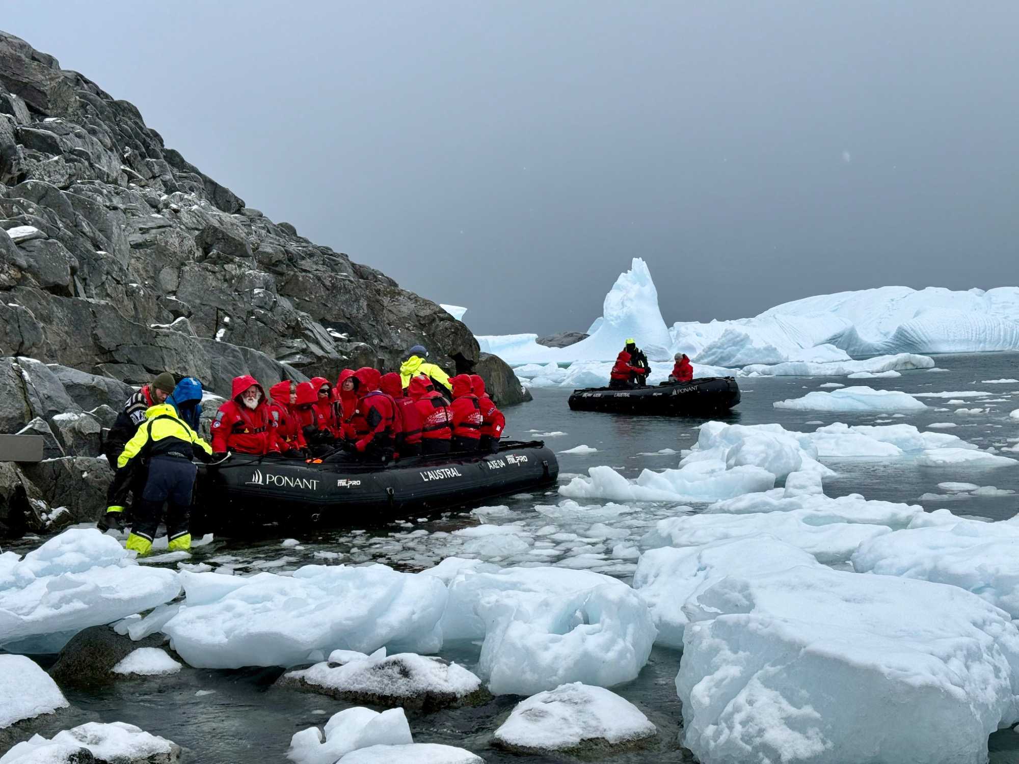 Nous embarquons dans les zodiacs, accompagnés de nos naturalistes francophones, direction le débarquement à Port Charcot. Mais à peine montés à bord, notre guide nous annonce :