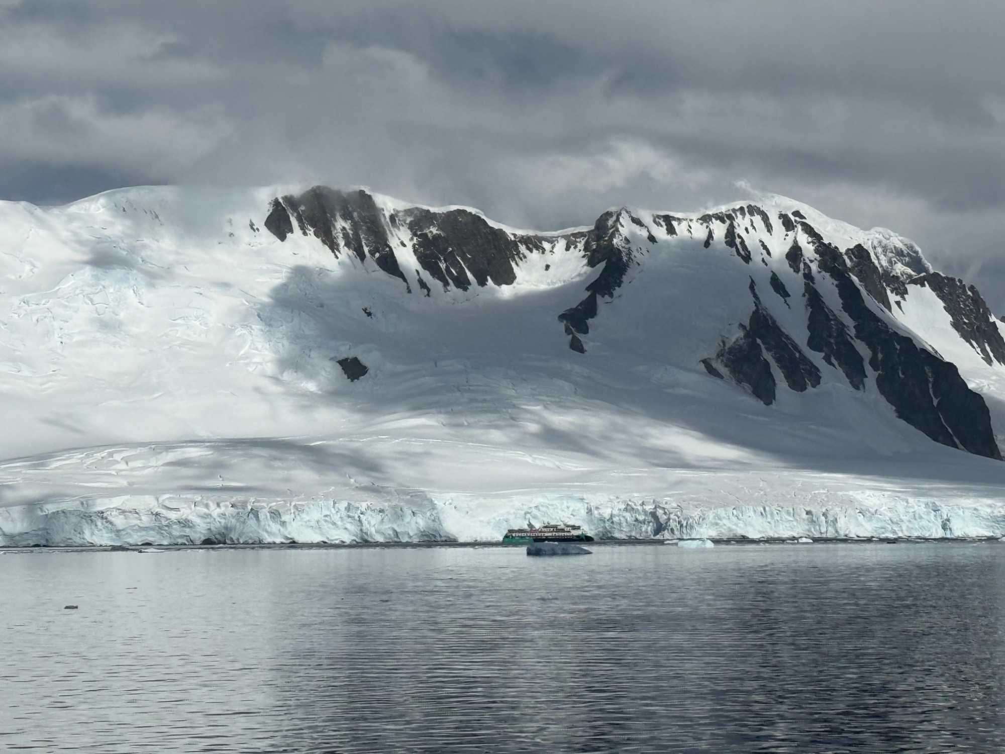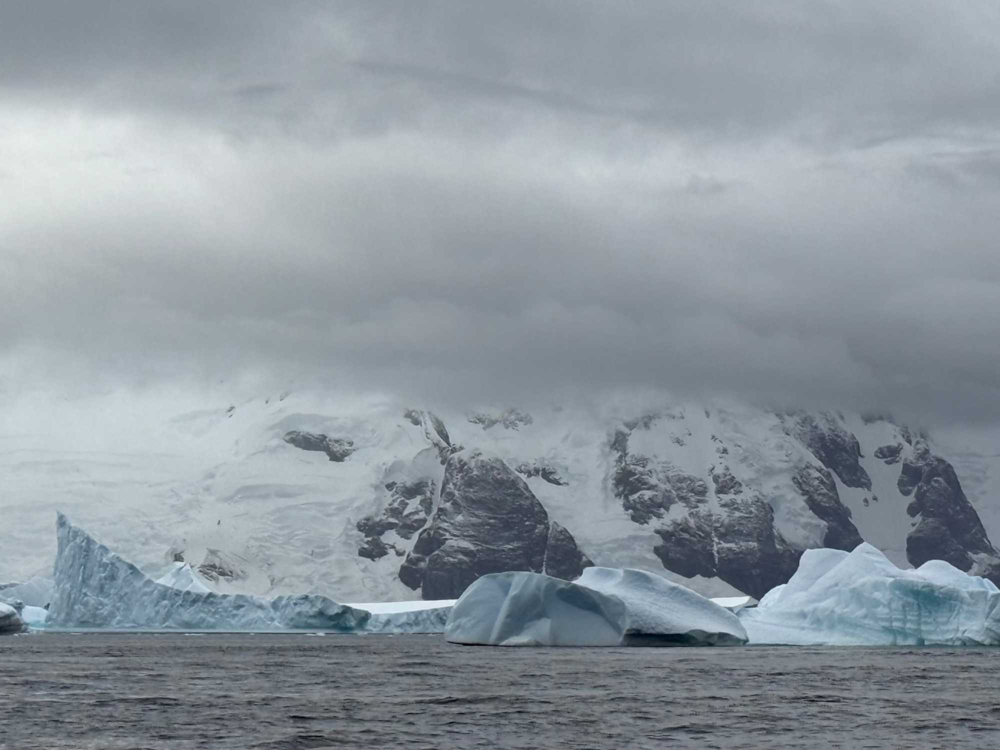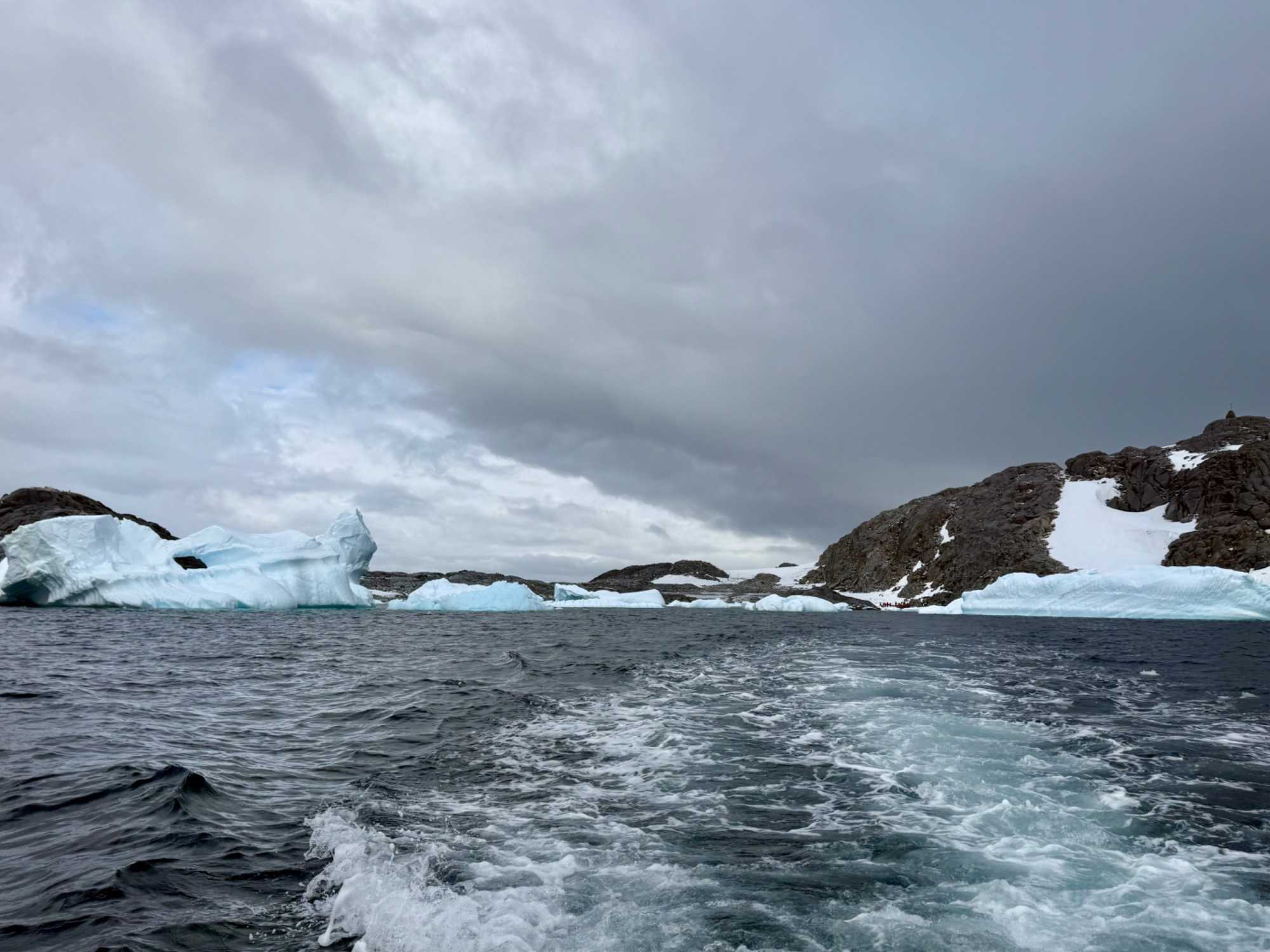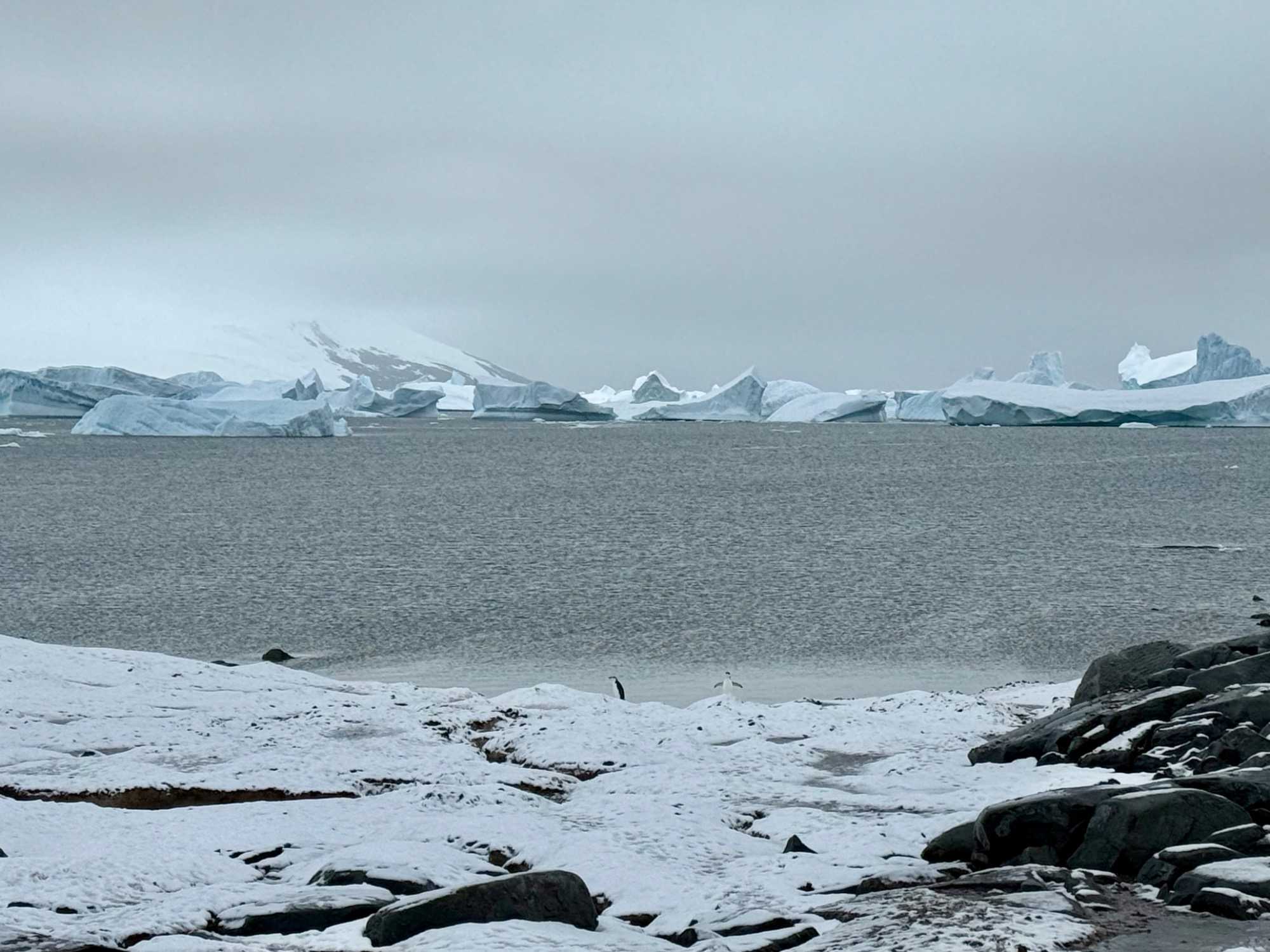 Ce matin, le temps est un peu gris, mais typiquement antarctique. Quelques flocons tombent doucement, le ciel est voilé… et par moments, le soleil nous fait de petits clins d’œil, laissant entrevoir de belles percées lumineuses. Comme toujours, nous restons positifs — et en bons Québécois, on espère le soleil!