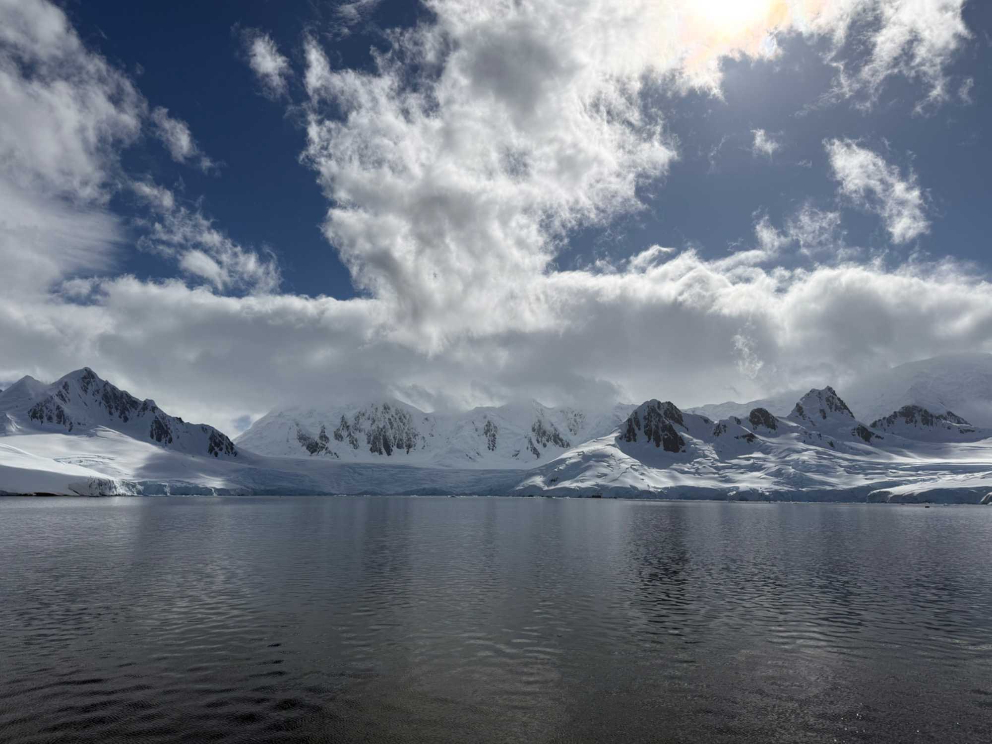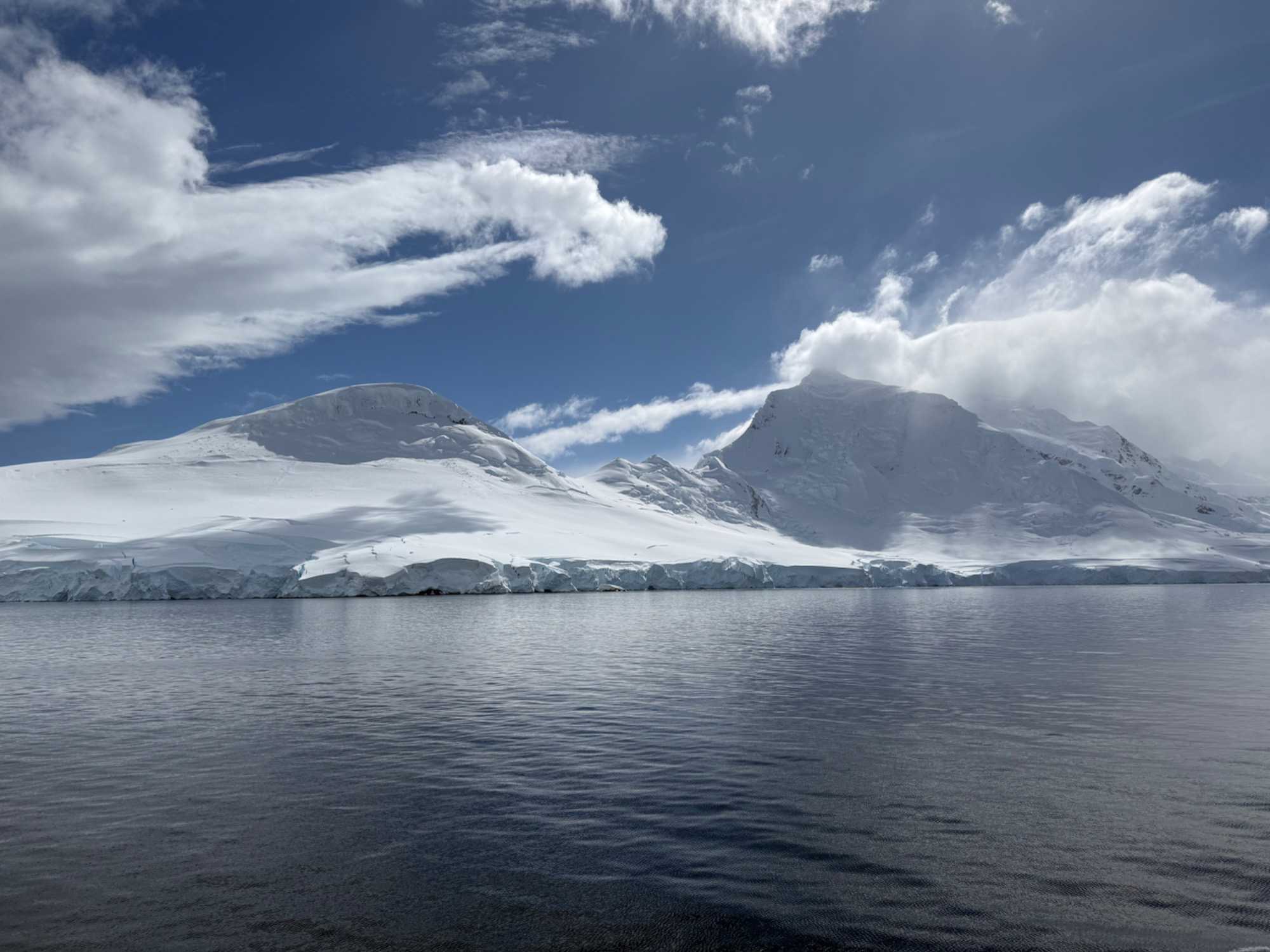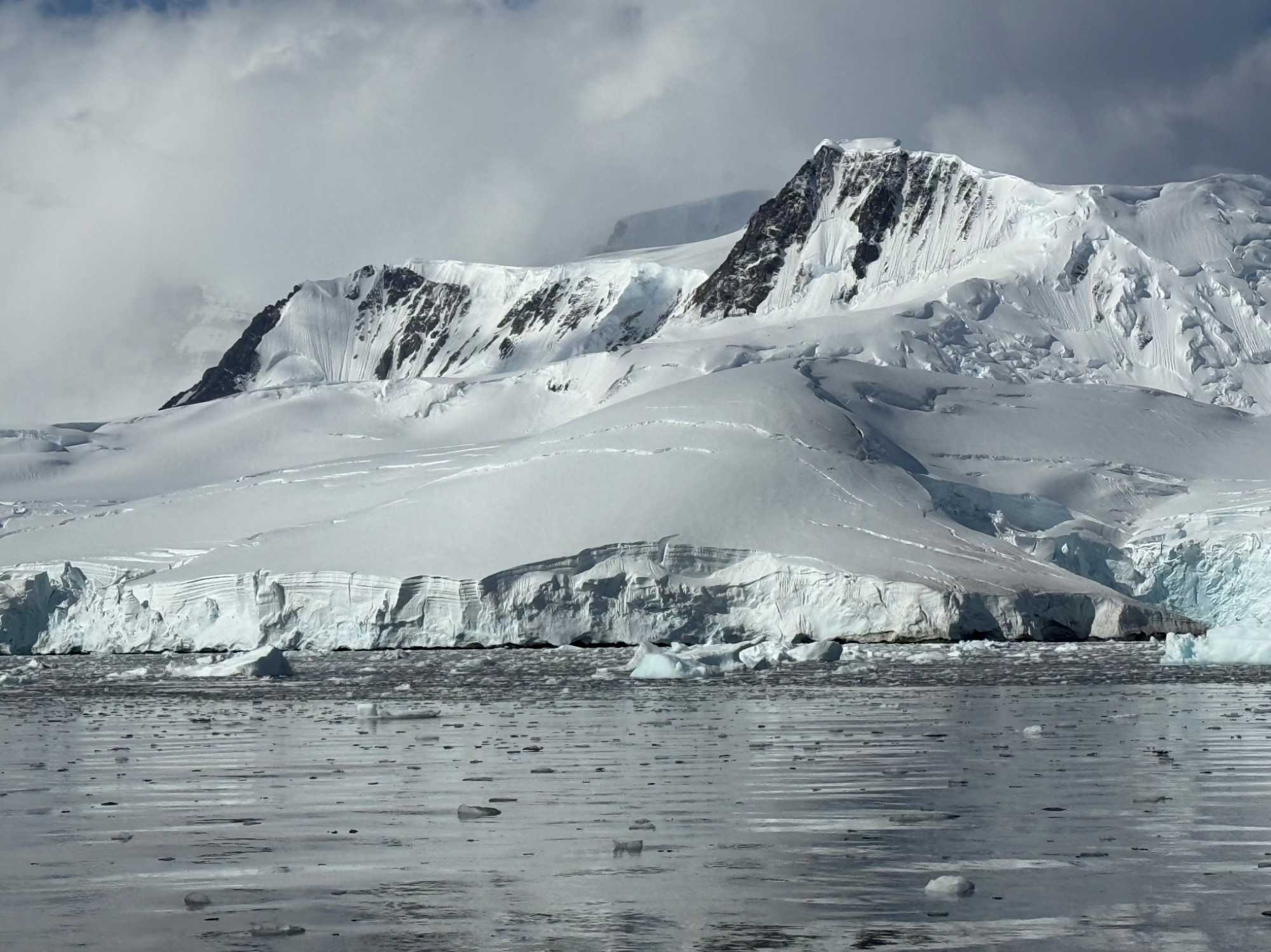 Ce matin, le temps est un peu gris, mais typiquement antarctique. Quelques flocons tombent doucement, le ciel est voilé… et par moments, le soleil nous fait de petits clins d’œil, laissant entrevoir de belles percées lumineuses. Comme toujours, nous restons positifs — et en bons Québécois, on espère le soleil!