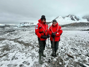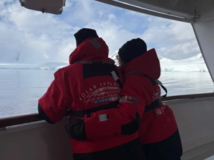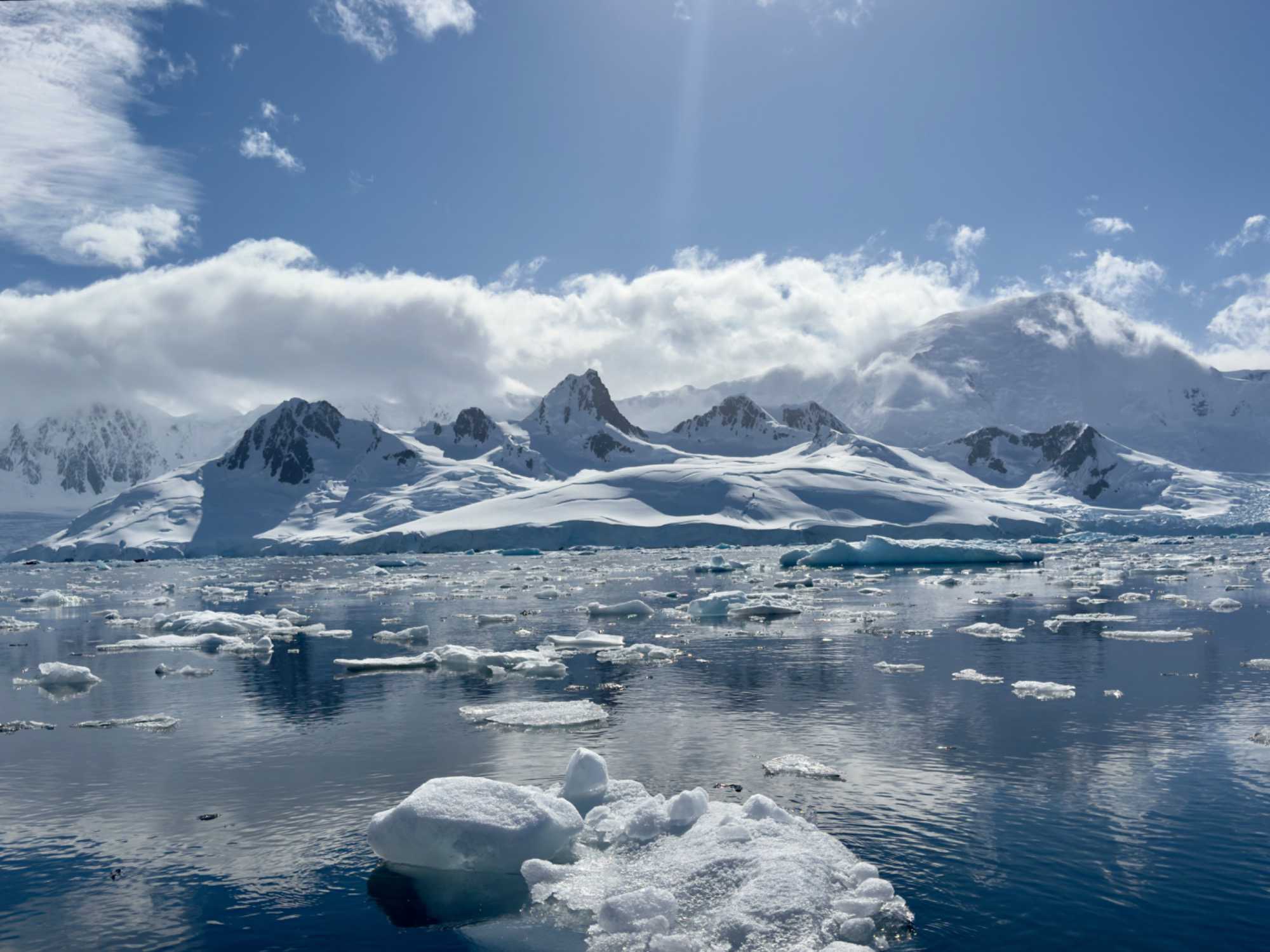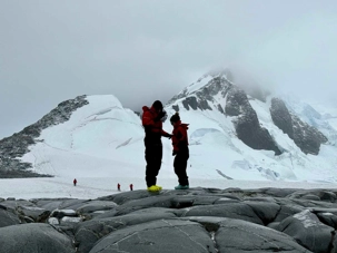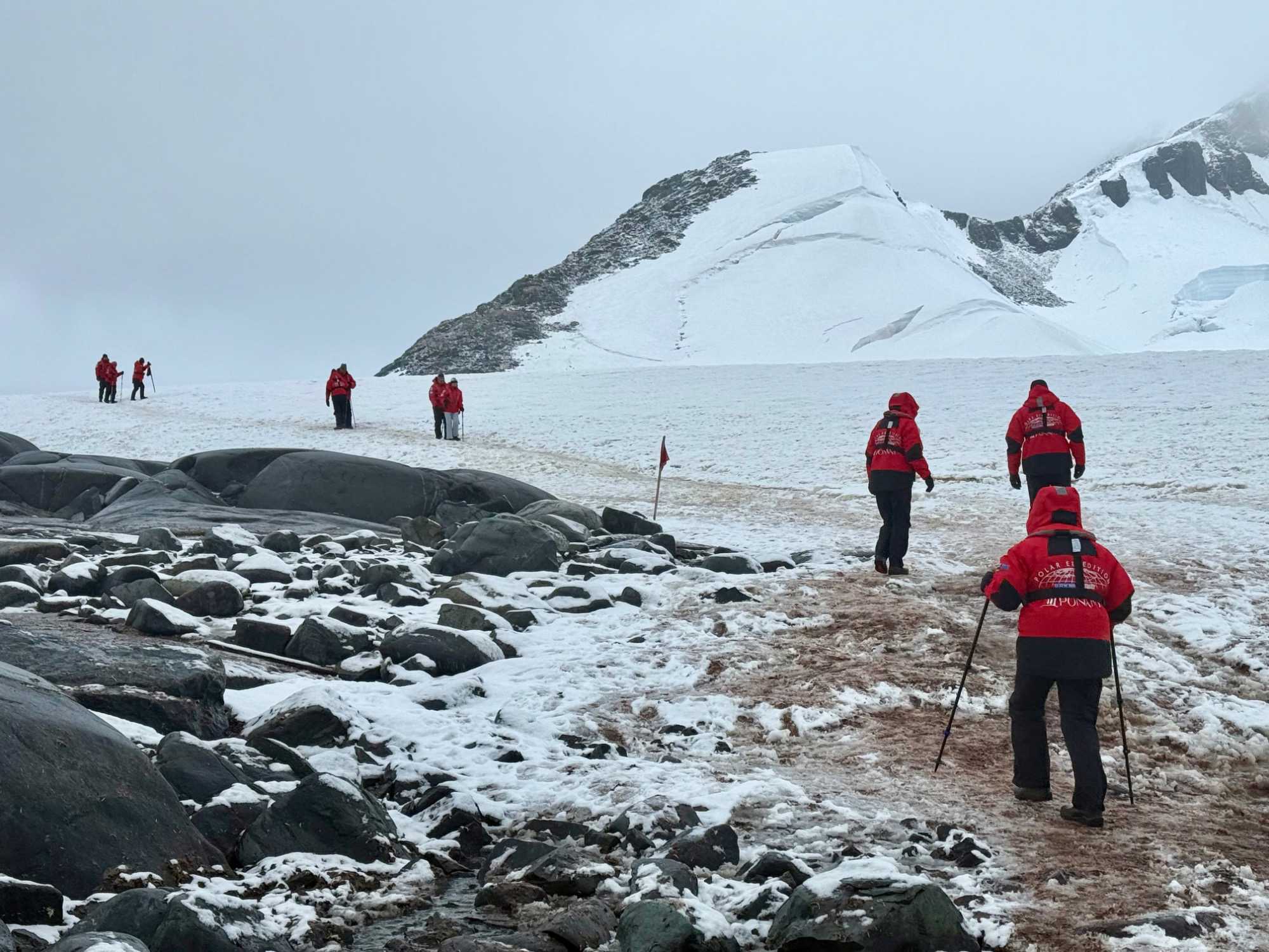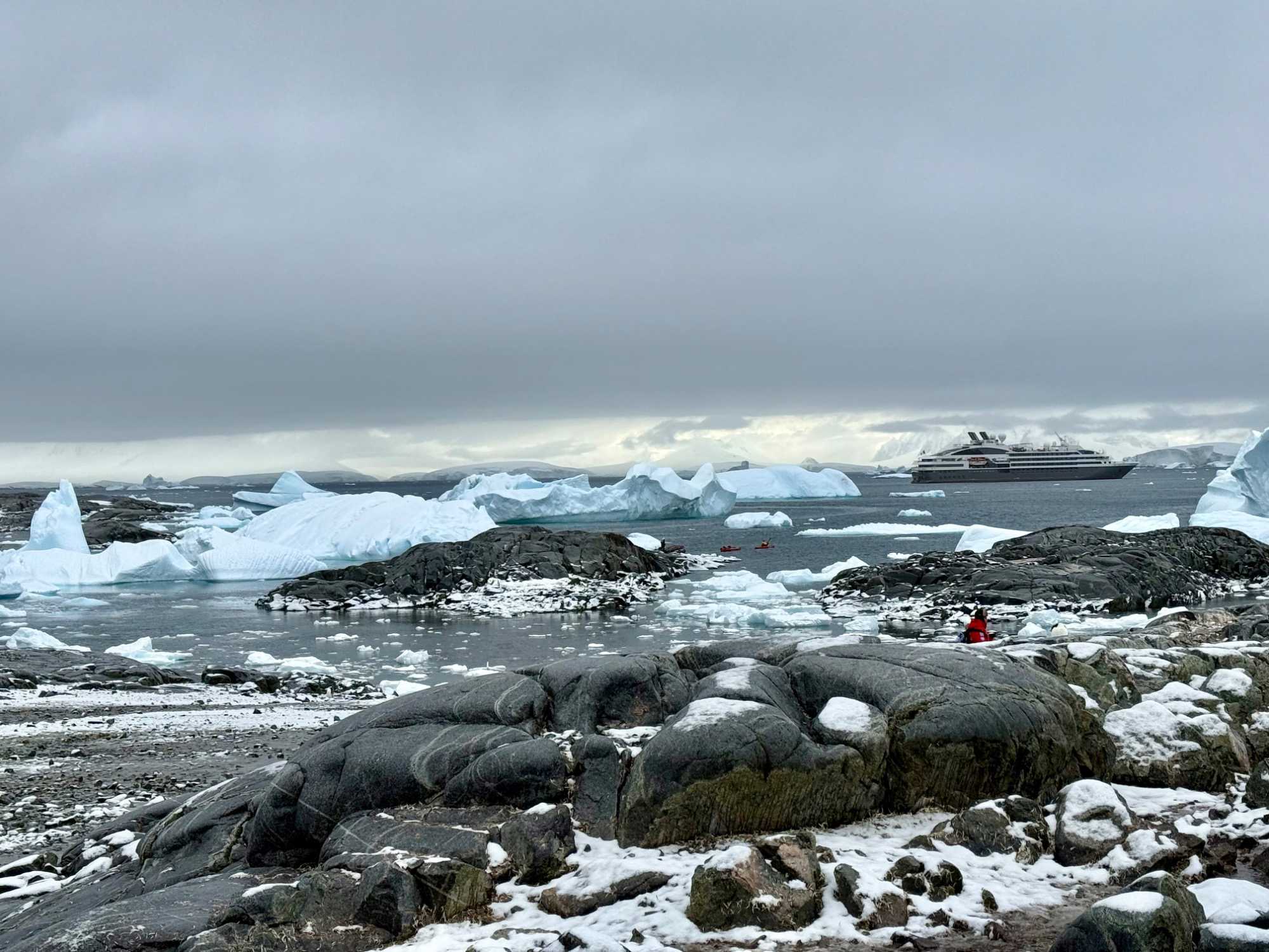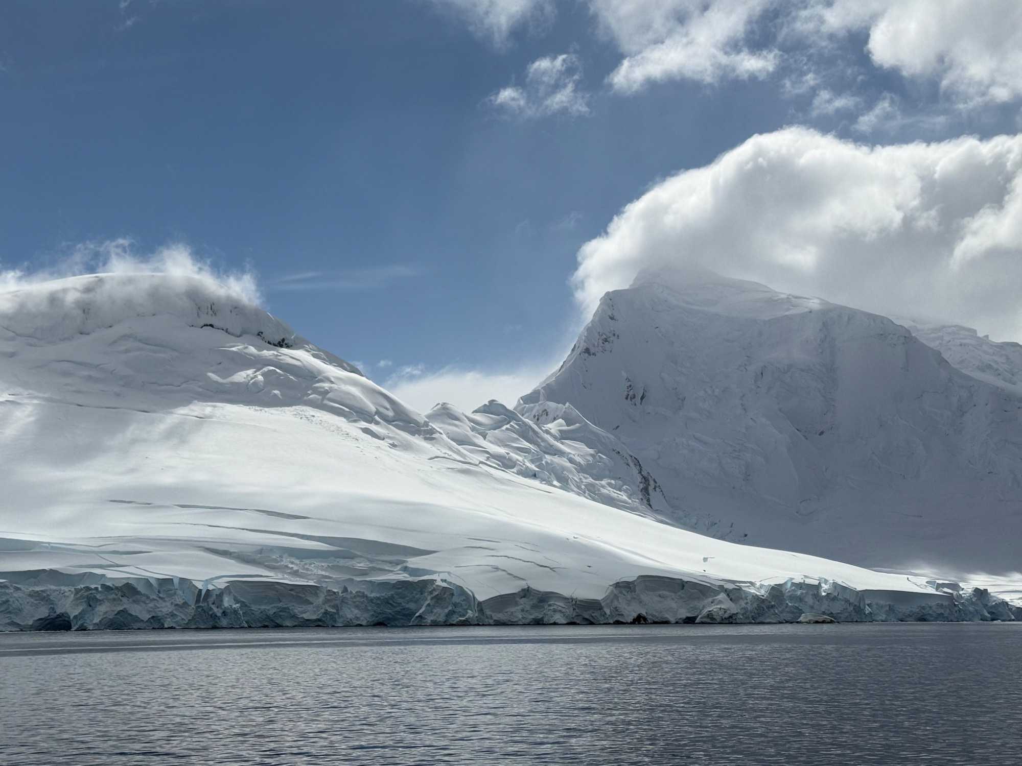 Ce matin, le temps est un peu gris, mais typiquement antarctique. Quelques flocons tombent doucement, le ciel est voilé… et par moments, le soleil nous fait de petits clins d’œil, laissant entrevoir de belles percées lumineuses. Comme toujours, nous restons positifs — et en bons Québécois, on espère le soleil!