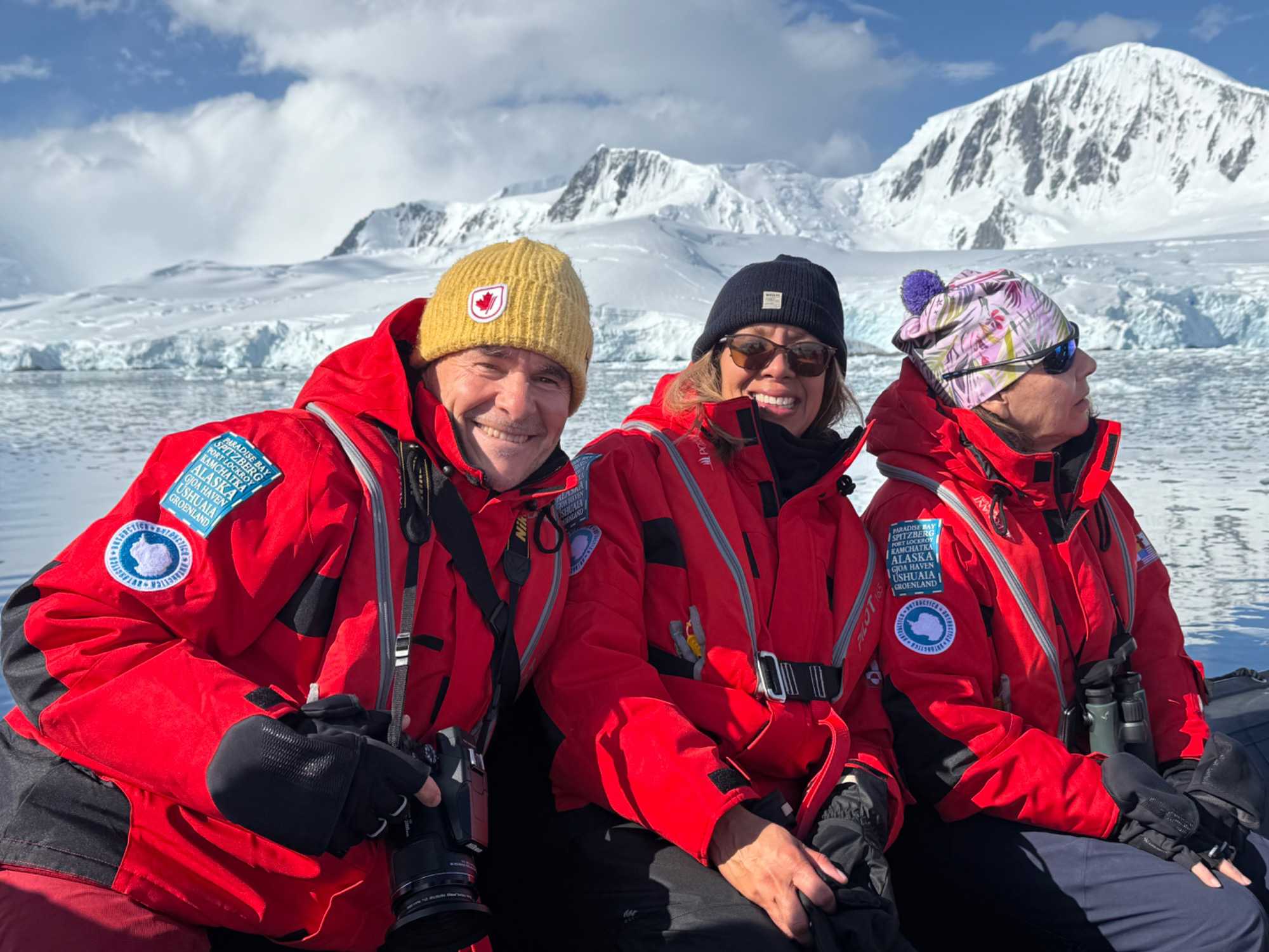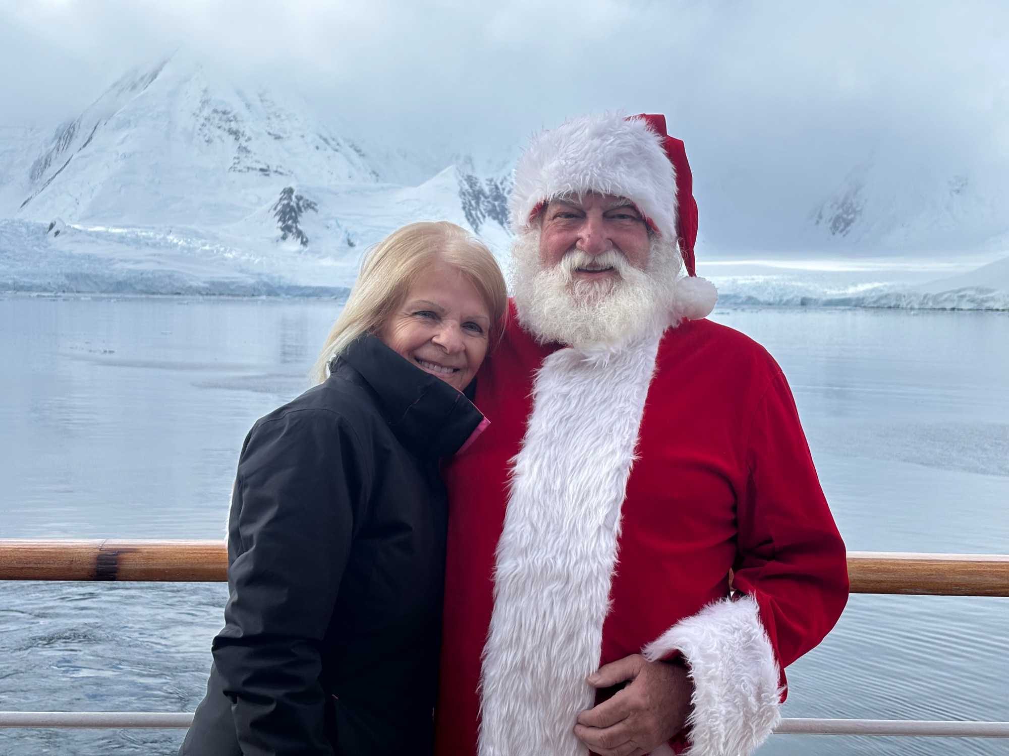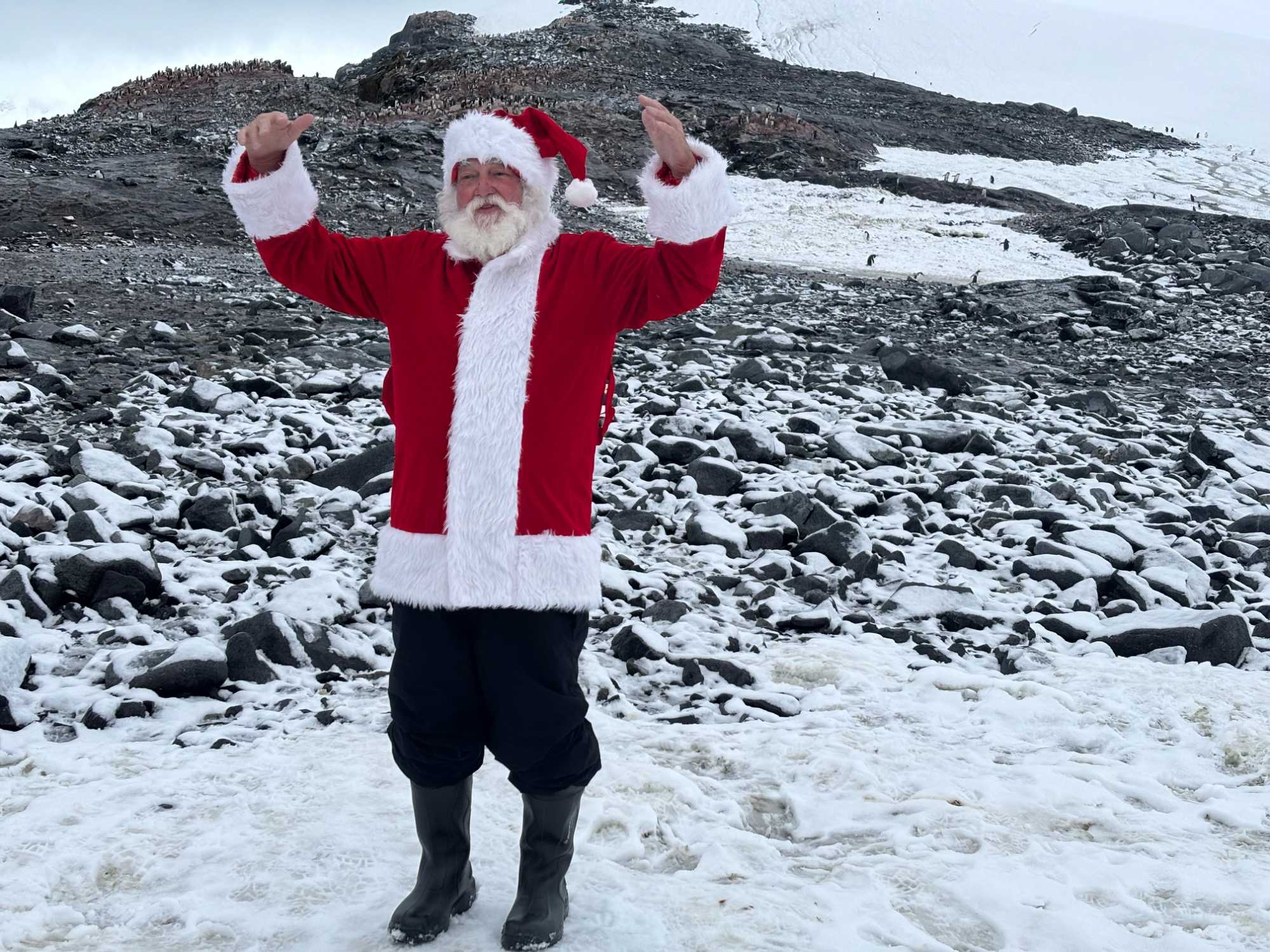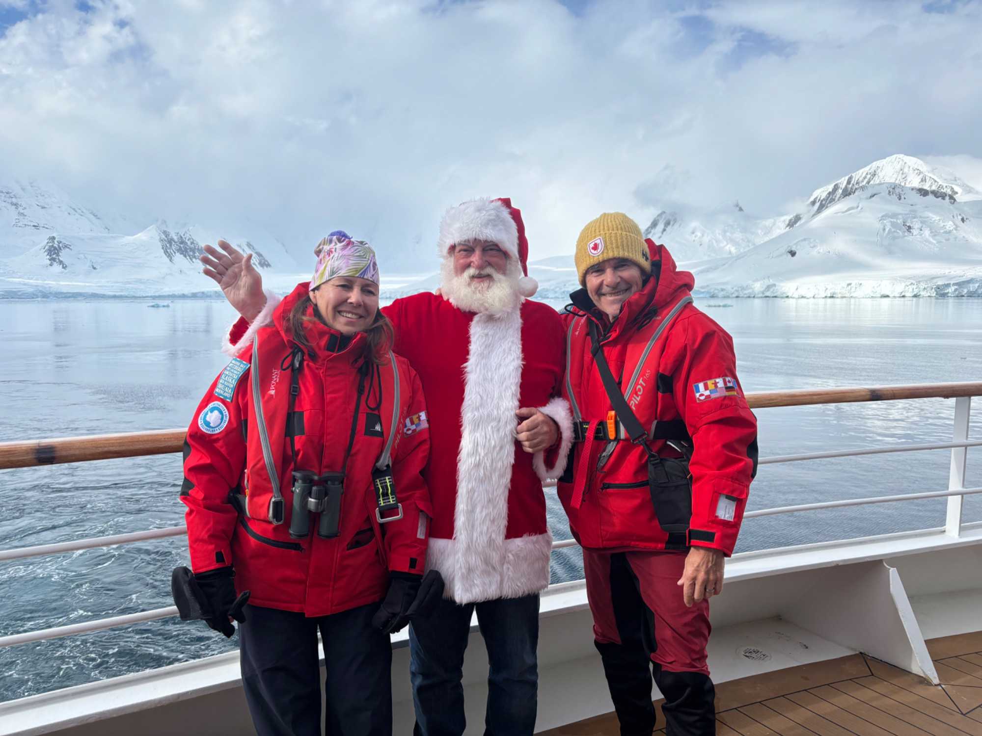 (Et comme si cette journée n’était pas déjà assez magique, nous avons même eu la chance, durant le voyage, de prendre quelques photos avec le Père Noël! Oui, oui… le Père Noël en personne, qui s’était visiblement égaré de sa zone polaire du Nord pour venir saluer nos voyageurs en Antarctique. Il en a profité pour envoyer de grands bonjours à tous les enfants qui le suivent fidèlement au Québec. Comme quoi, même au bout du monde, la magie n’est jamais bien loin! 🎅✨)