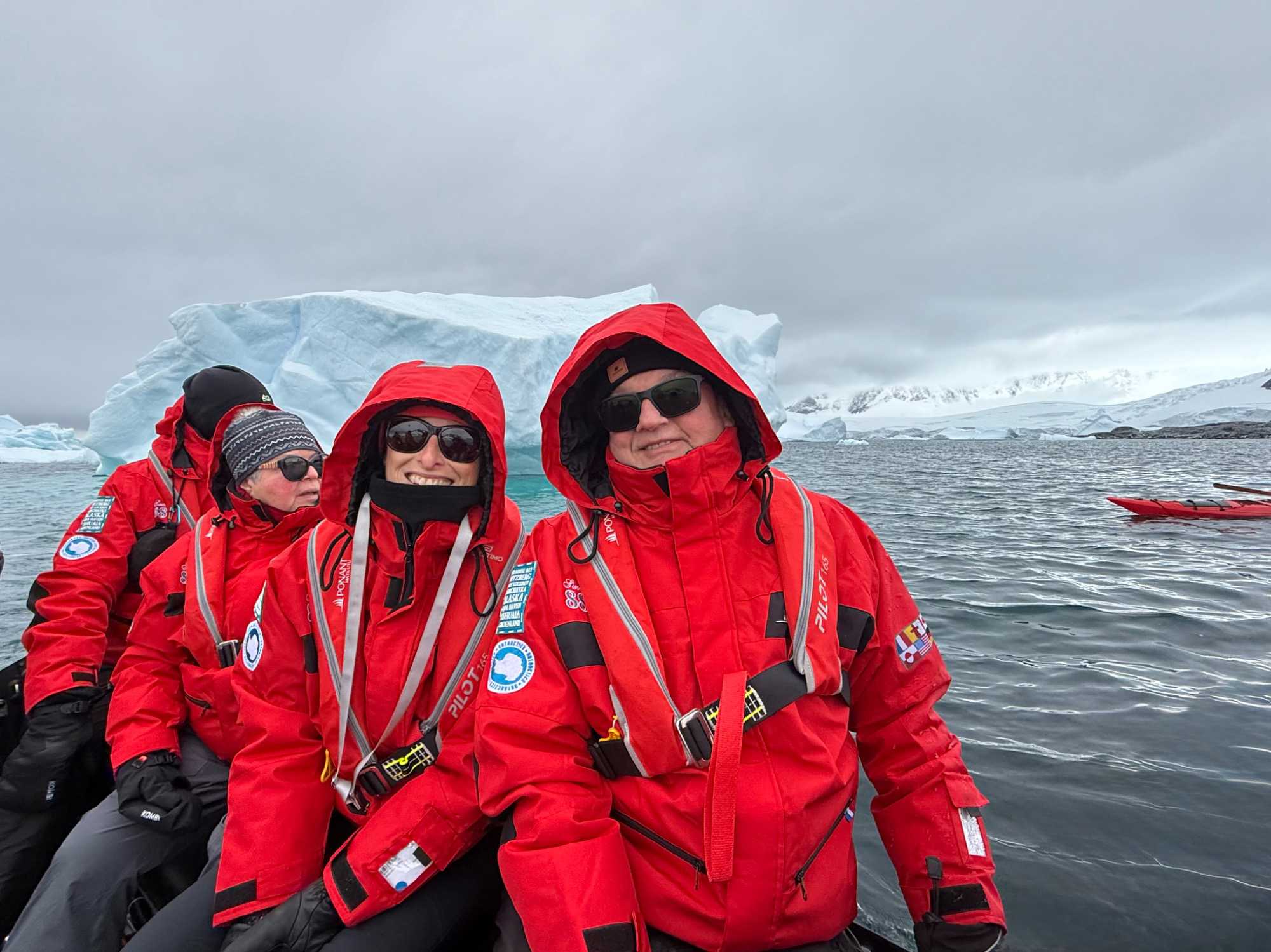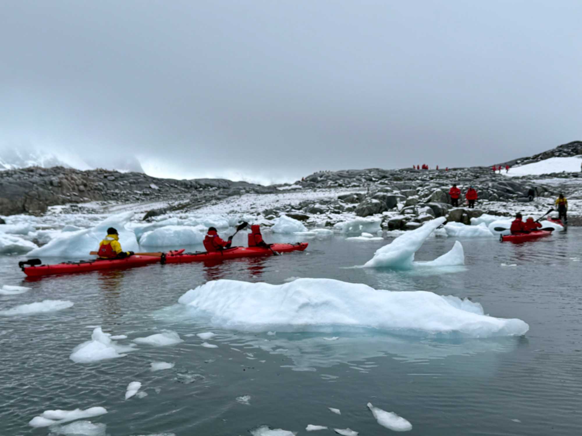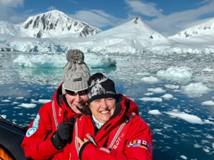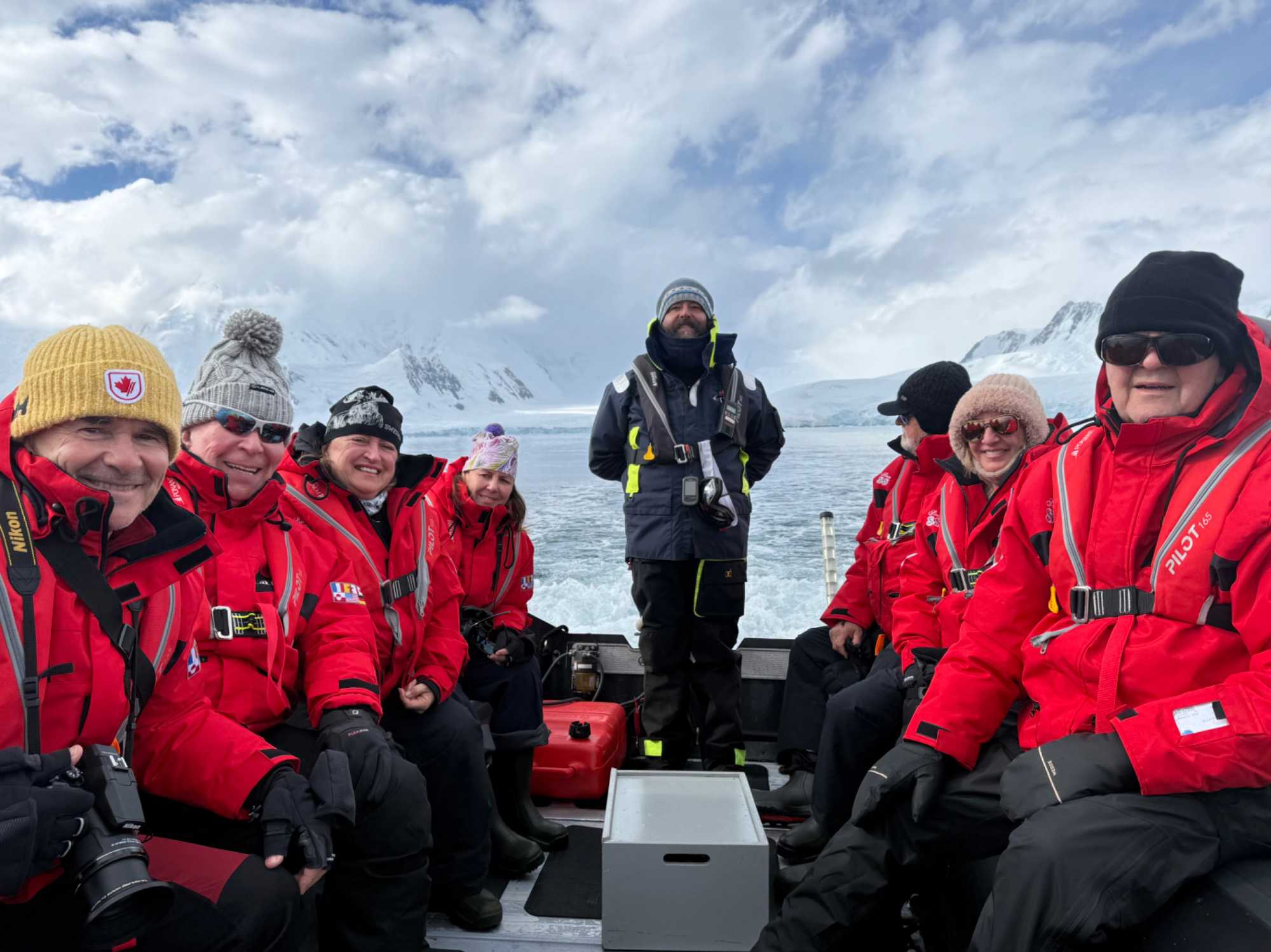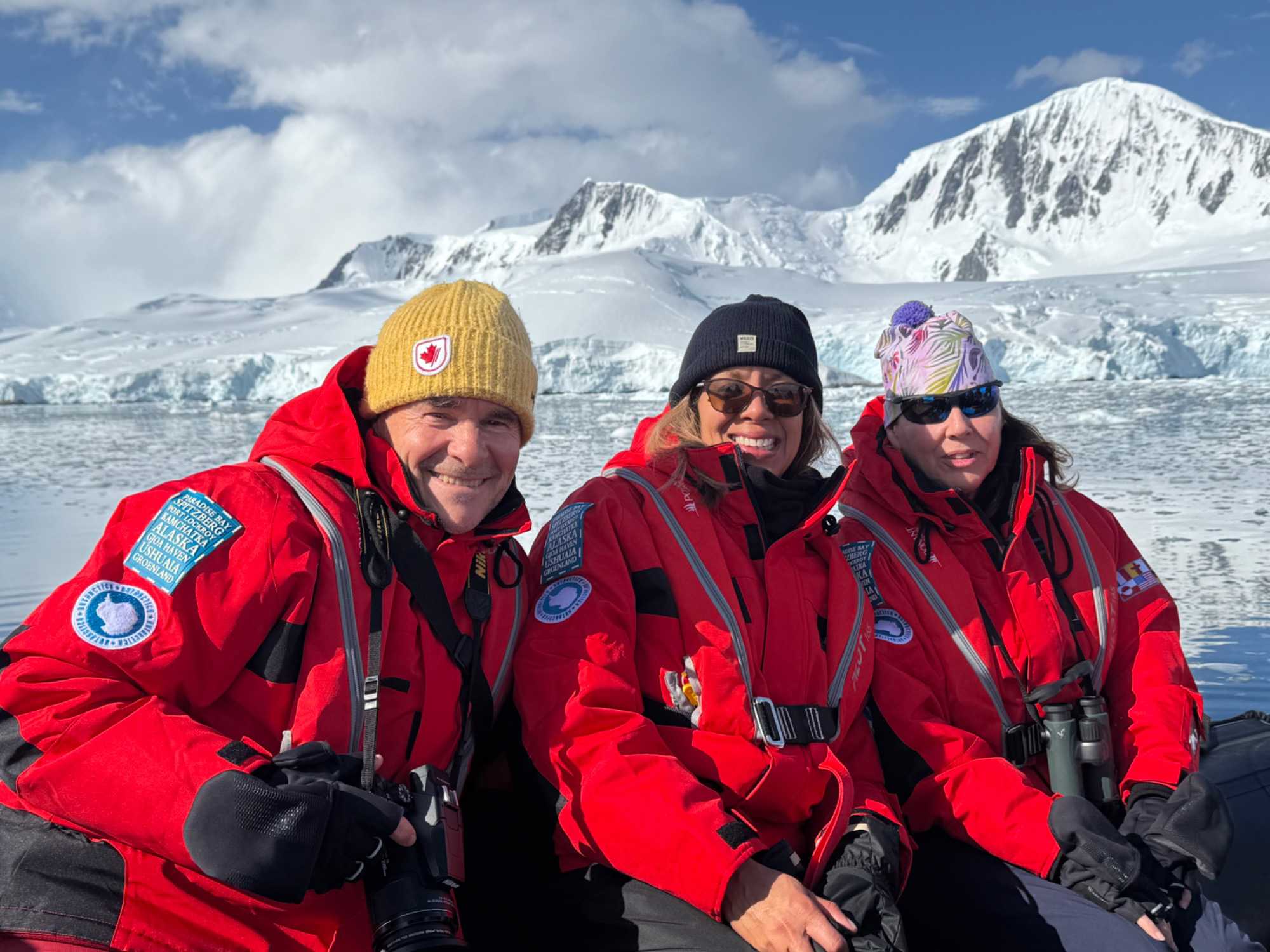 (Et comme si cette journée n’était pas déjà assez magique, nous avons même eu la chance, durant le voyage, de prendre quelques photos avec le Père Noël! Oui, oui… le Père Noël en personne, qui s’était visiblement égaré de sa zone polaire du Nord pour venir saluer nos voyageurs en Antarctique. Il en a profité pour envoyer de grands bonjours à tous les enfants qui le suivent fidèlement au Québec. Comme quoi, même au bout du monde, la magie n’est jamais bien loin! 🎅✨)